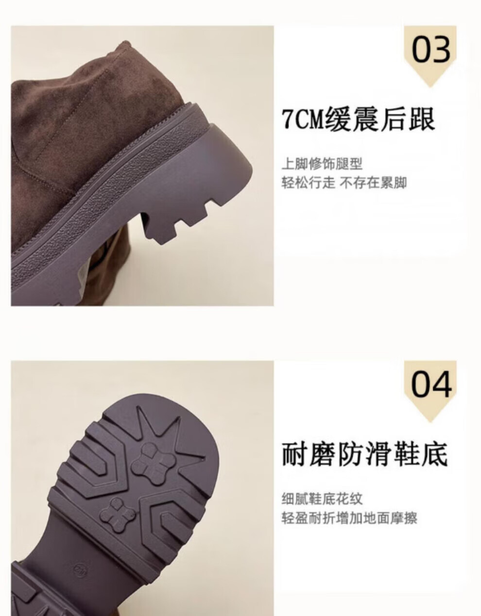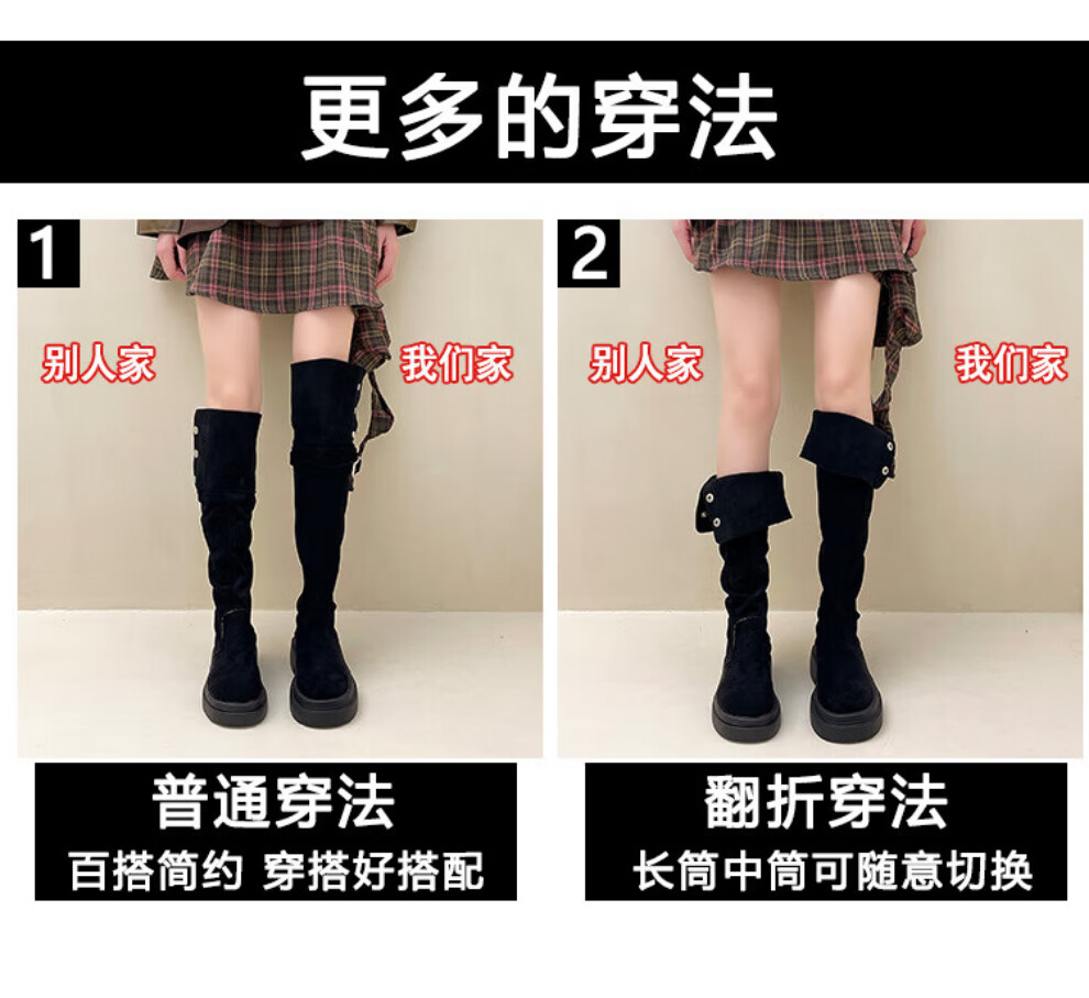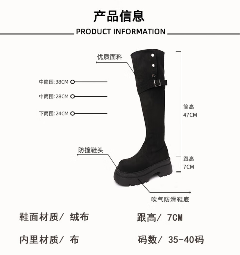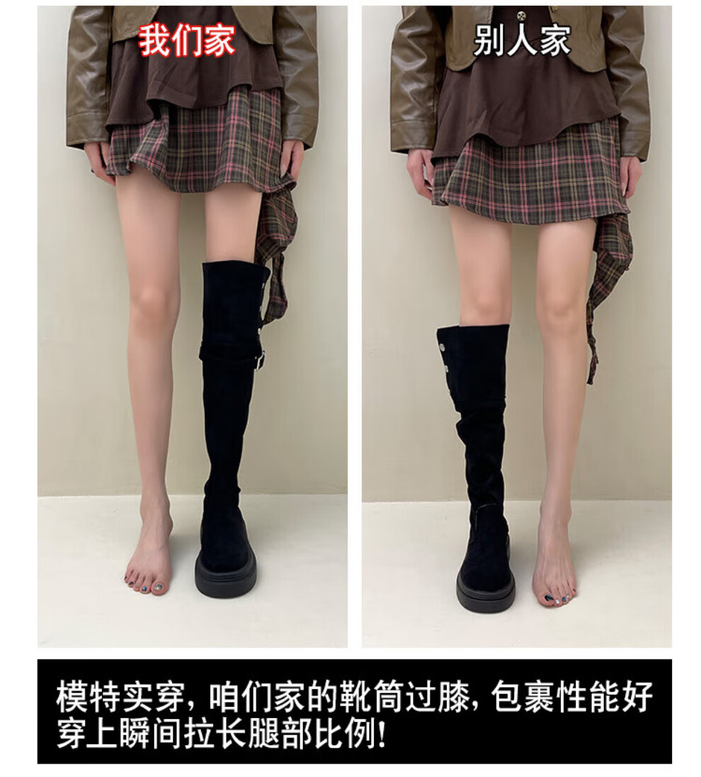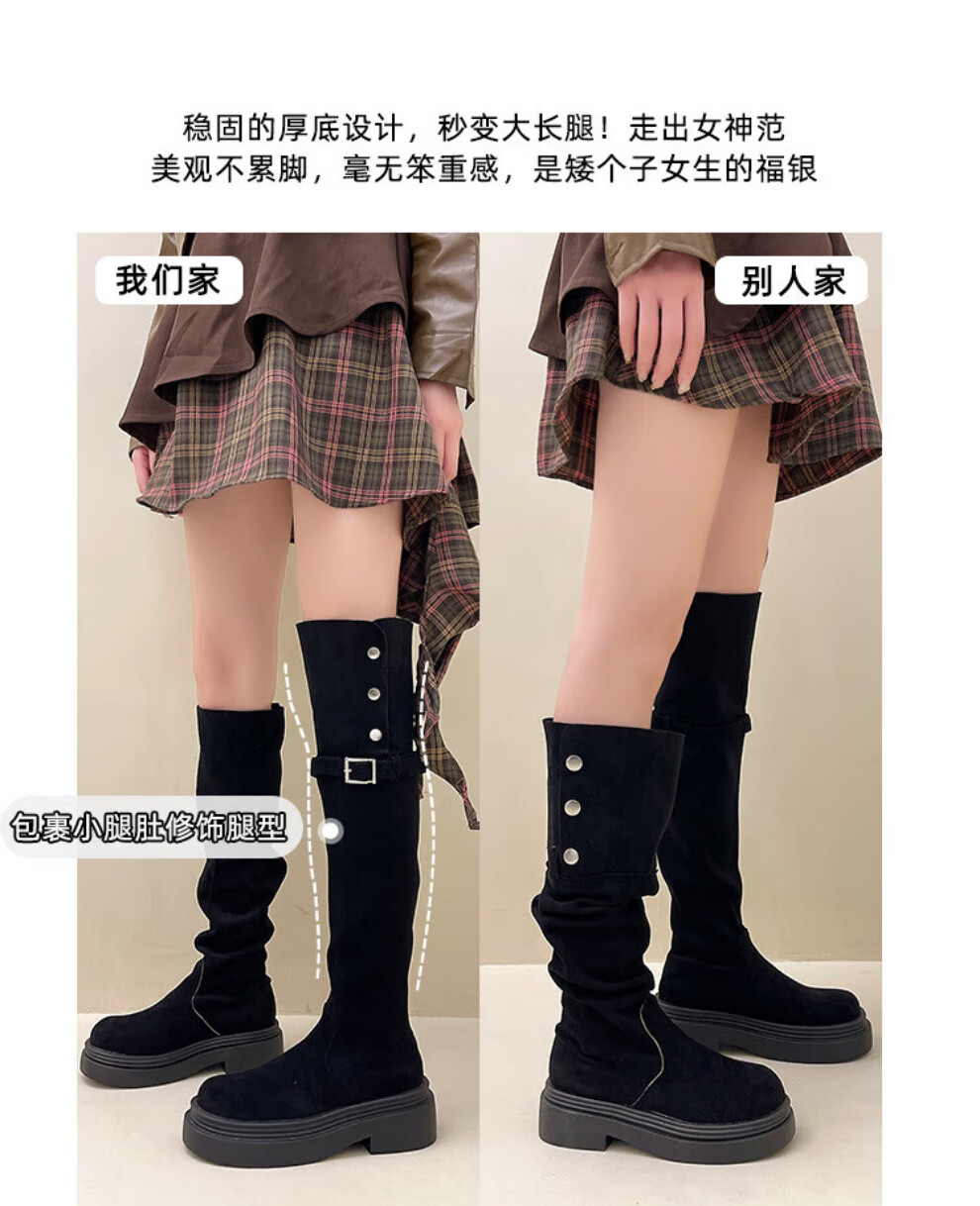 惠奴比厚底显瘦绒面堆堆弹力靴过膝靴子女2025秋冬新款两穿长筒靴时装靴 黑色【热卖升级款】 39