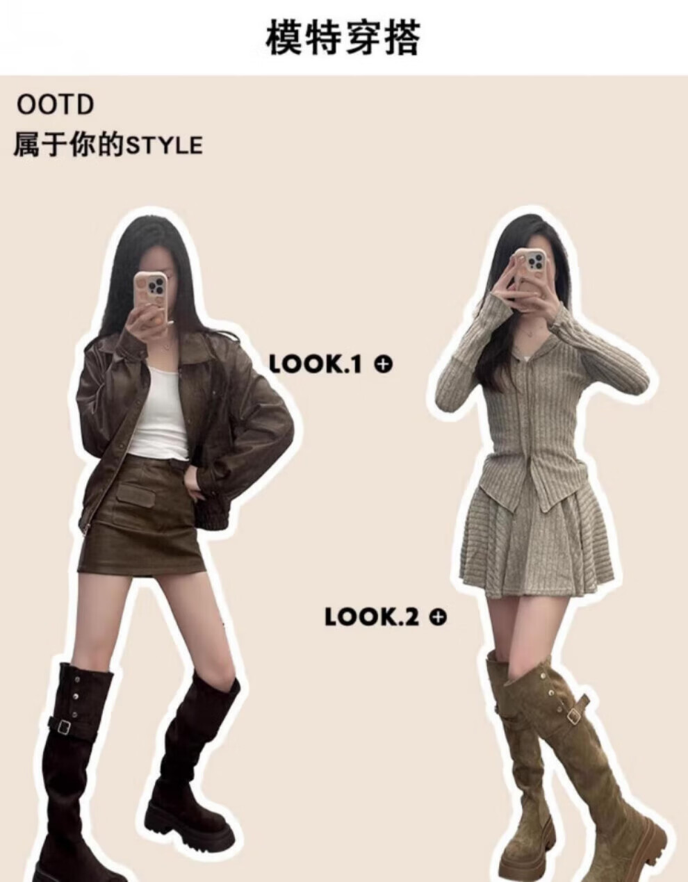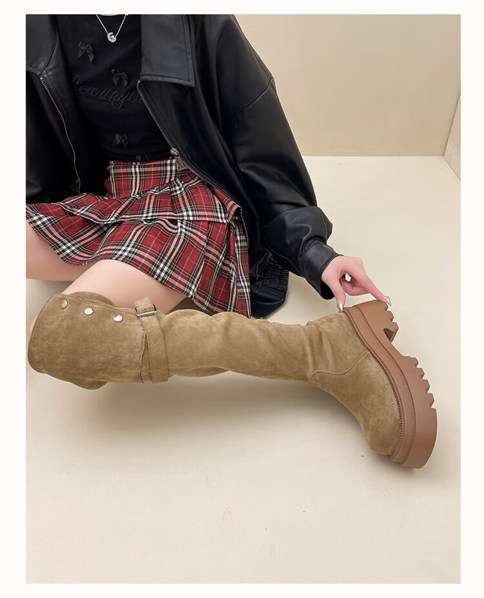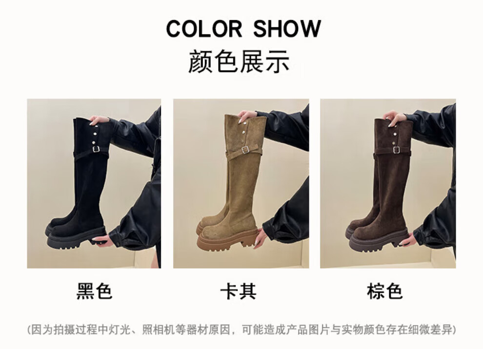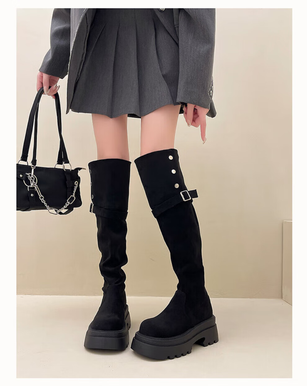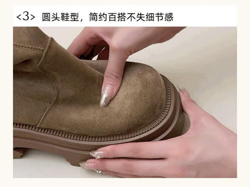 惠奴比厚底显瘦绒面堆堆弹力靴过膝靴子女2025秋冬新款两穿长筒靴时装靴 黑色【热卖升级款】 39