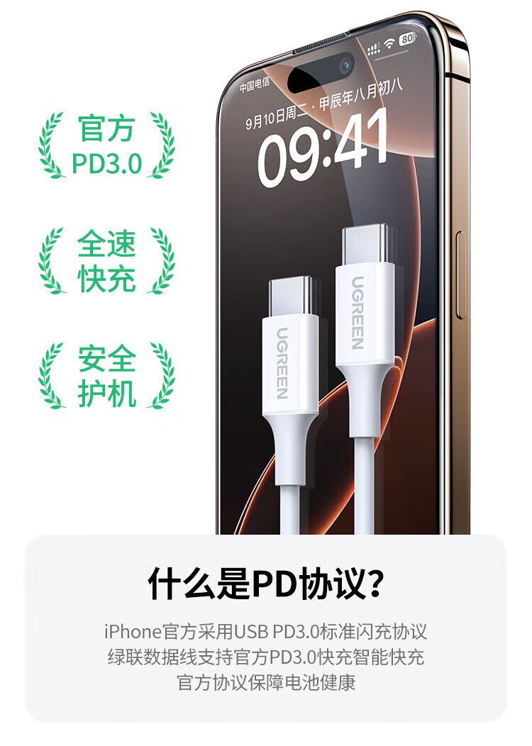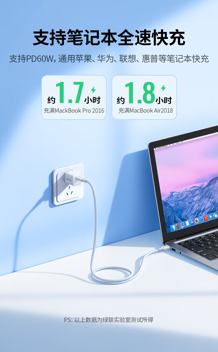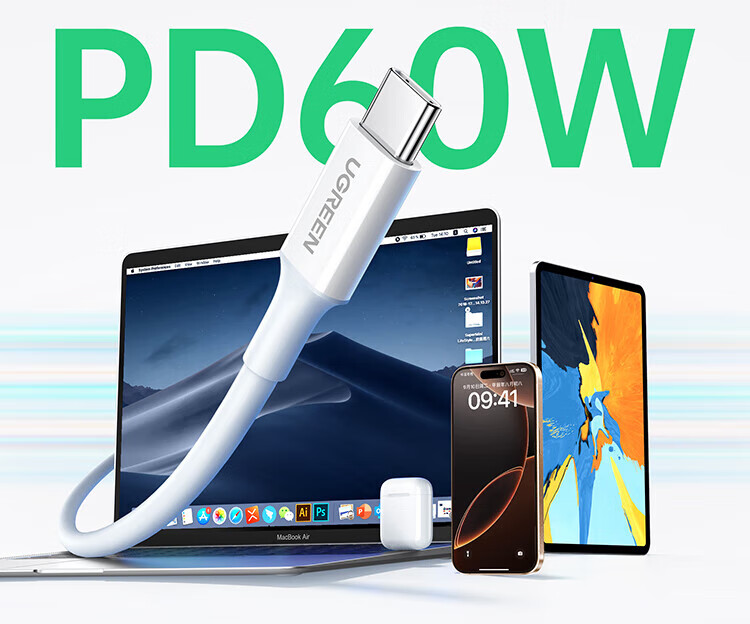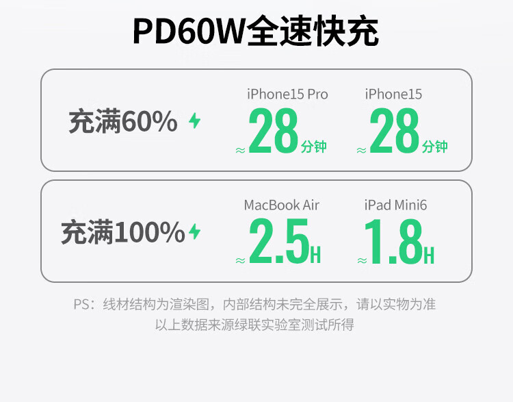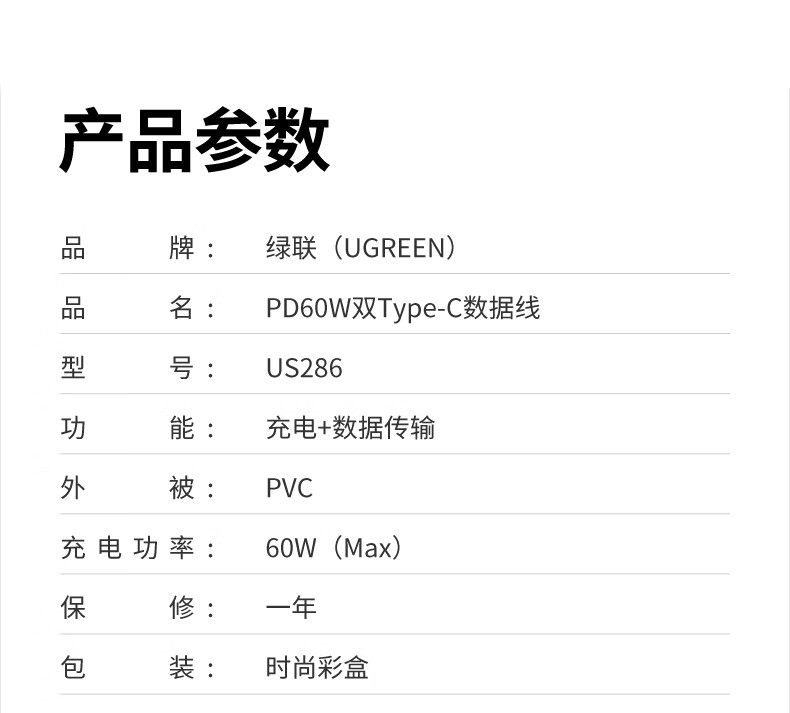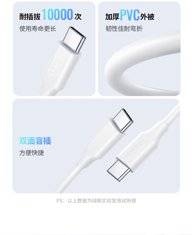 绿联双头Type-c数据线PD60W快充c to c适用苹果16/15充电线IPhone16/15ProMax/iPad/Macbook华为手机 PD60W-全包网尾更耐用