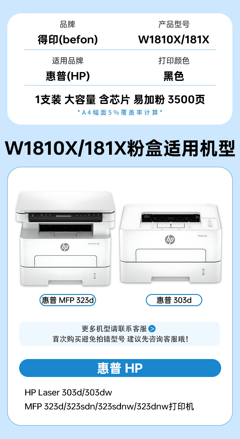得印(befon)适用惠普323sdn硒鼓 W1810X/181X大容量粉盒 HP Laser 303d/303dw/MFP 323d/323sdnw粉盒323dnw打印机粉盒