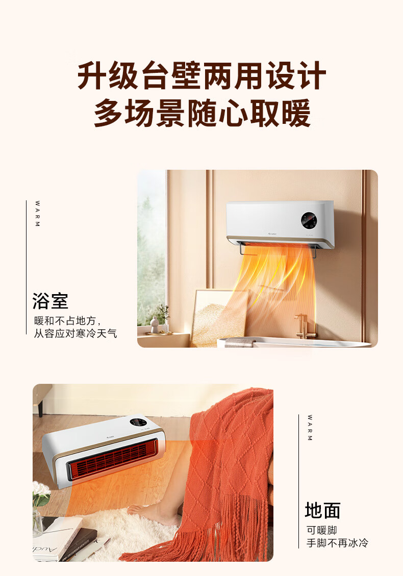 美的(Midea)【石墨烯速热】直流变频家用暖风机取暖器/小型电暖器电暖气/电热风扇/节能小太阳暖脚神器HFS20DQ