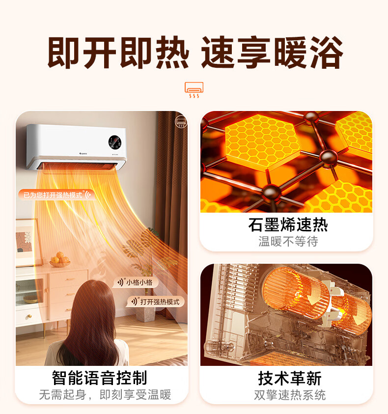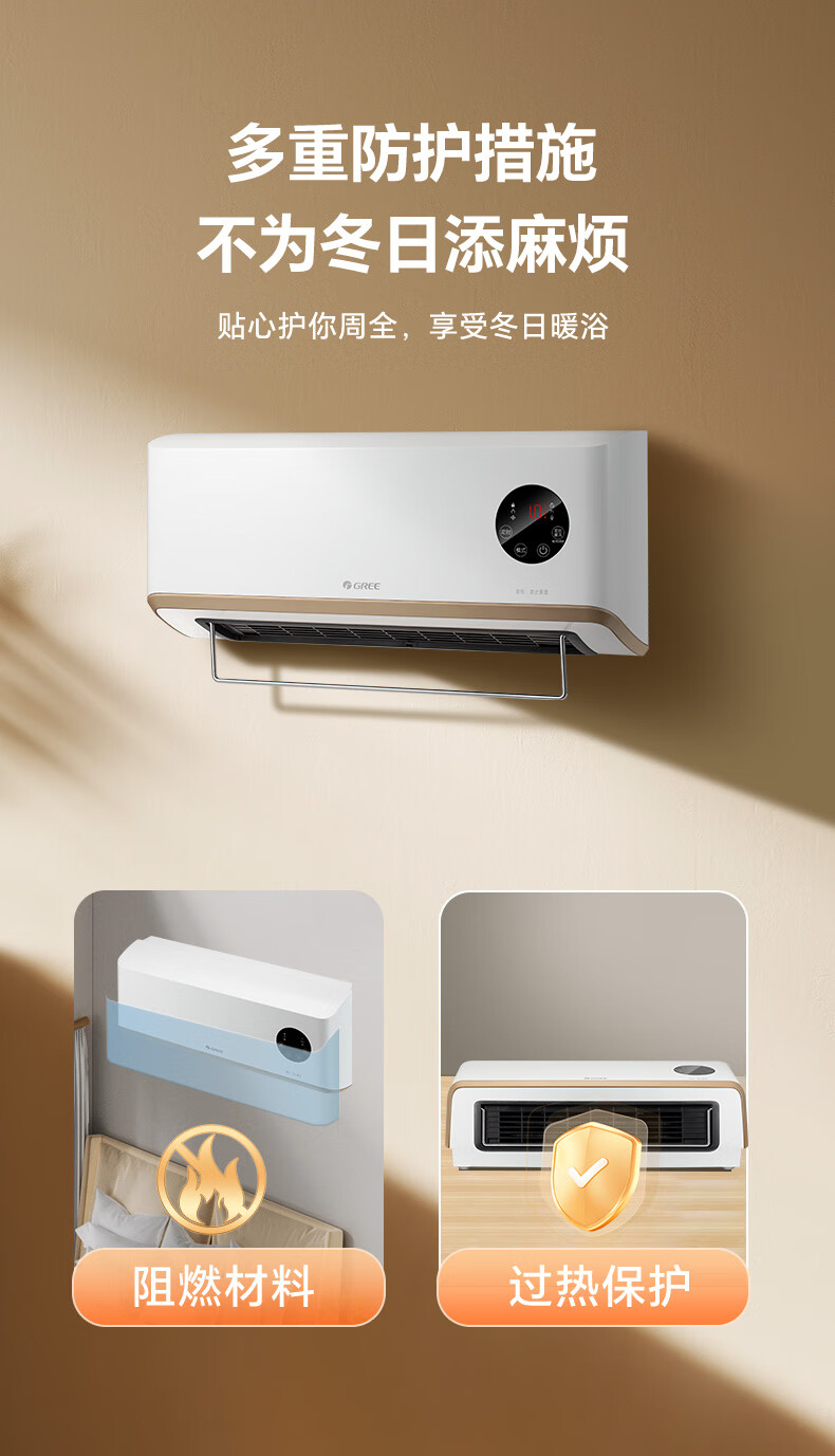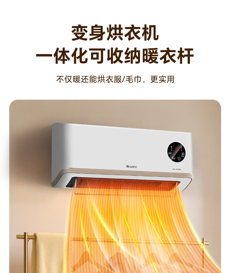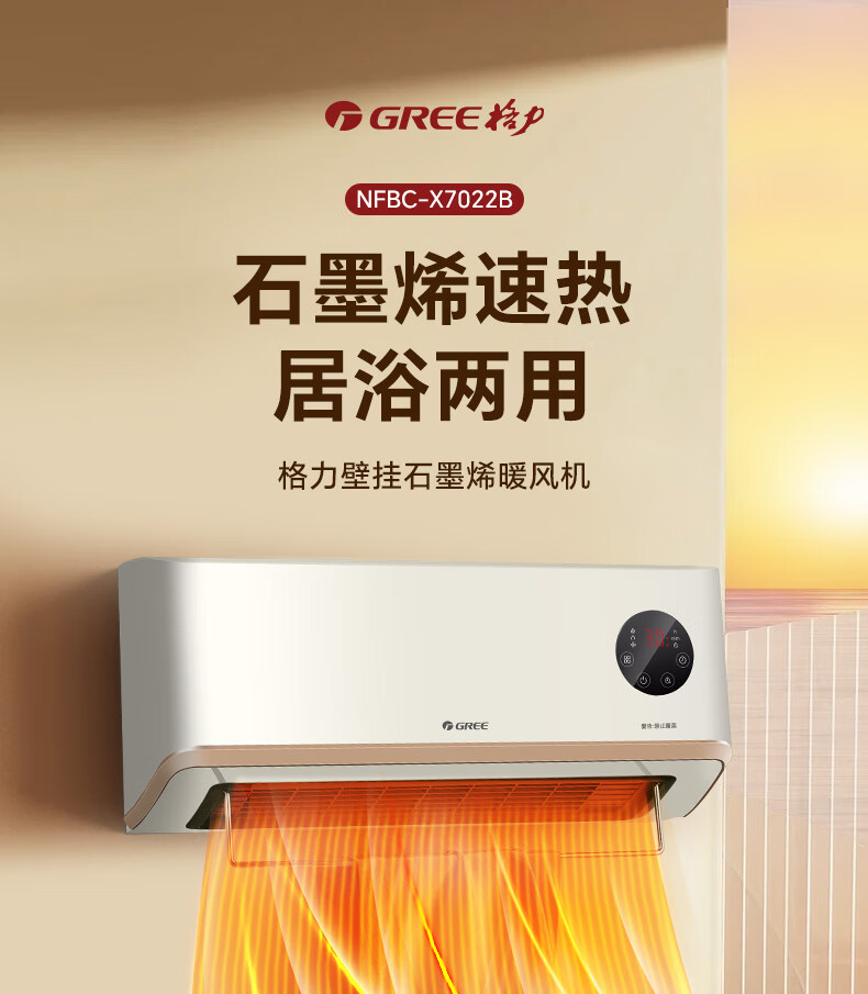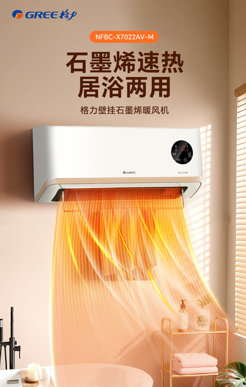 格力(GREE)石墨烯暖风机家用壁挂式速热电暖风取暖器 浴室防水热风机居浴两用浴霸电暖气可烘衣暖毛巾电暖器 NFBC-X7022B(遥控款)