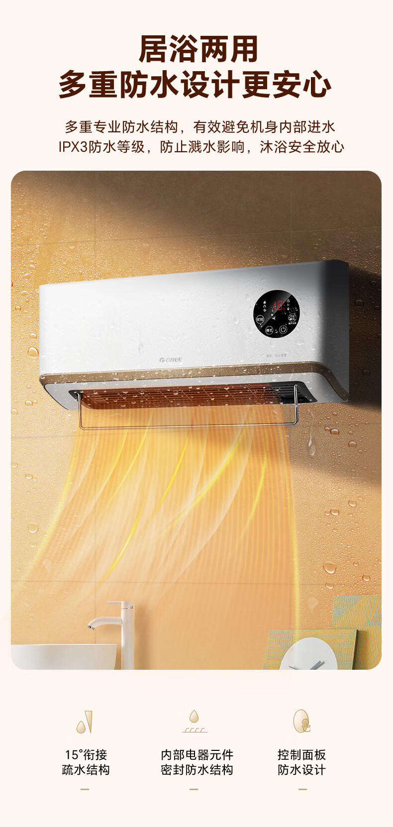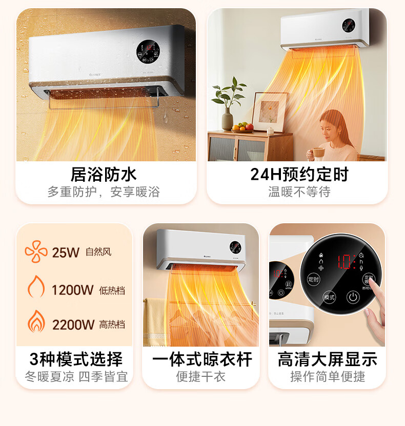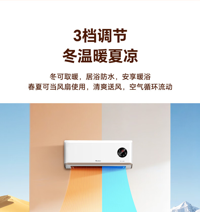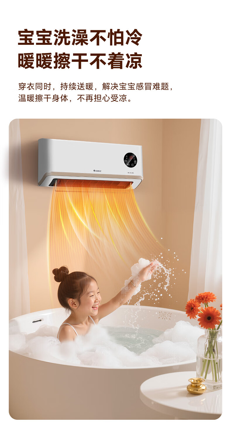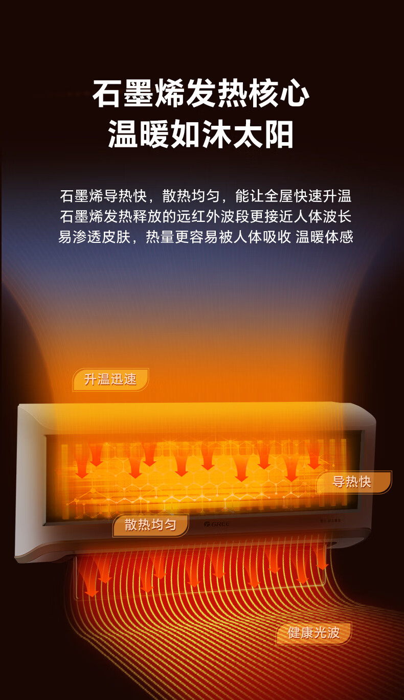 格力(GREE)石墨烯暖风机家用壁挂式速热电暖风取暖器 浴室防水热风机居浴两用浴霸电暖气可烘衣暖毛巾电暖器 NFBC-X7022B(遥控款)