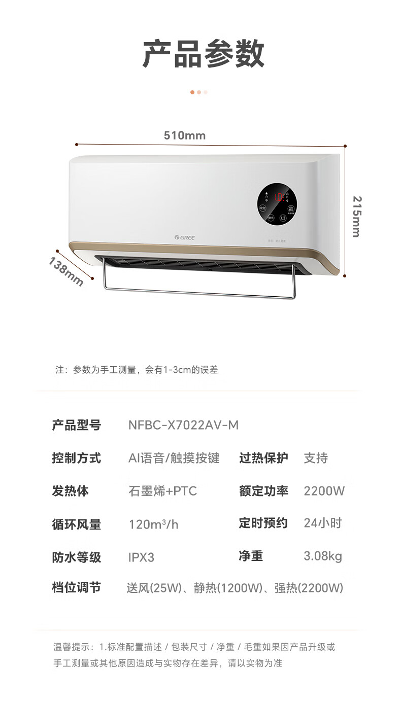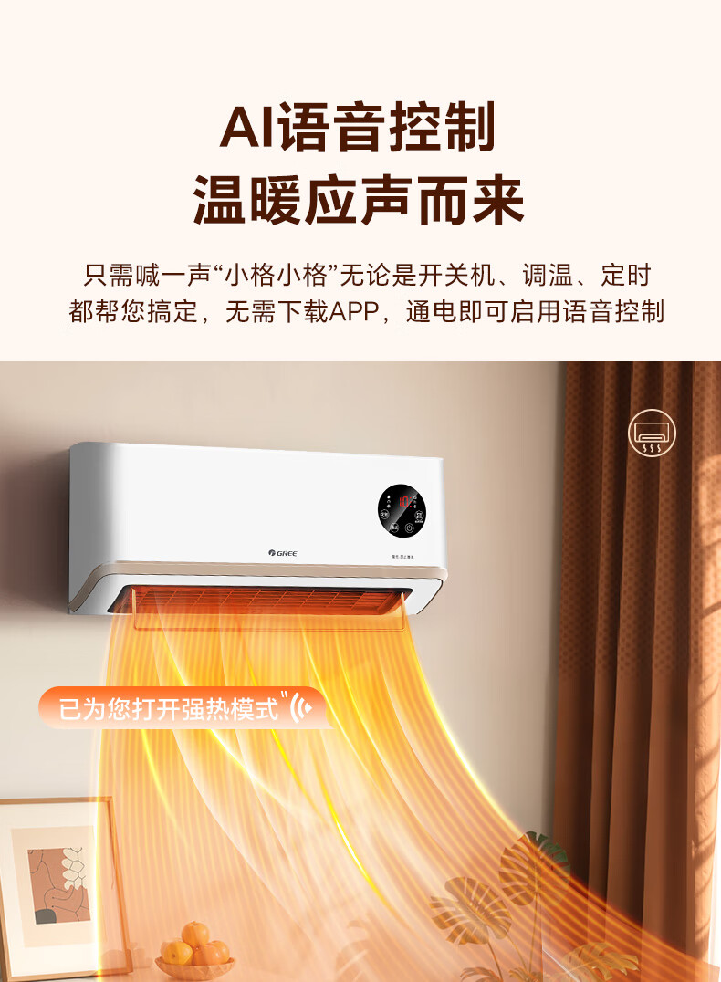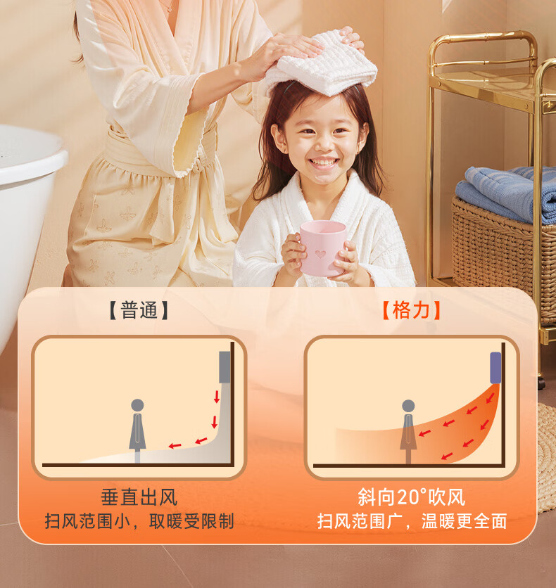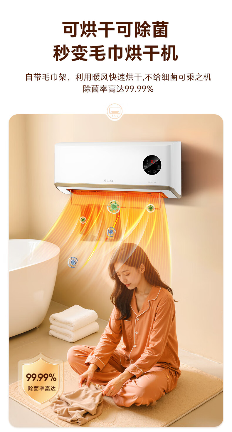 格力(GREE)石墨烯暖风机家用壁挂式速热电暖风取暖器 浴室防水热风机居浴两用浴霸电暖气可烘衣暖毛巾电暖器 NFBC-X7022B(遥控款)