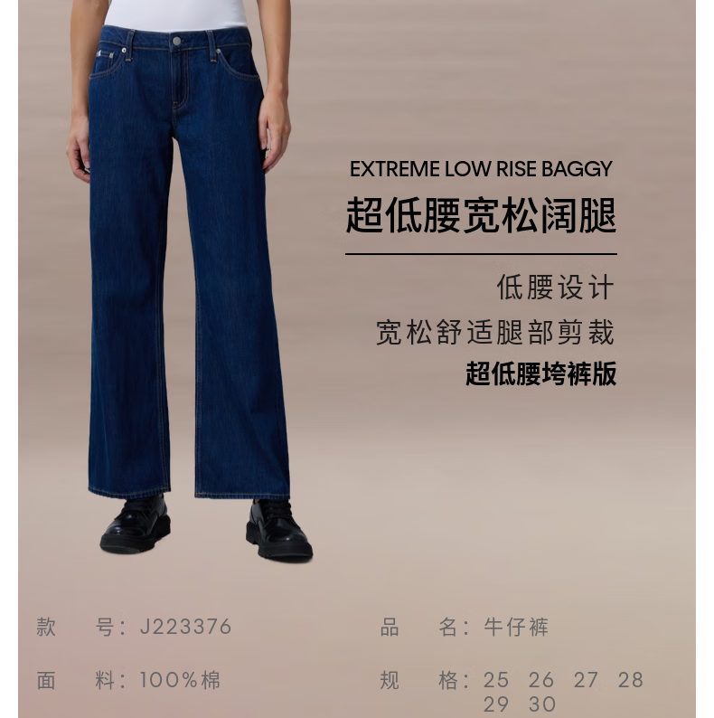 Calvin KleinJeans四季款女士纯棉美式复古ck低腰宽松阔腿慵懒松弛感牛仔裤 1BJ-牛仔蓝 28