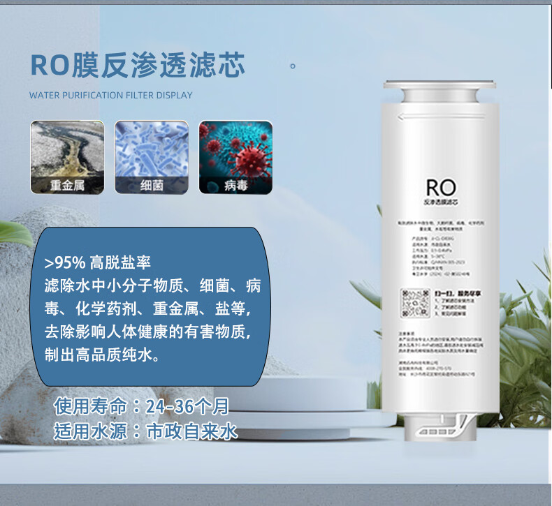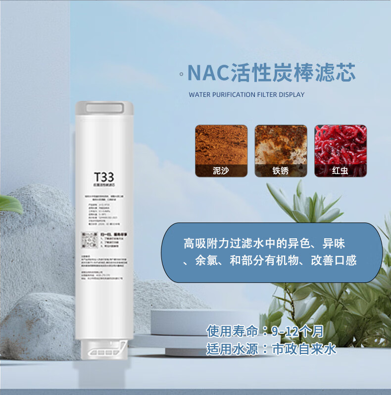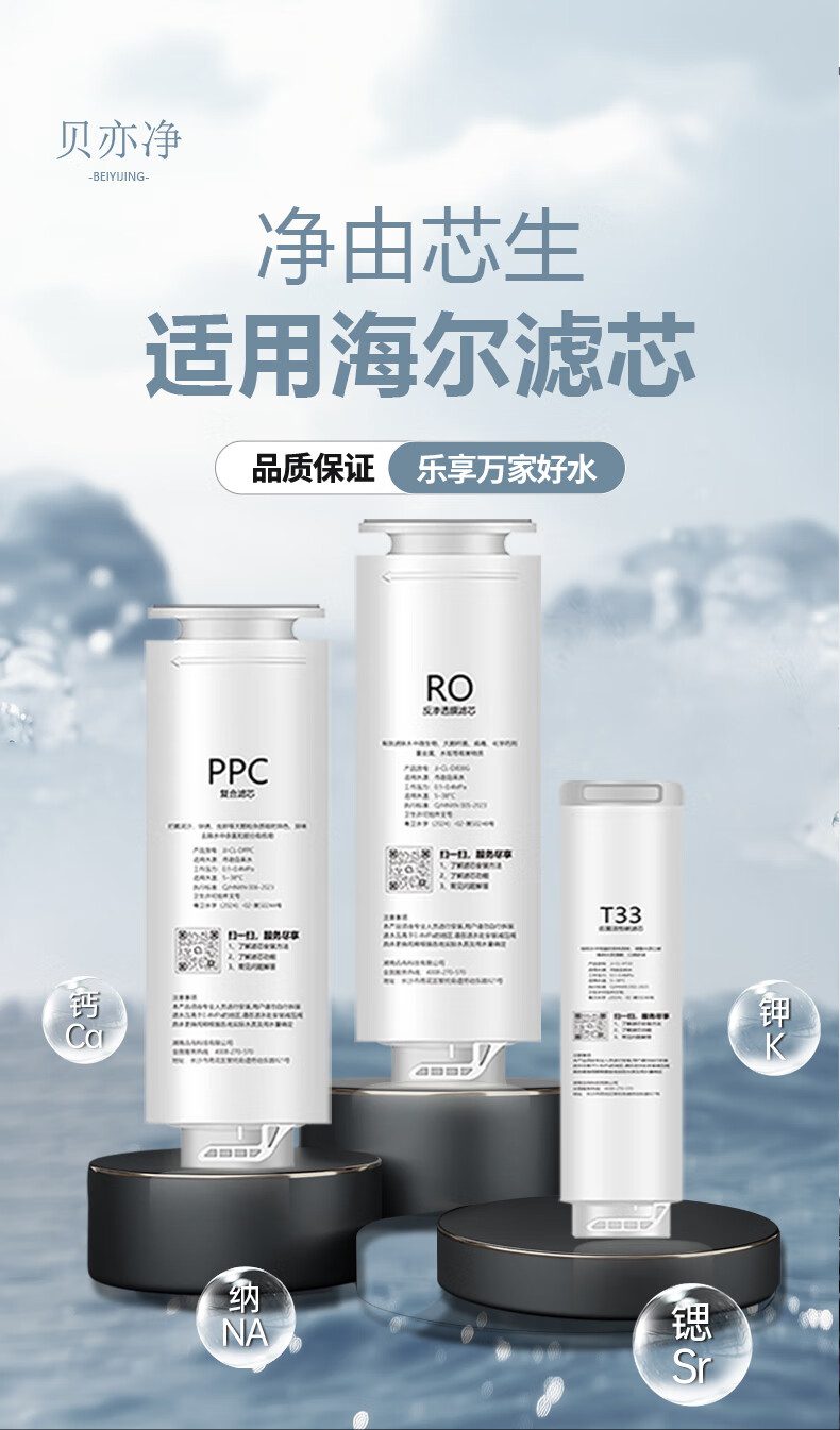 贝亦净适用海尔净水器滤芯全套PPC复合RO反渗透膜T33后置碳净水机滤芯配件 HRO12H59-2U1【全套2支装】