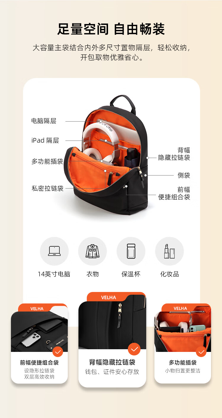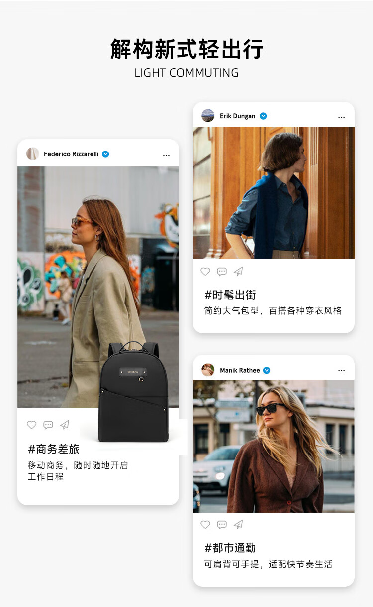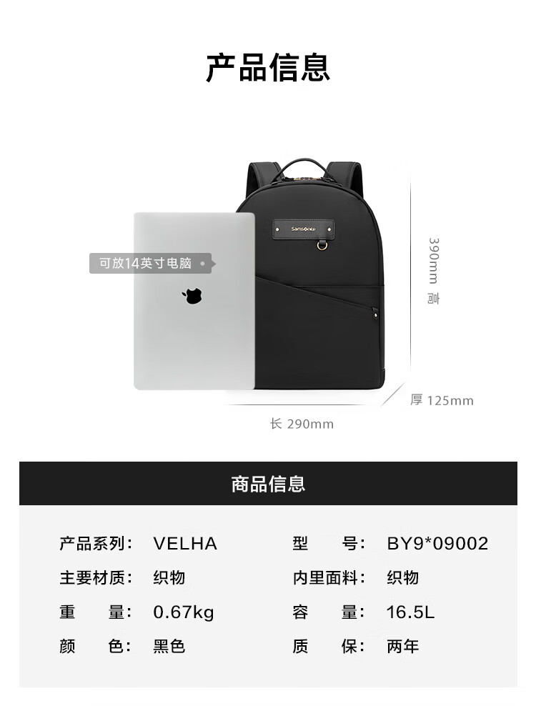 新秀丽(Samsonite)双肩包电脑包14英寸背包女商务旅行包通勤笔记本电脑包大学生书包
