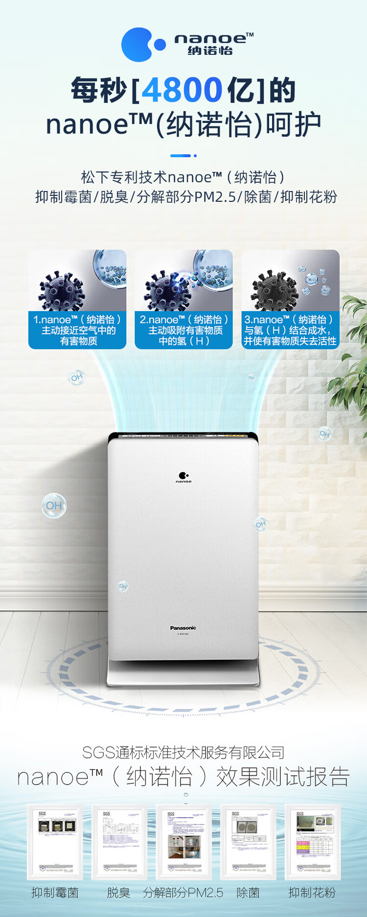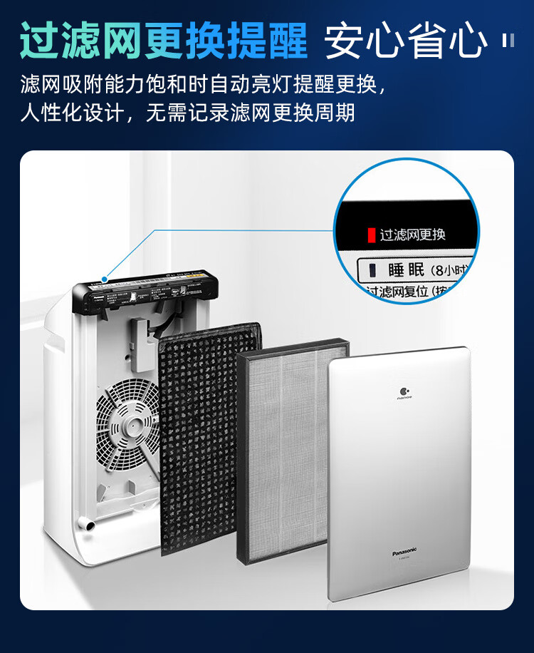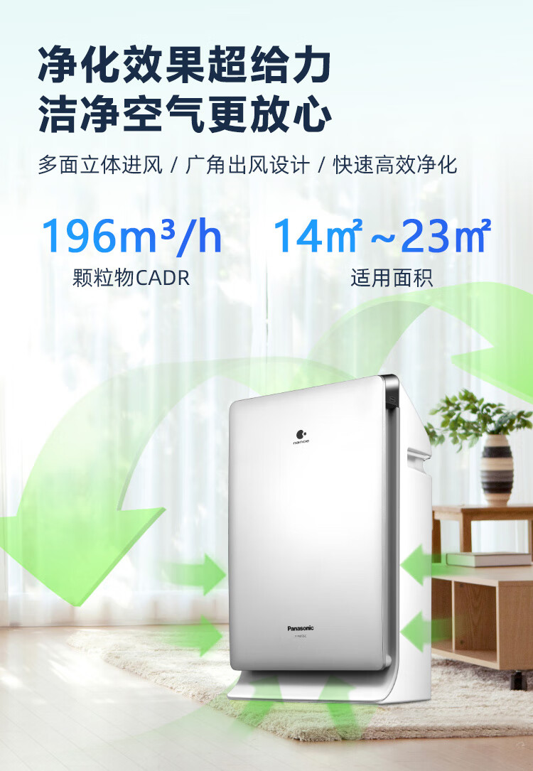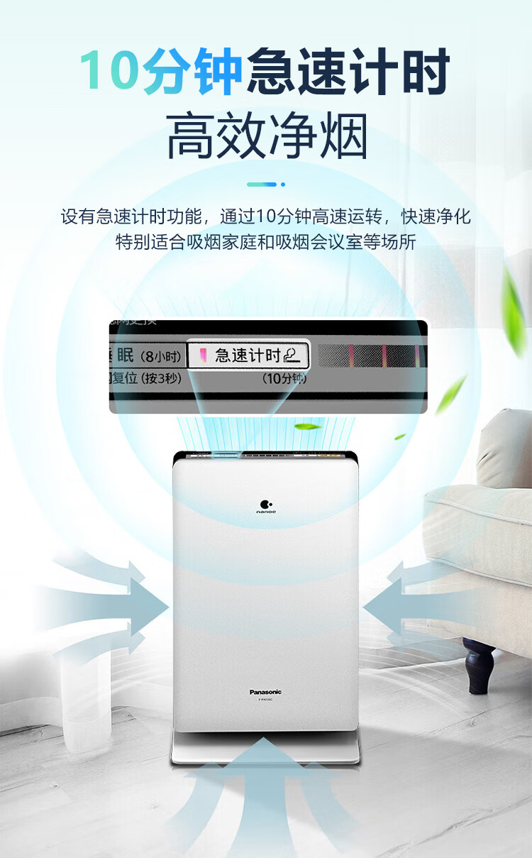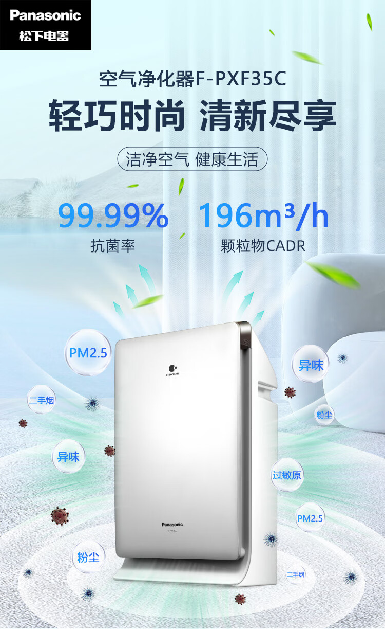 松下(Panasonic)家用空气净化器除甲醛 纳诺怡除菌宠物除异味除过敏源 高效净烟 空气净化机 PXF35C