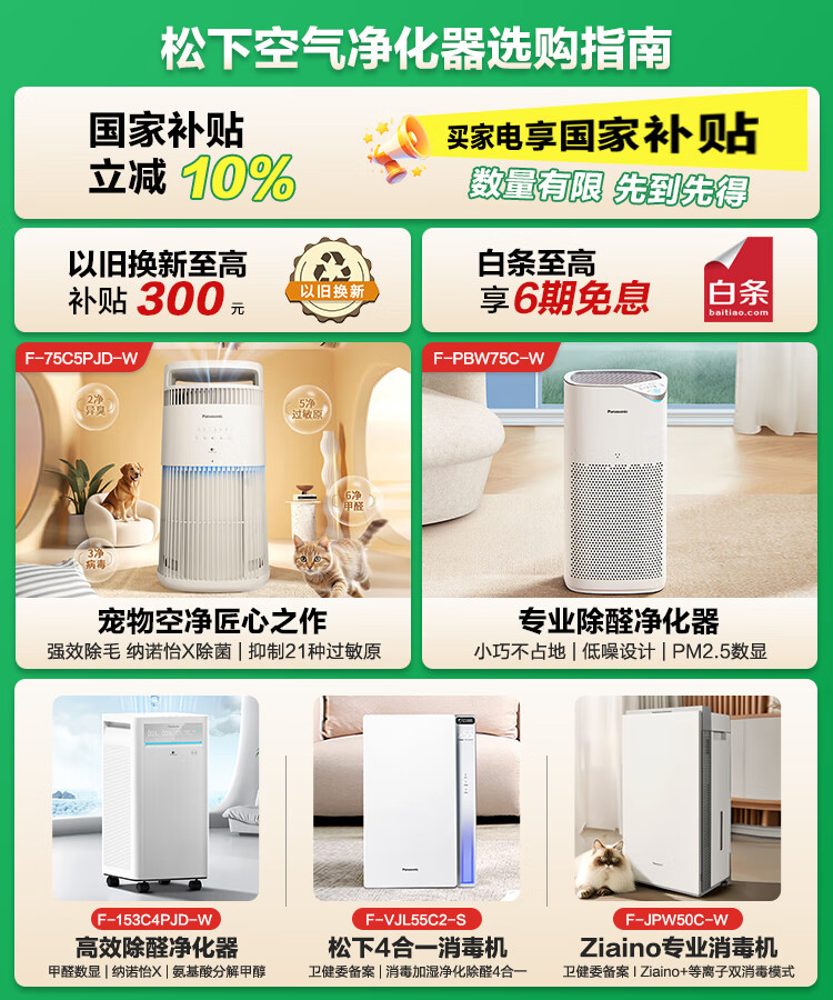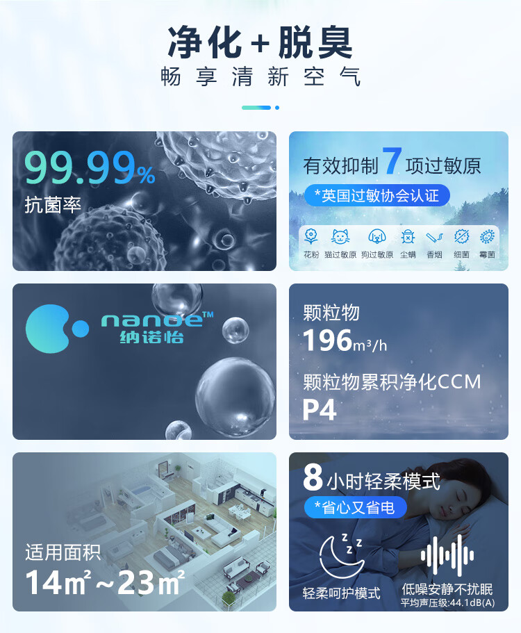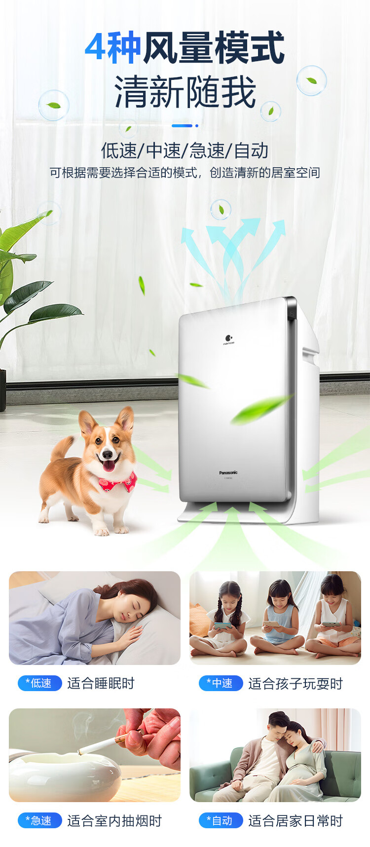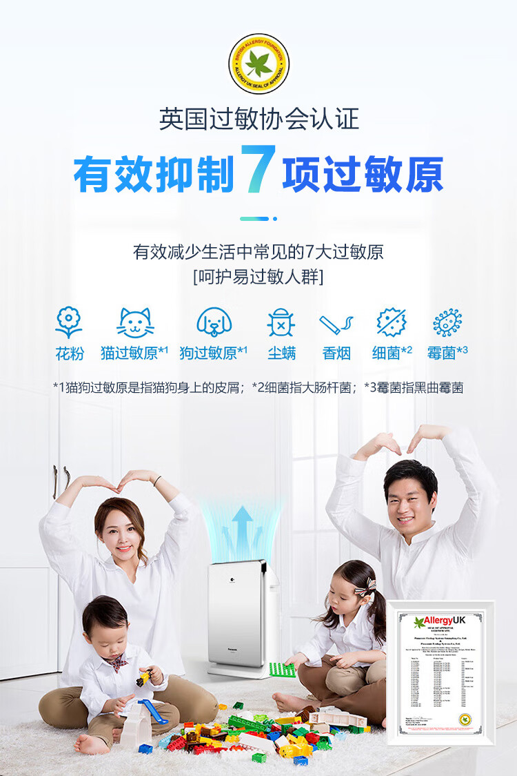 松下(Panasonic)家用空气净化器除甲醛 纳诺怡除菌宠物除异味除过敏源 高效净烟 空气净化机 PXF35C