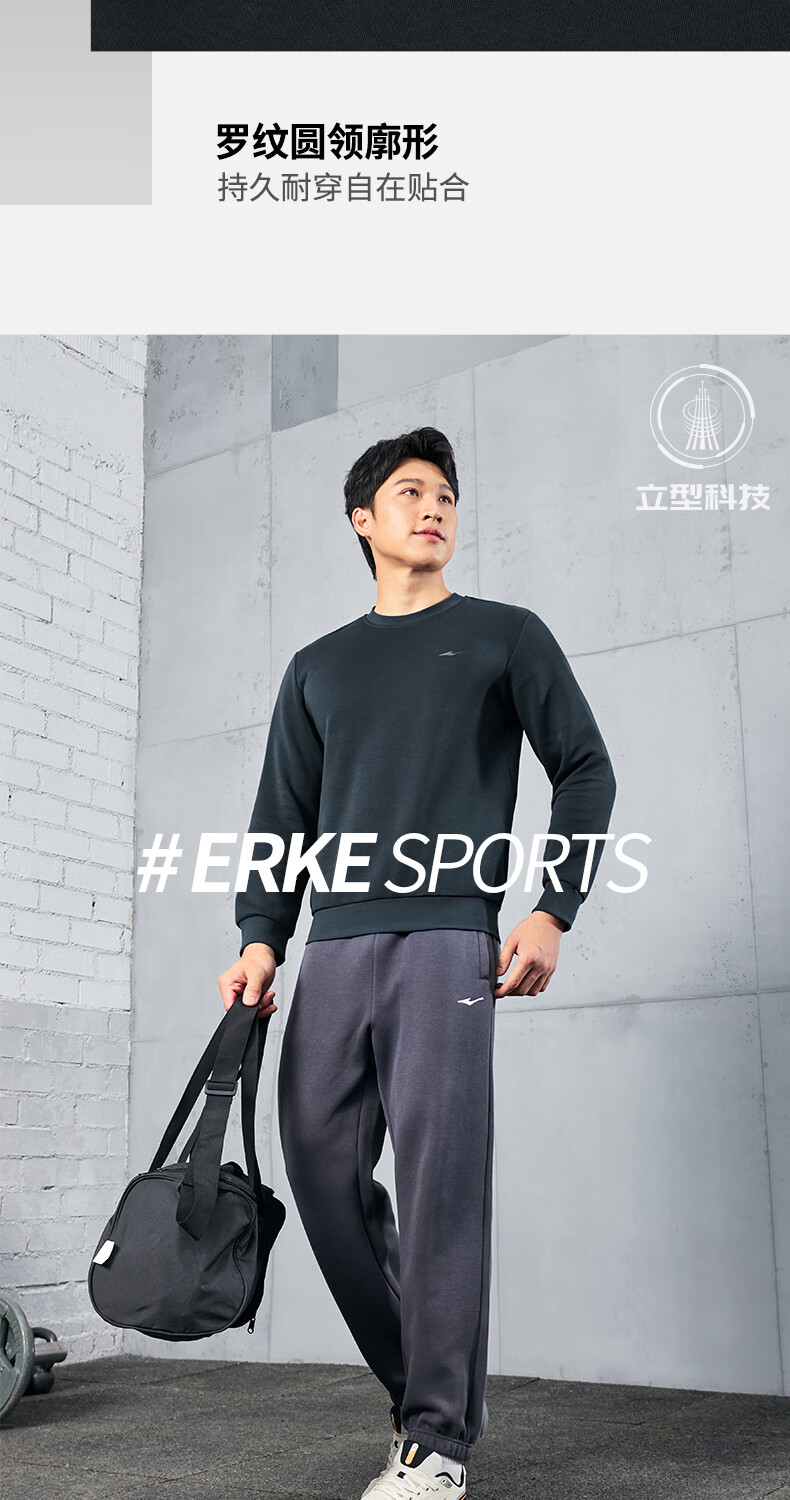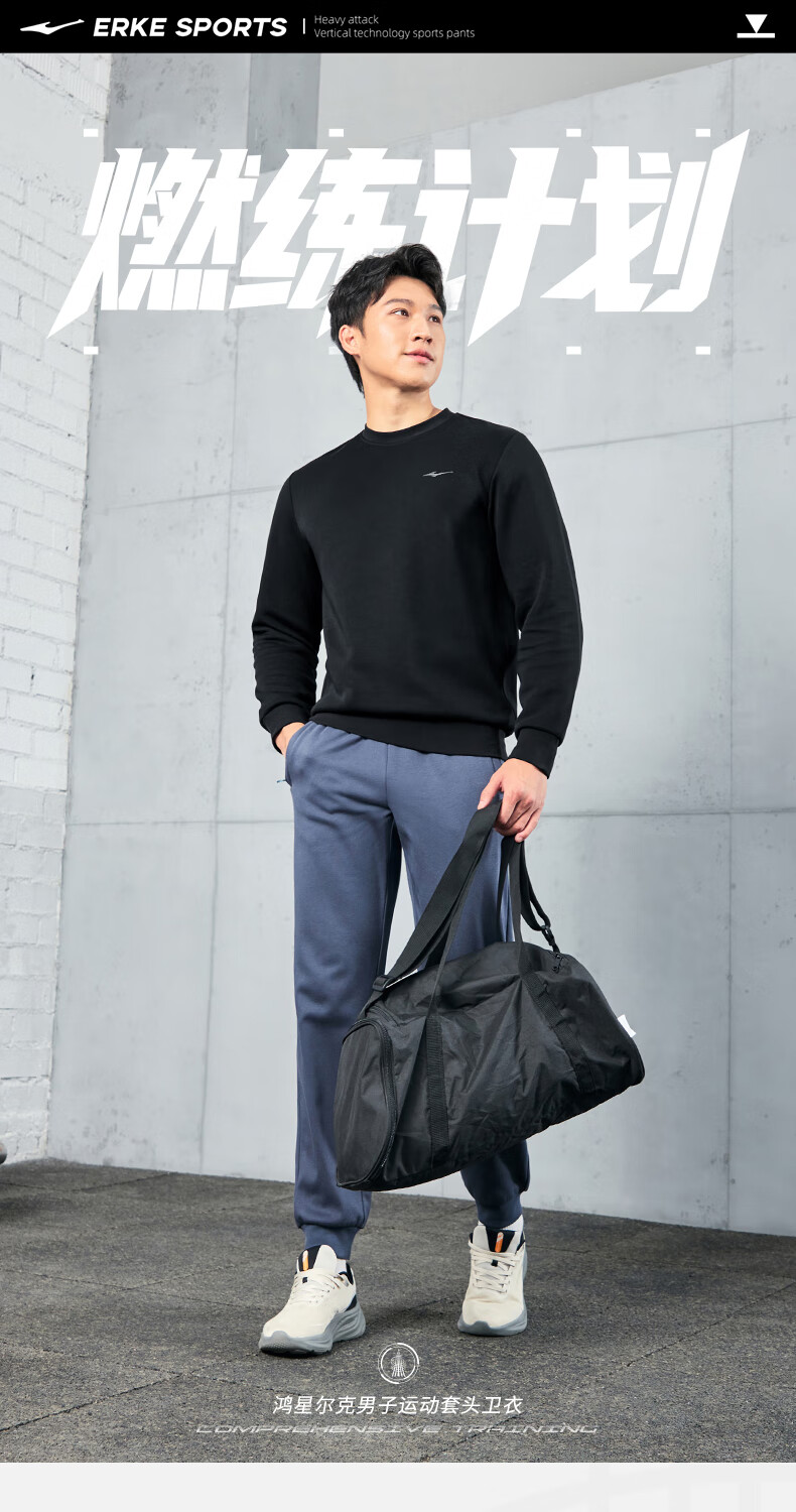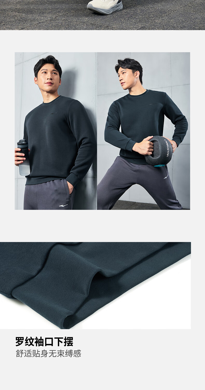 鸿星尔克卫衣男秋季新品圆领套头衫长袖百搭打底宽松上衣松紧下摆男装