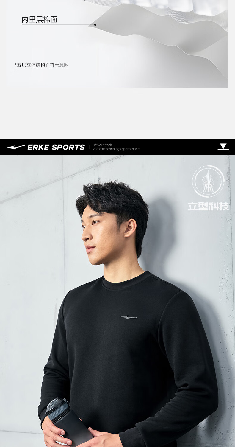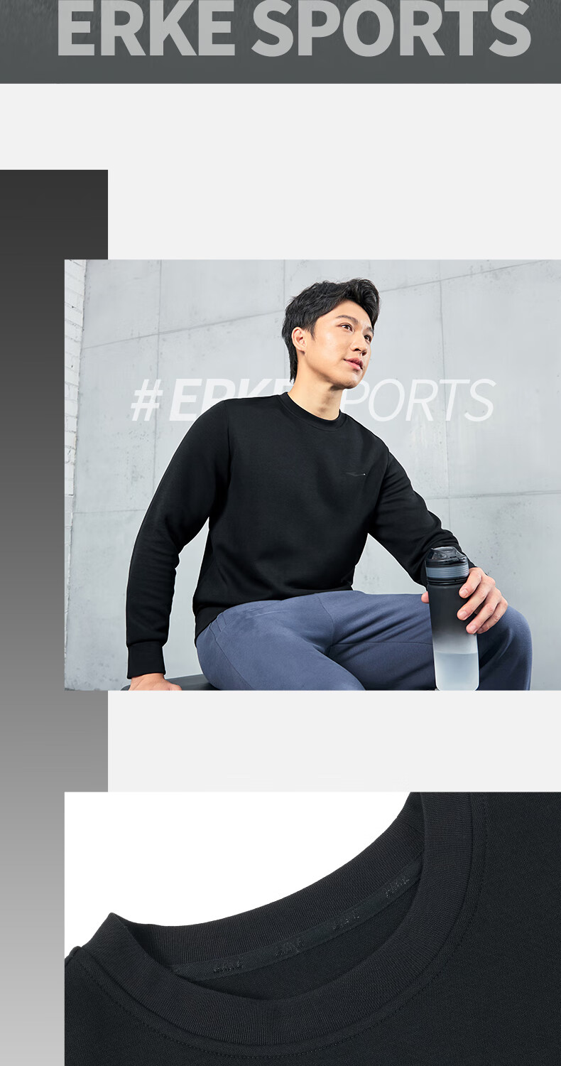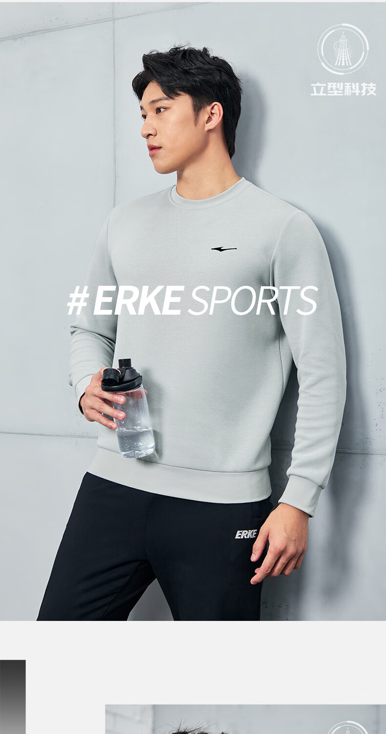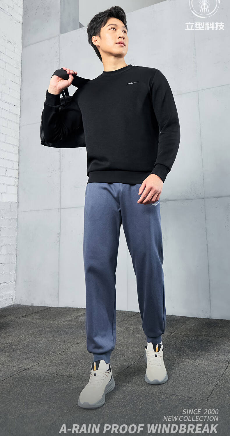 鸿星尔克卫衣男秋季新品圆领套头衫长袖百搭打底宽松上衣松紧下摆男装