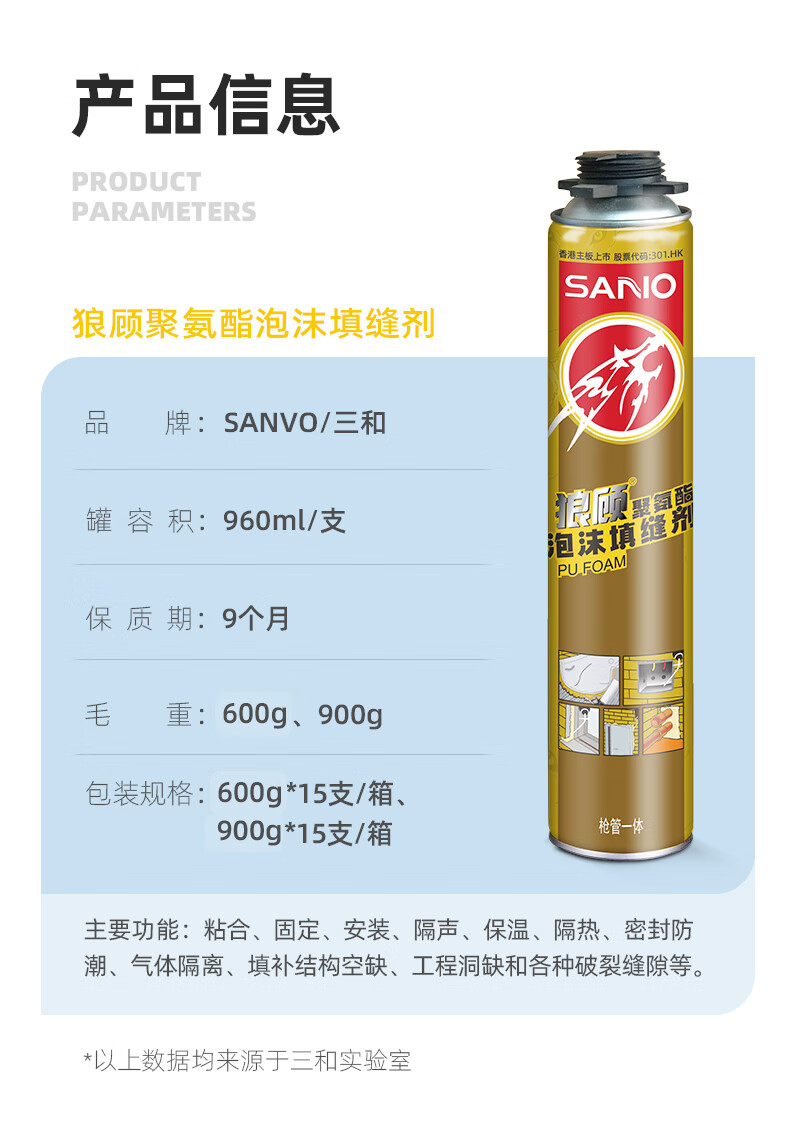 三和发泡胶填缝剂泡沫胶门窗密封泡沫填缝剂发泡剂聚氨酯发泡胶0甲醛 【工程超值15支装】送专用胶管+专业胶枪