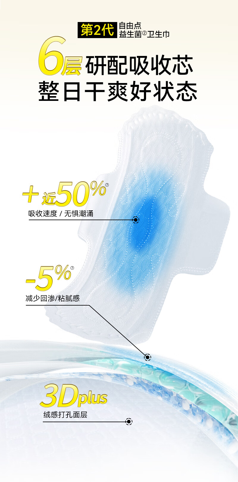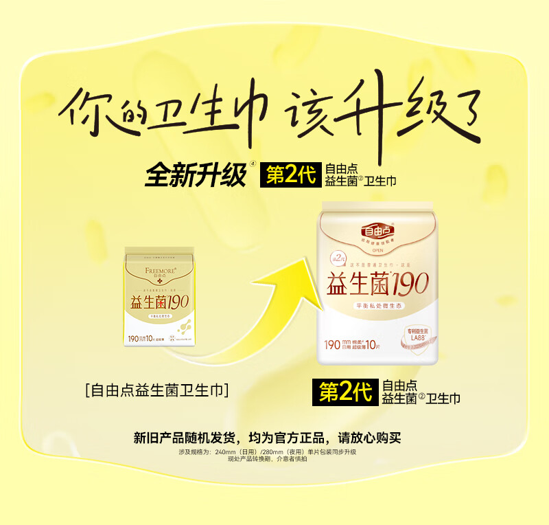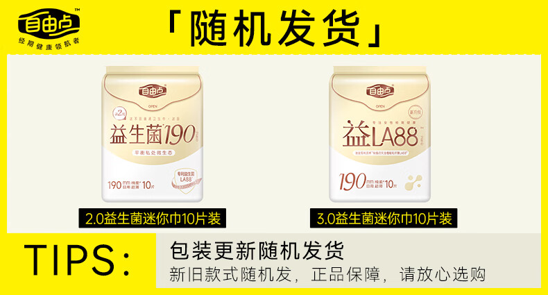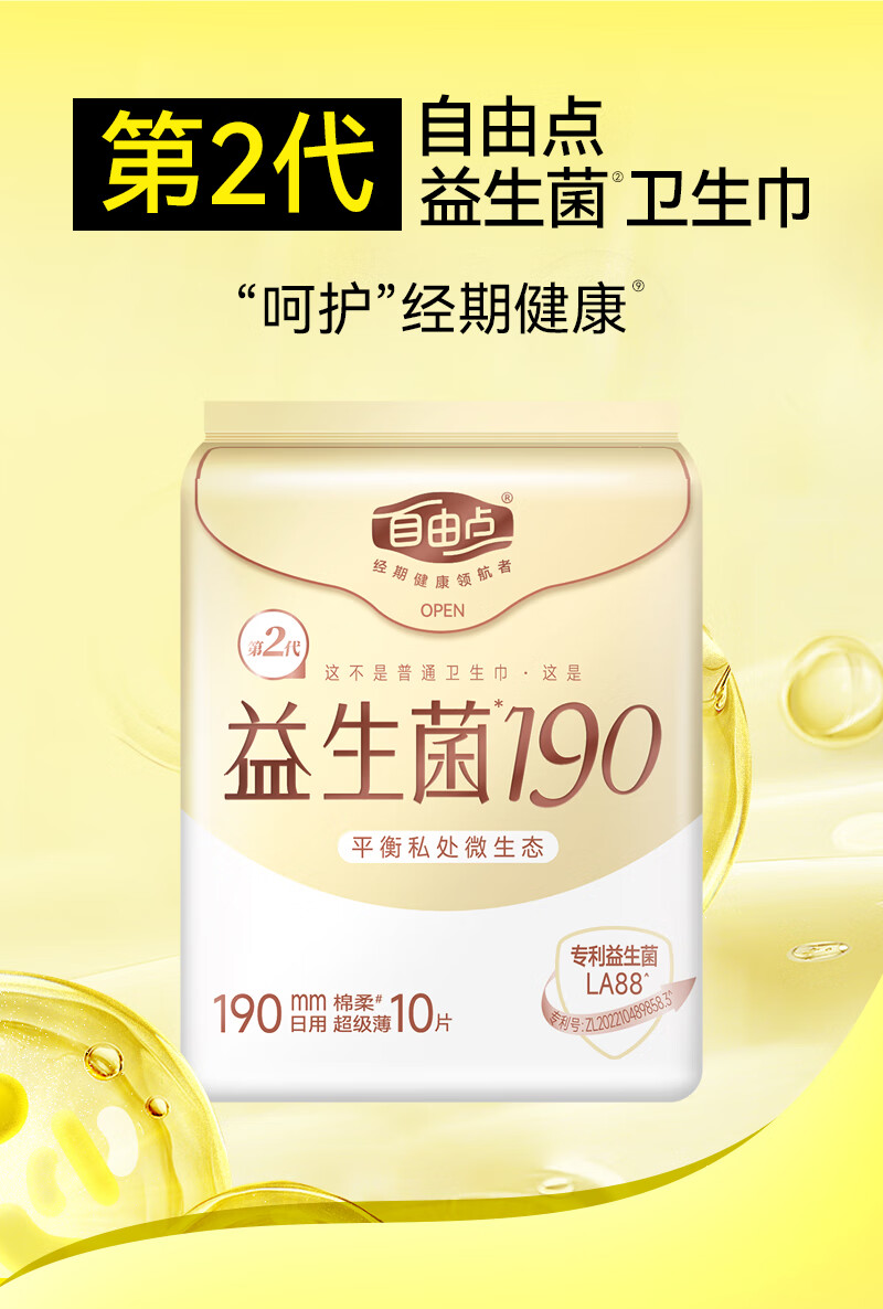 自由点益生菌迷你卫生巾特薄柔软无感姨妈巾 单包 190mm*10片