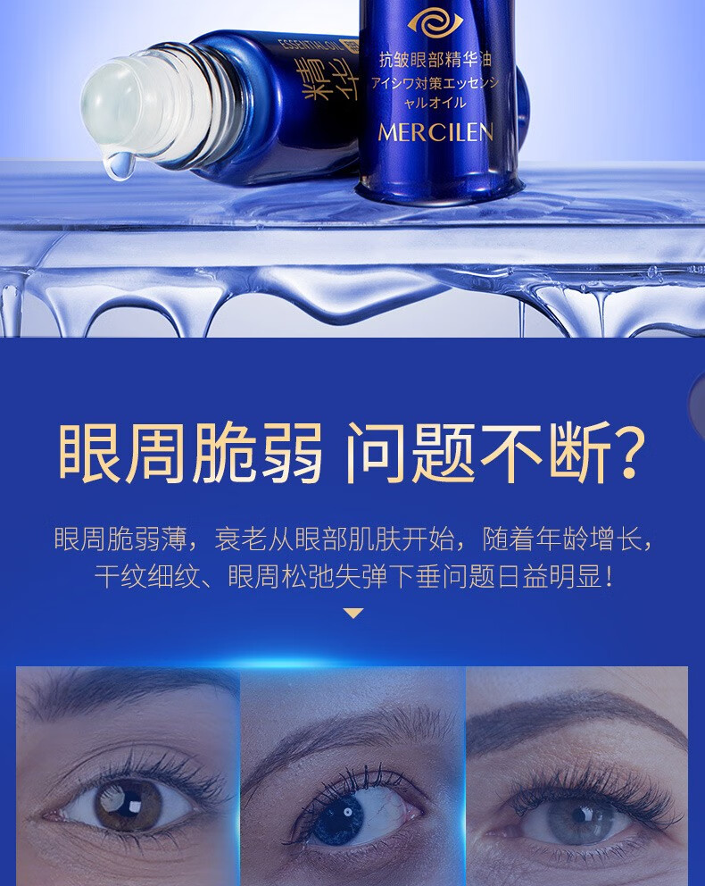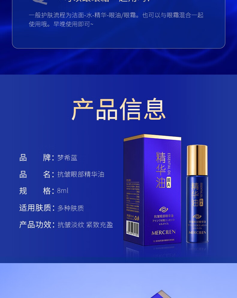 梦希蓝【甄选】抗皱眼部精华油紧致眼周淡纹细纹按摩滚珠霜 1瓶装【8ml】