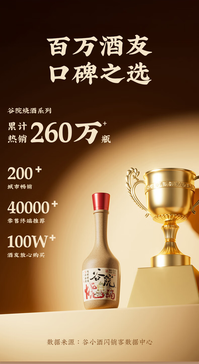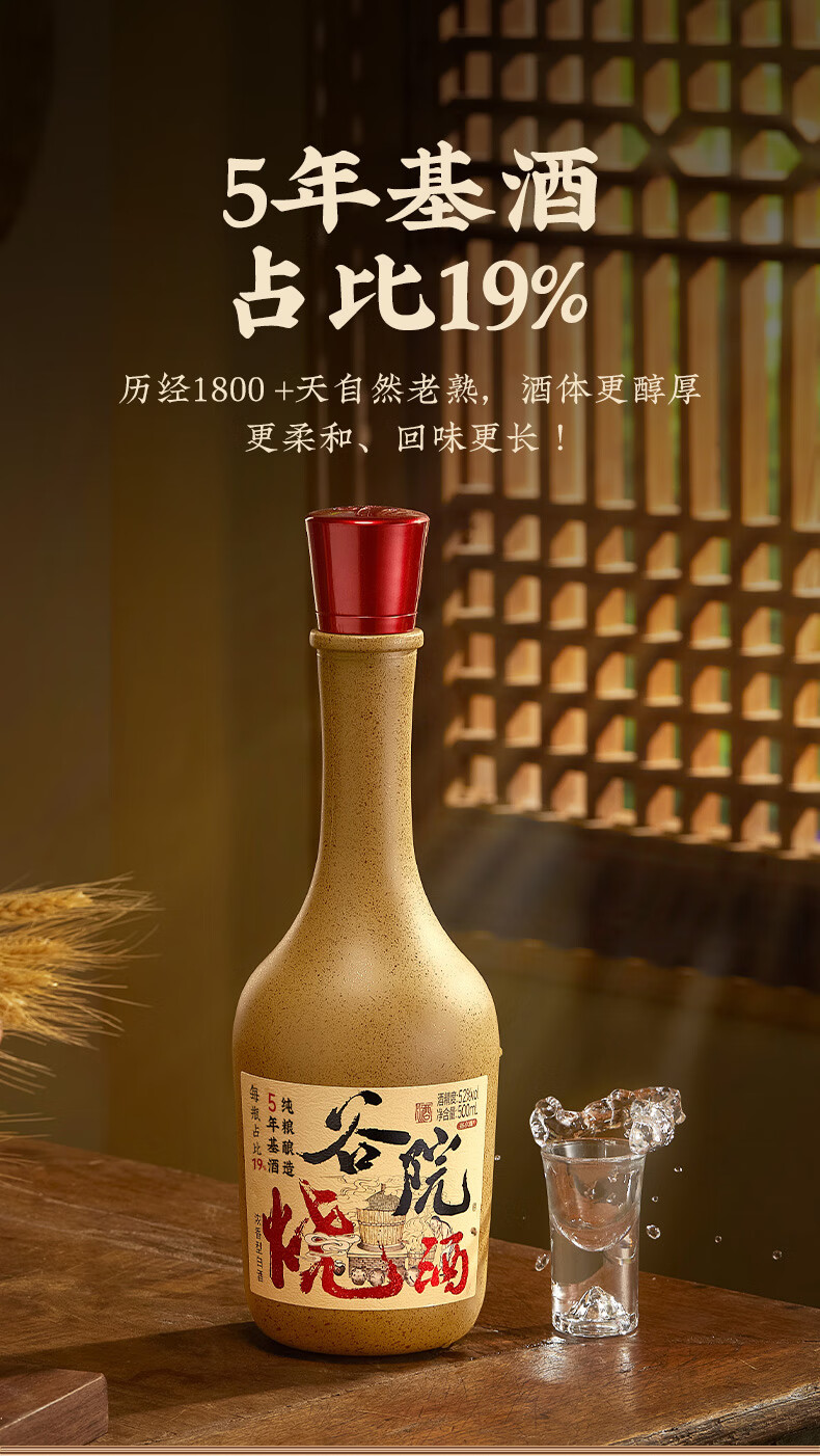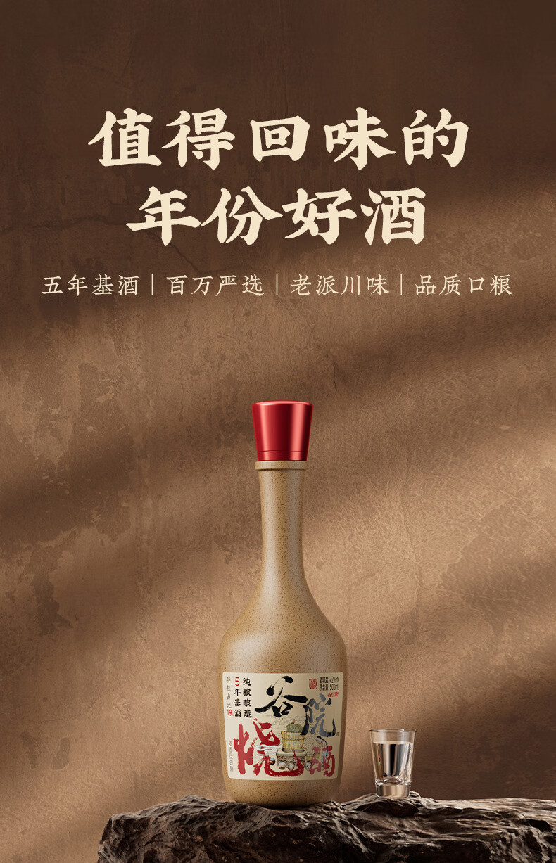 谷小酒谷院烧酒黄瓶 52度川派浓香 固态发酵纯粮白酒口粮酒五年基酒 52度 500mL 1瓶 【渠道专享】