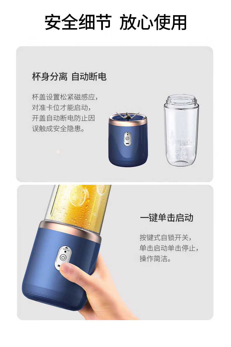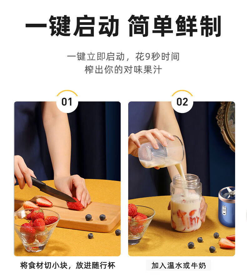 伊莱茵新款榨汁机可携式充电小型家用果汁杯多功能迷你果汁机榨汁杯 0.4L少女粉-无线线款+6刀片+USB