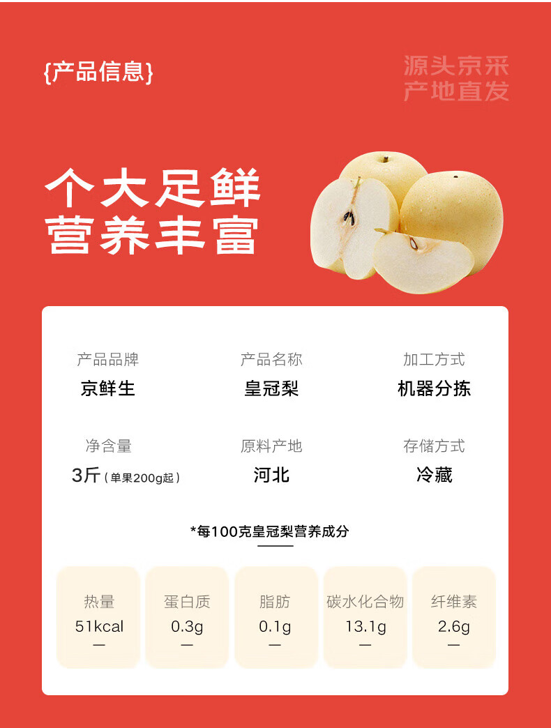 京鲜生河北皇冠梨 净重3斤 单果200g+ 生鲜水果 源头直发