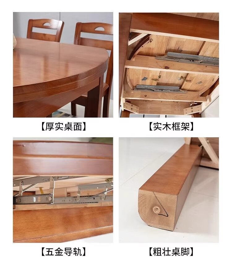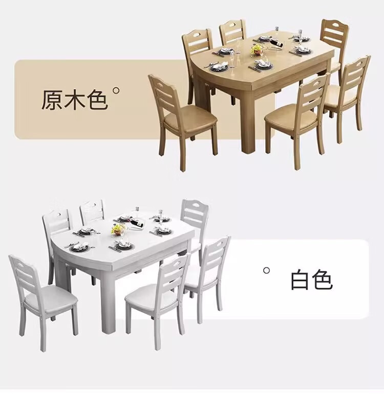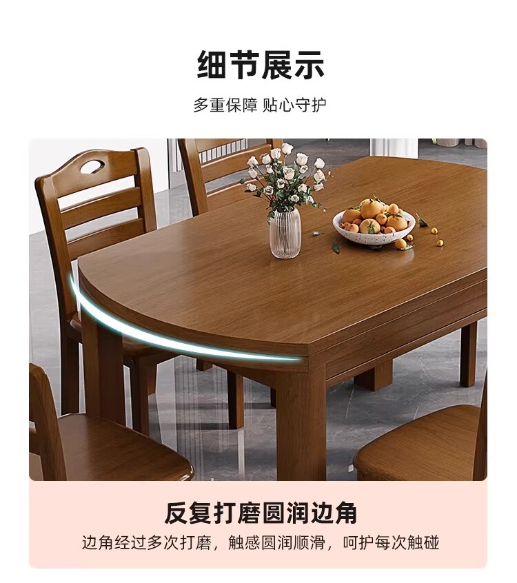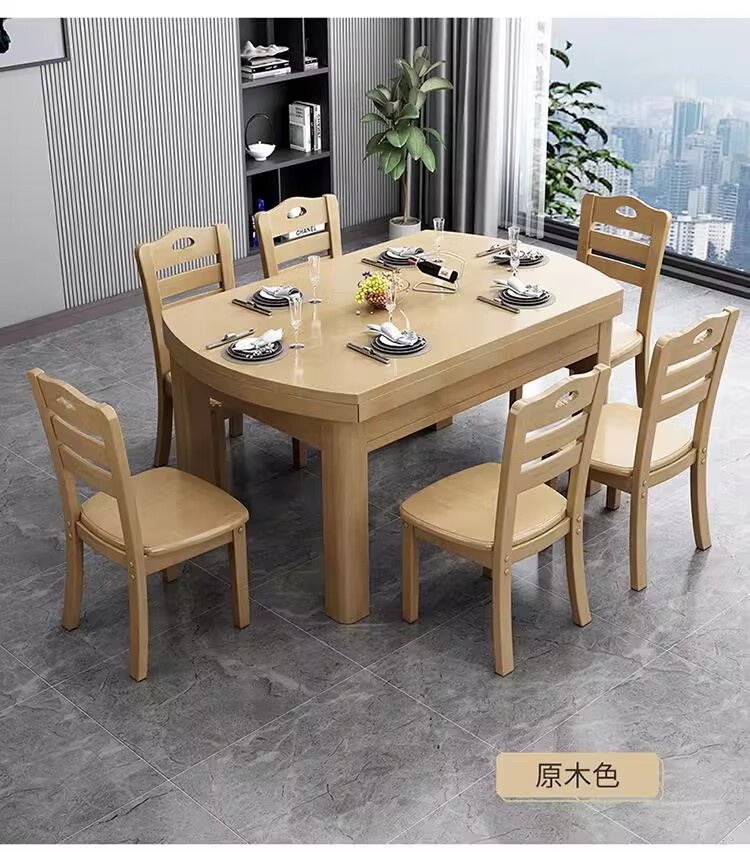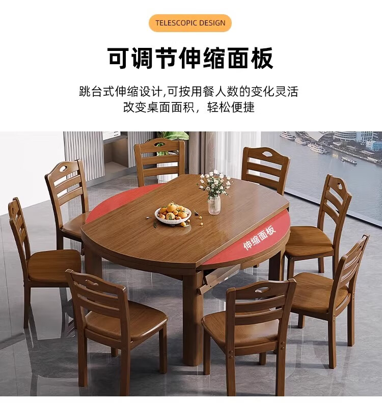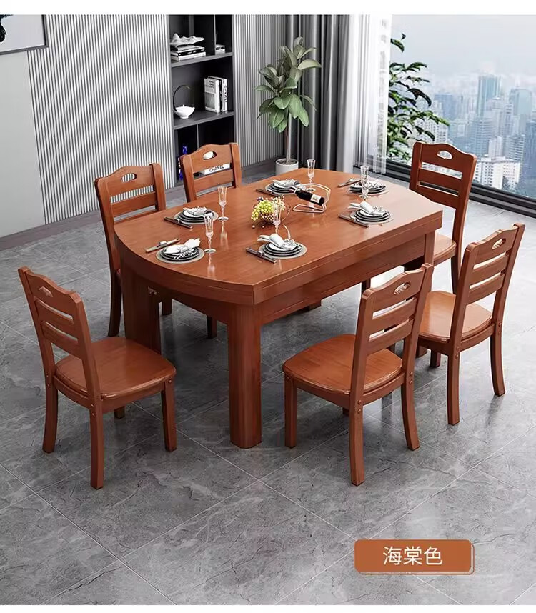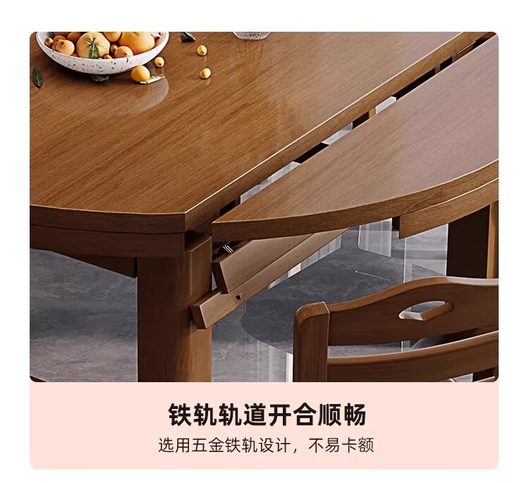 木斌全实木餐桌椅子组合现代中式吃饭桌子可伸缩折叠餐桌圆桌餐厅家具 【全实木胡桃色 】一桌6椅 138*86*76cm