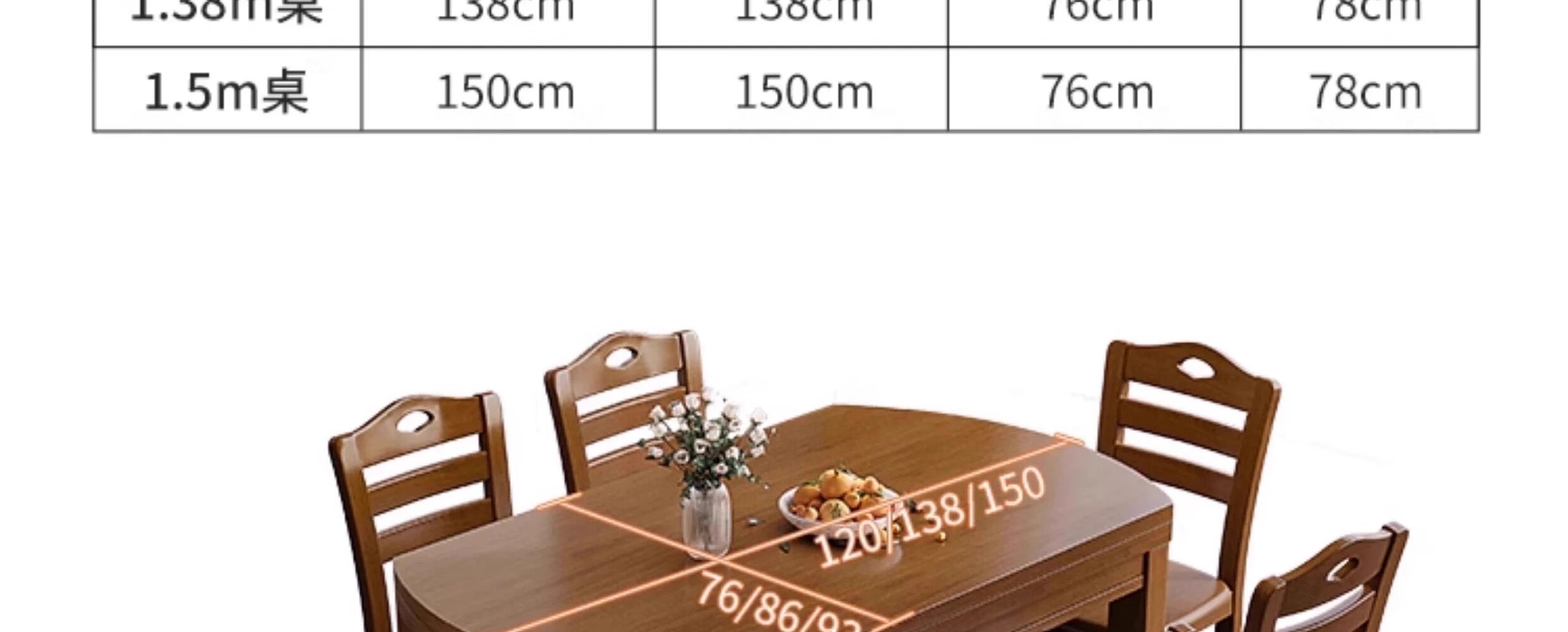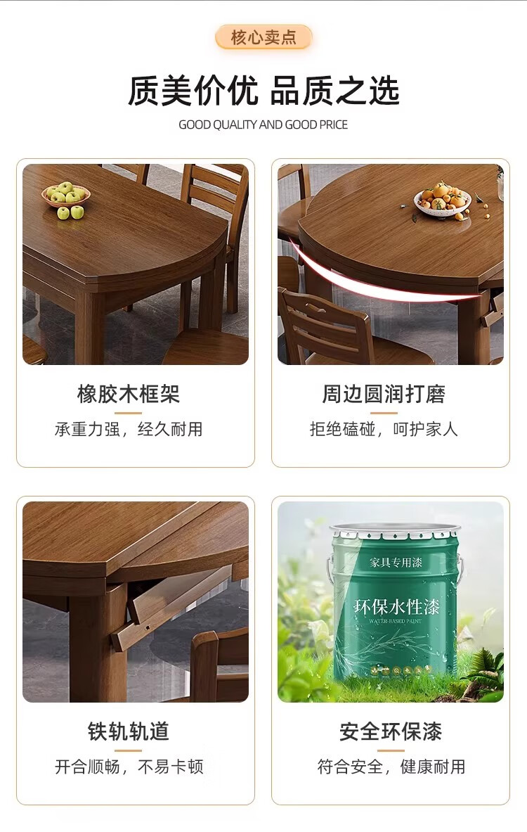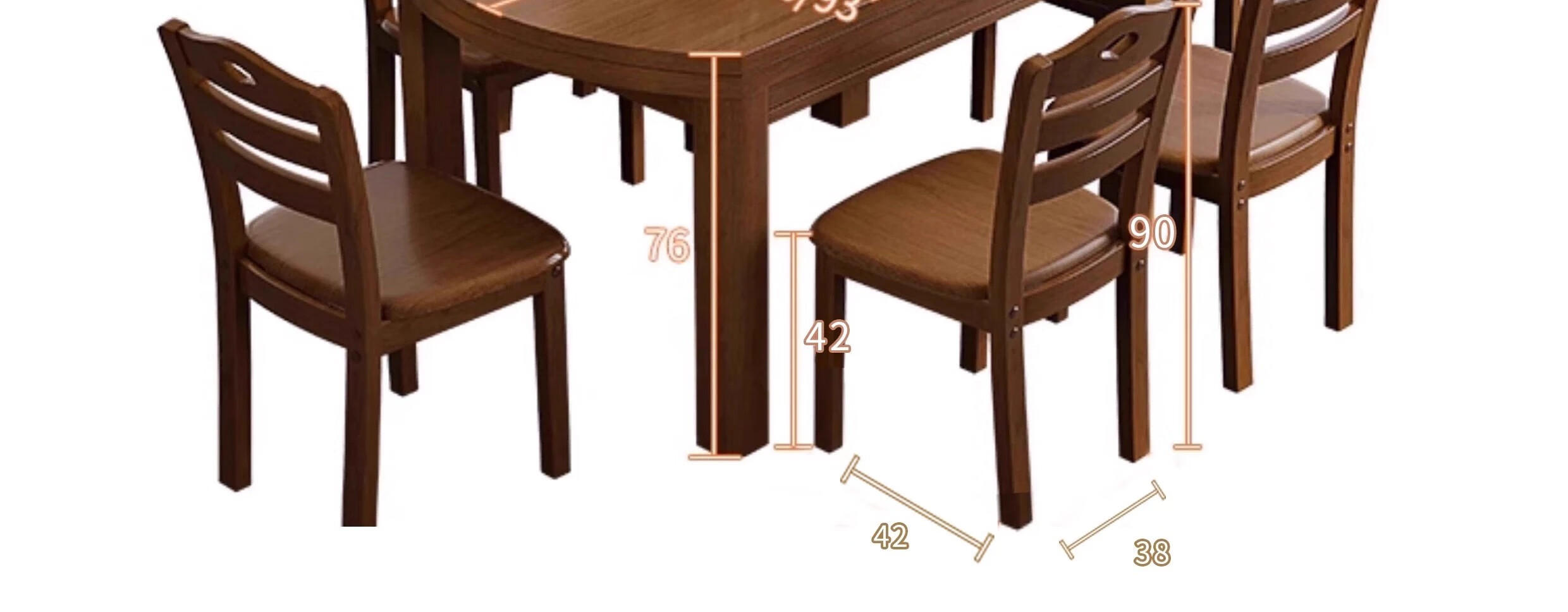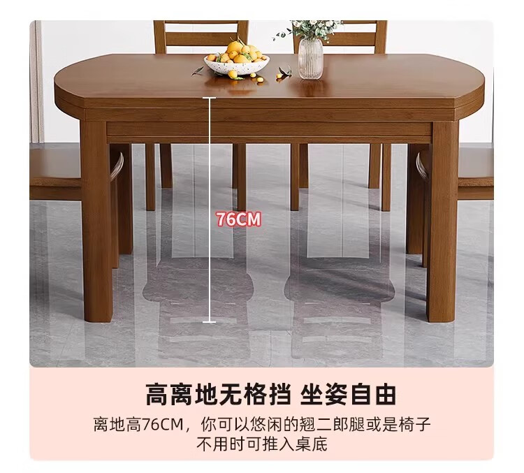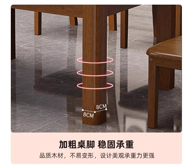 木斌全实木餐桌椅子组合现代中式吃饭桌子可伸缩折叠餐桌圆桌餐厅家具 【全实木胡桃色 】一桌6椅 138*86*76cm
