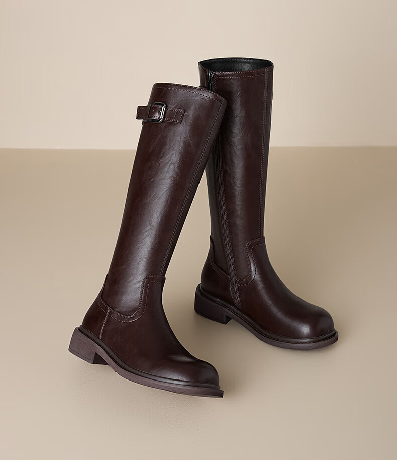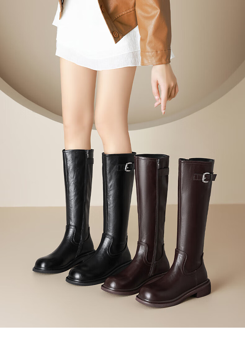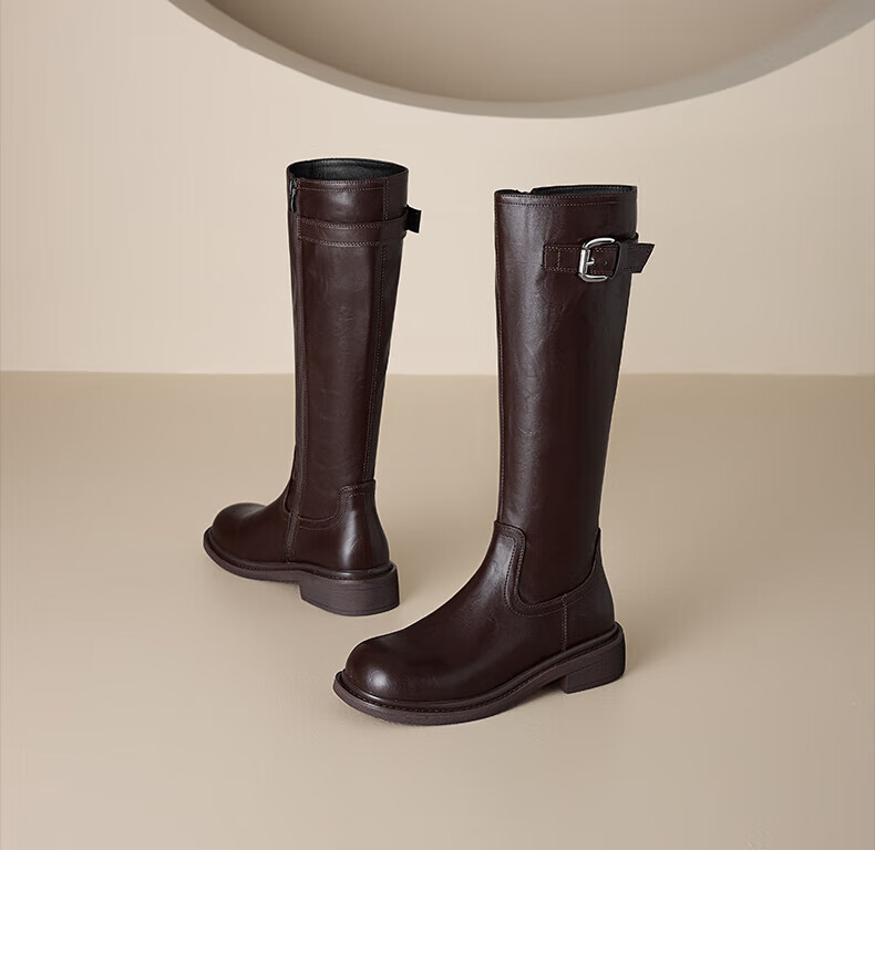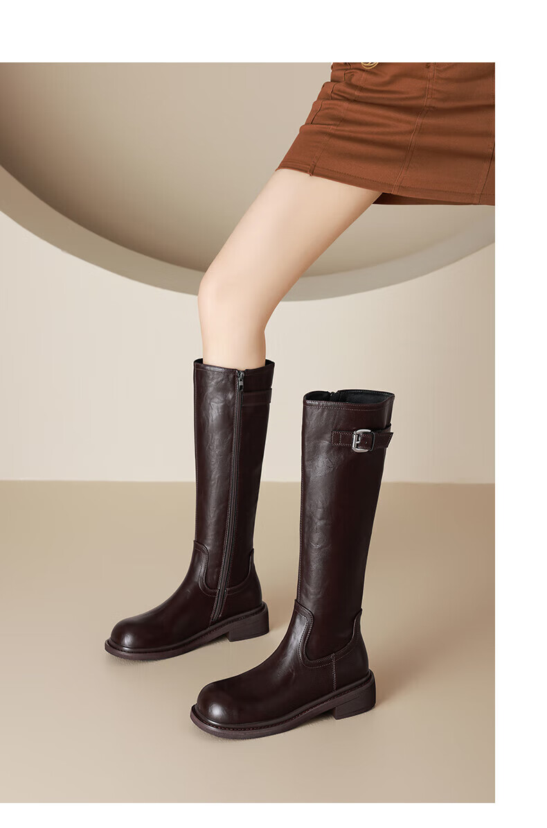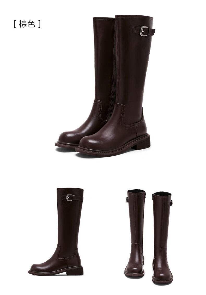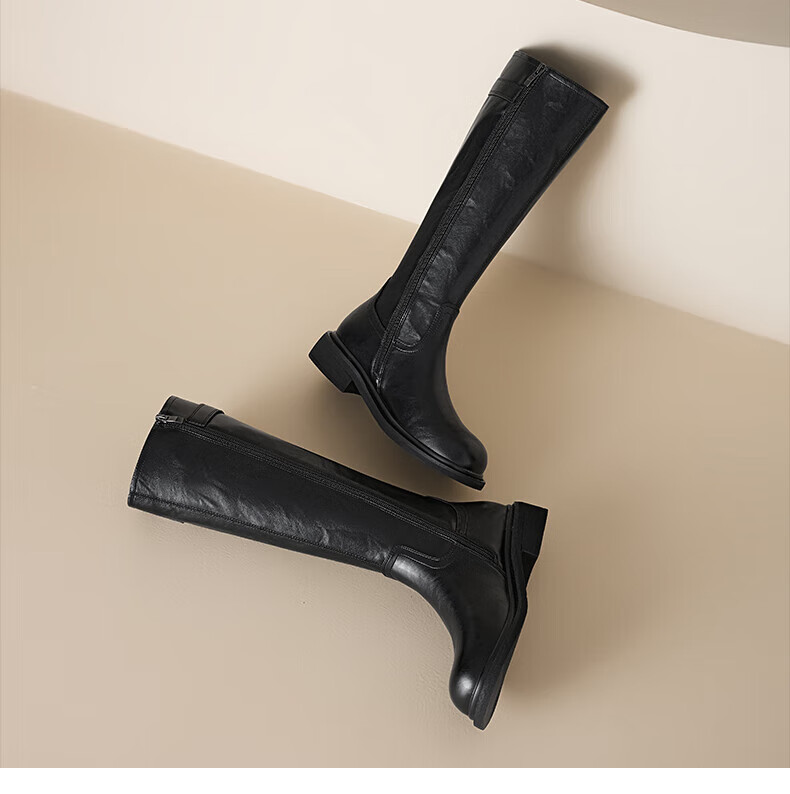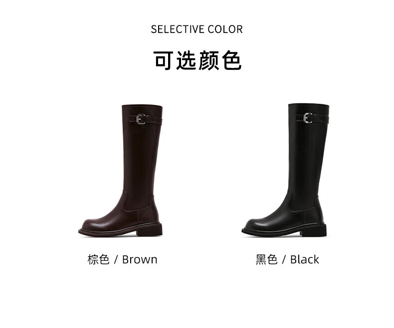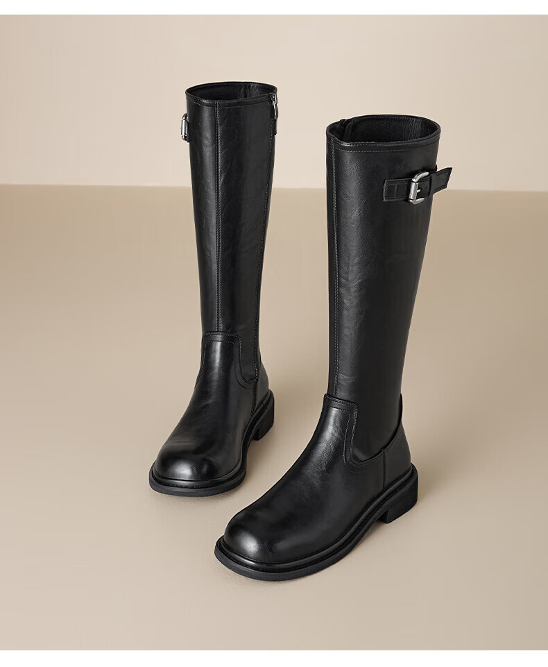 星期六厚底金锁扣长筒靴女2025新款秋冬百搭显瘦长靴不过膝英伦骑士靴女 黑色 37