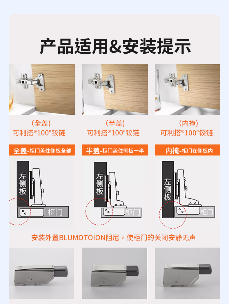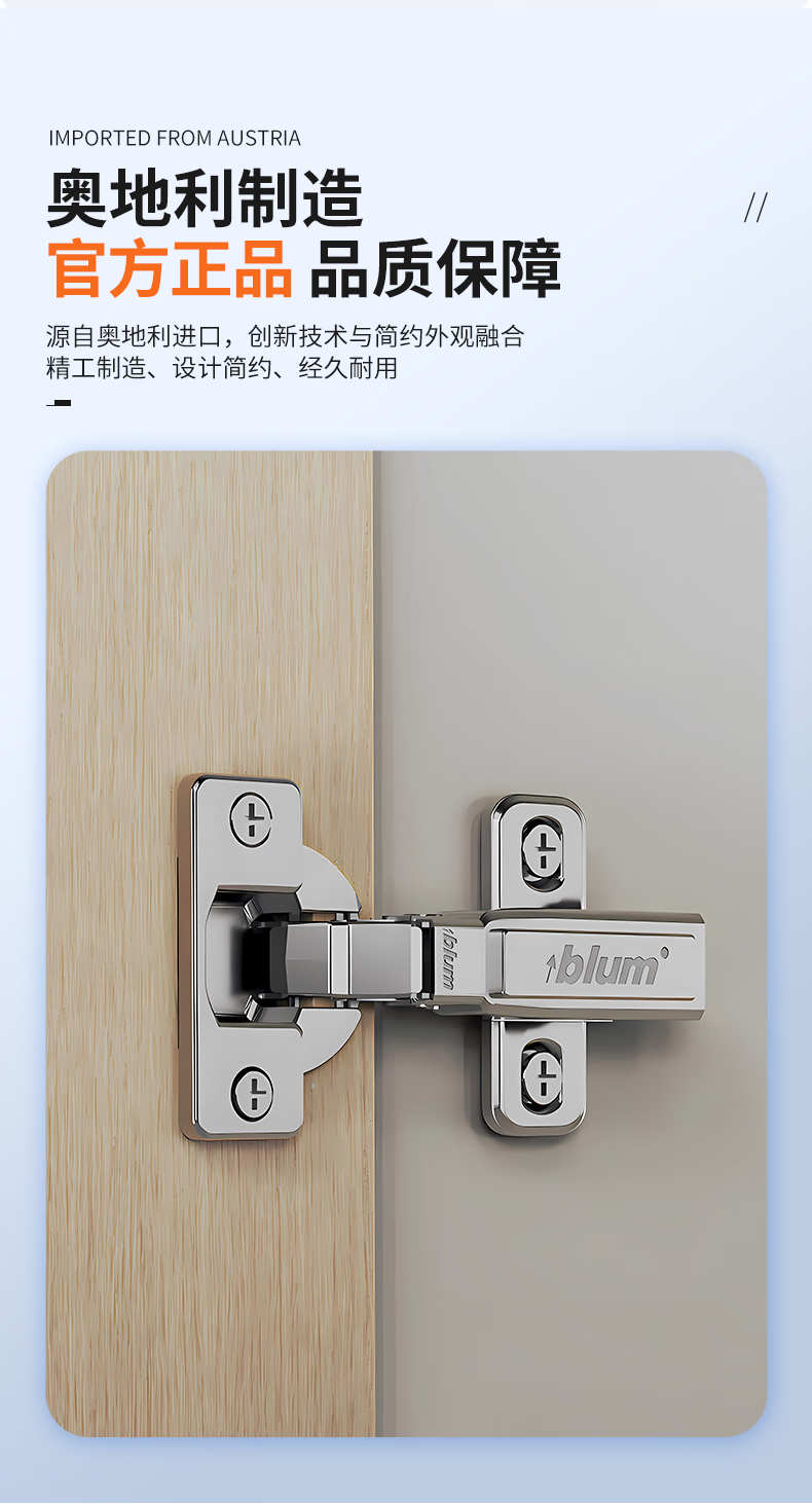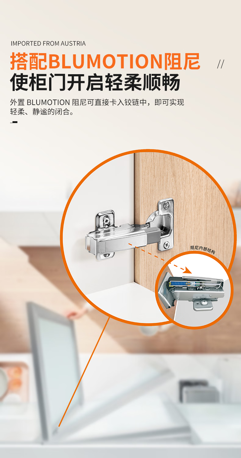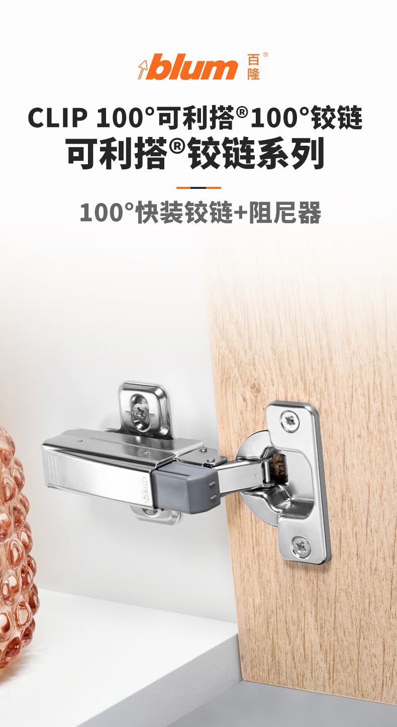百隆(BLUM)奥地利进口clip100°快装铰链外置阻尼小角度缓冲橱柜衣柜门合页 全盖(直臂)小角度缓冲
