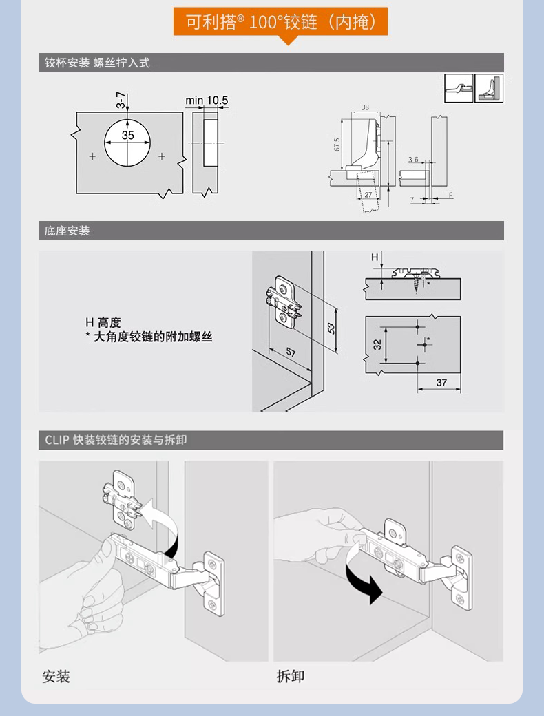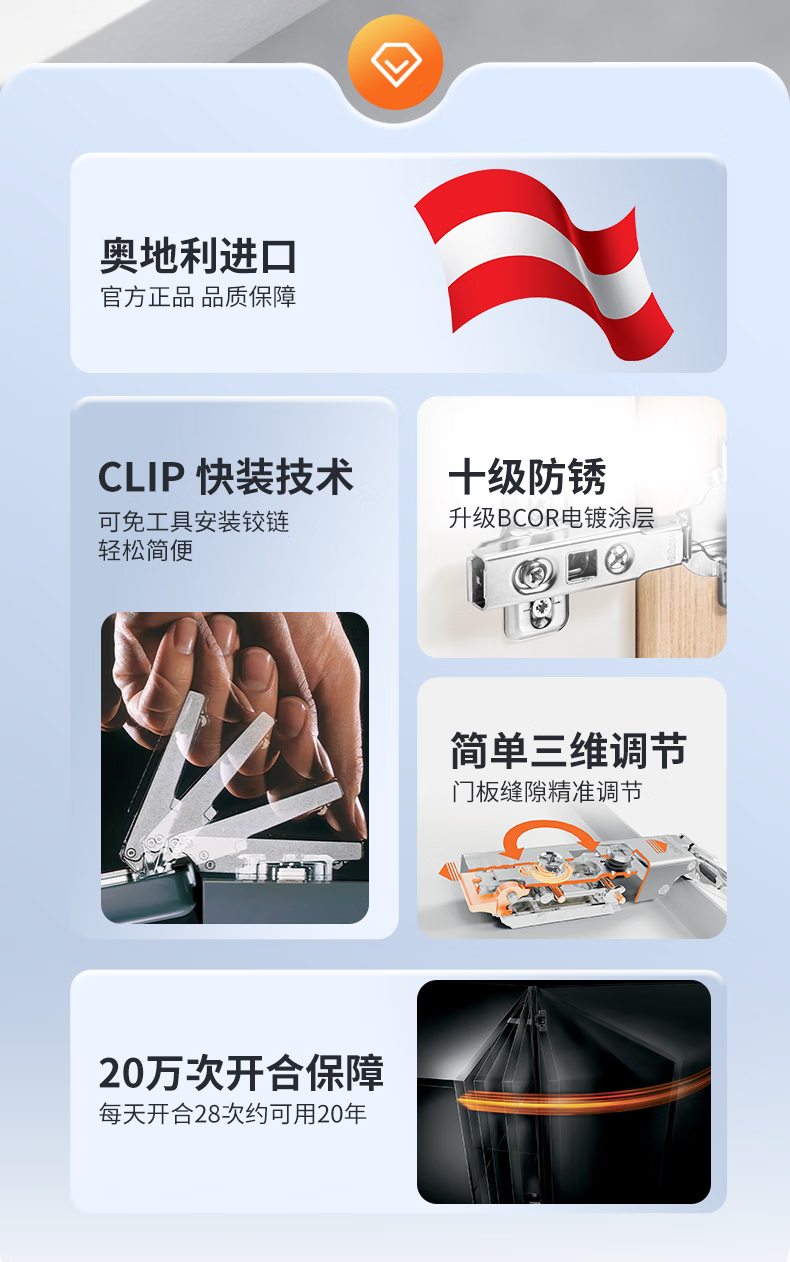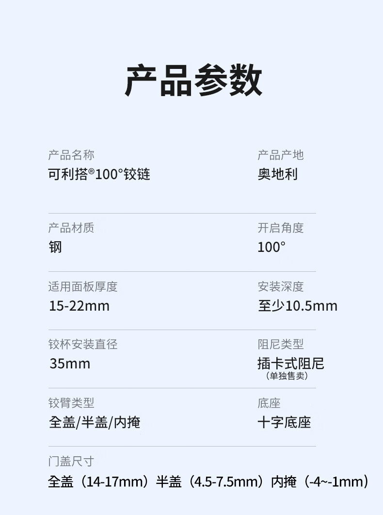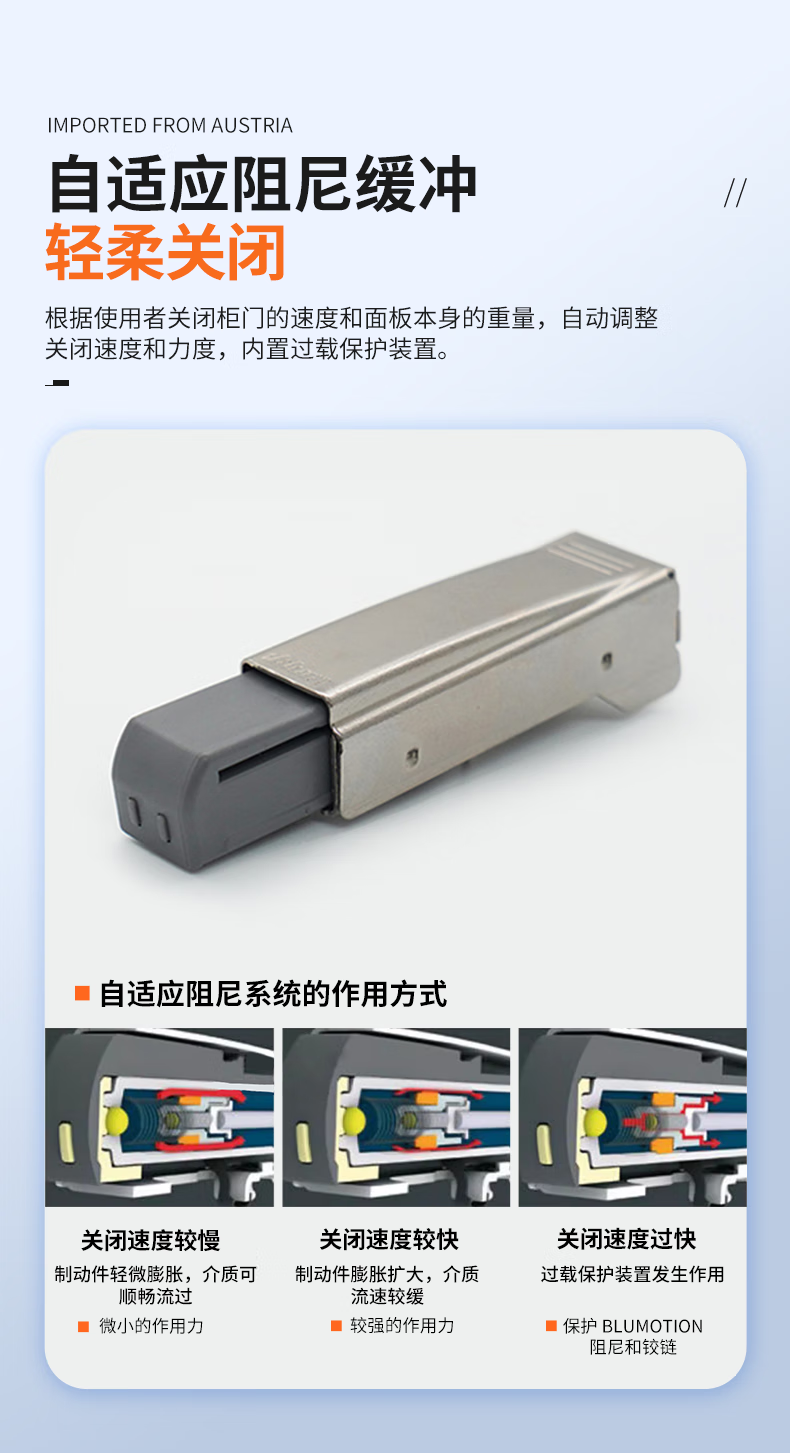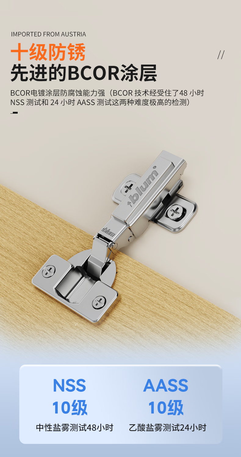 百隆(BLUM)奥地利进口clip100°快装铰链外置阻尼小角度缓冲橱柜衣柜门合页 全盖(直臂)小角度缓冲