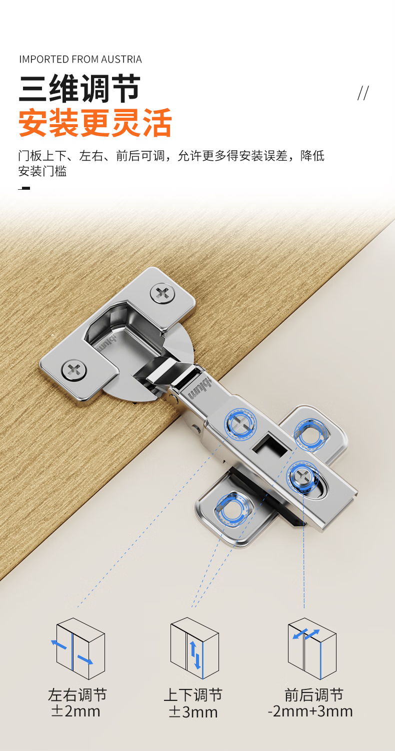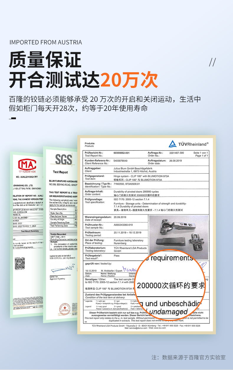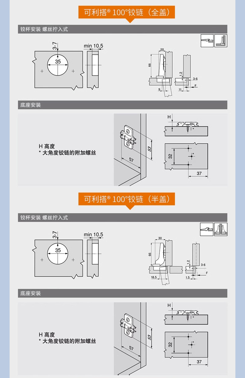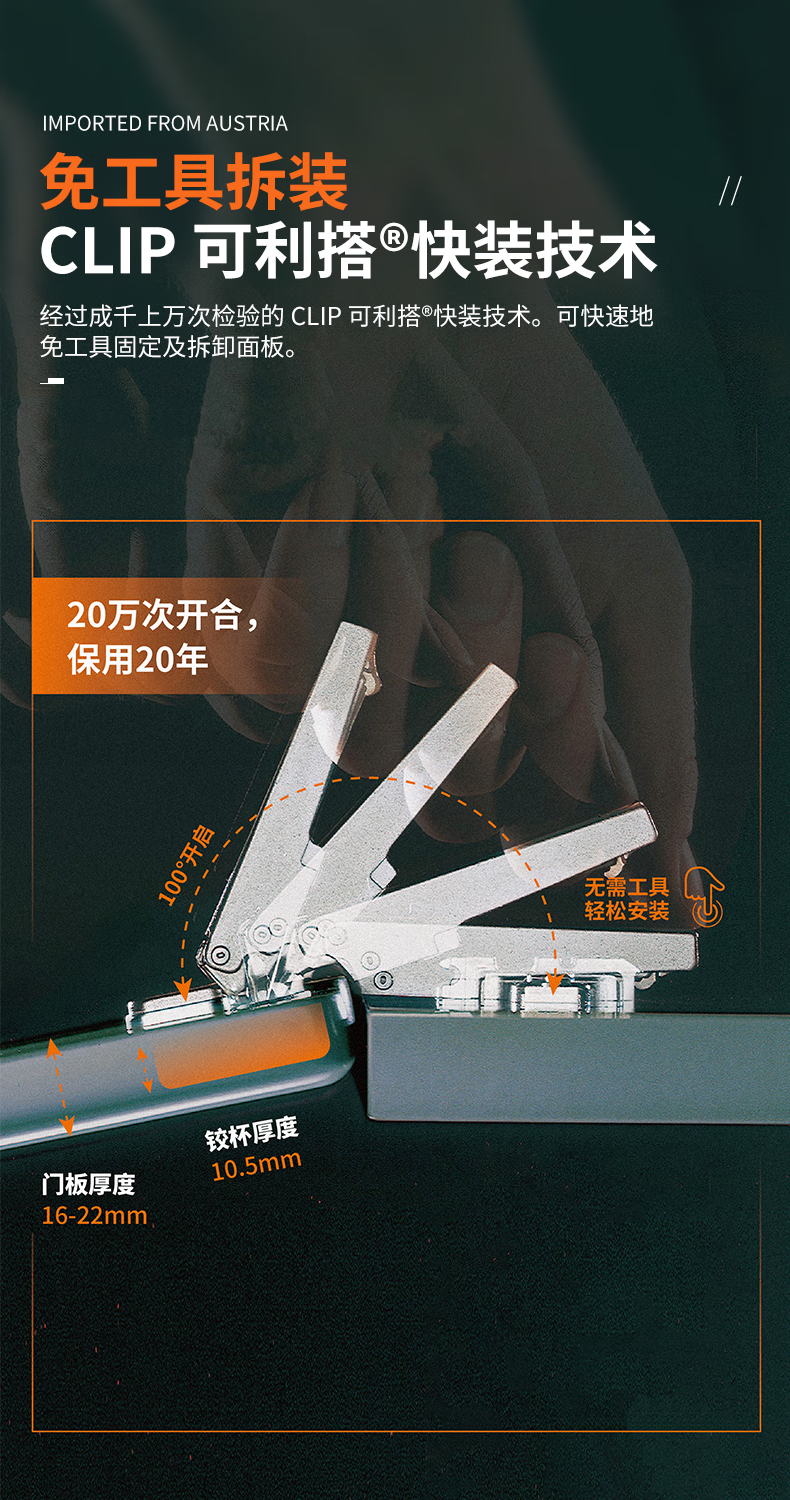 百隆(BLUM)奥地利进口clip100°快装铰链外置阻尼小角度缓冲橱柜衣柜门合页 全盖(直臂)小角度缓冲