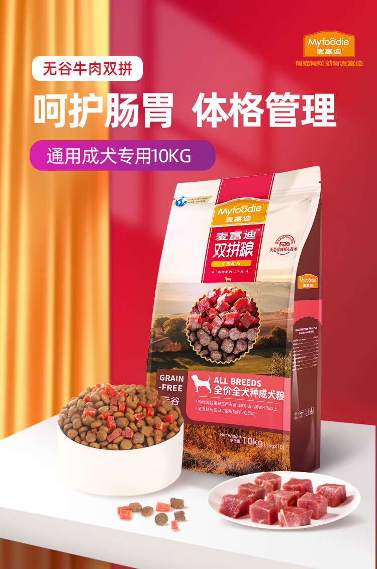 麦富迪狗粮 无谷牛肉双拼狗粮成犬 小型犬中大型犬通用10kg/20斤