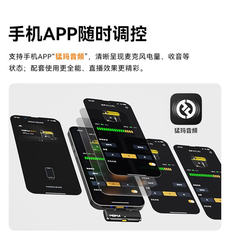 猛玛 悦声S1二代无线领夹MOMA麦克风直播降噪收音麦猛犸短视频拍摄vlog采访户外手机录音话筒麦 【Lightning版】悦声S1一拖二+充电盒 高品质直插降噪麦