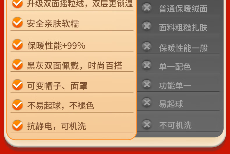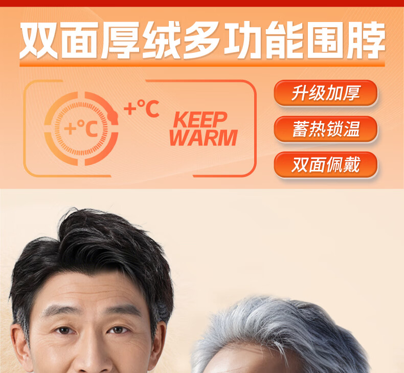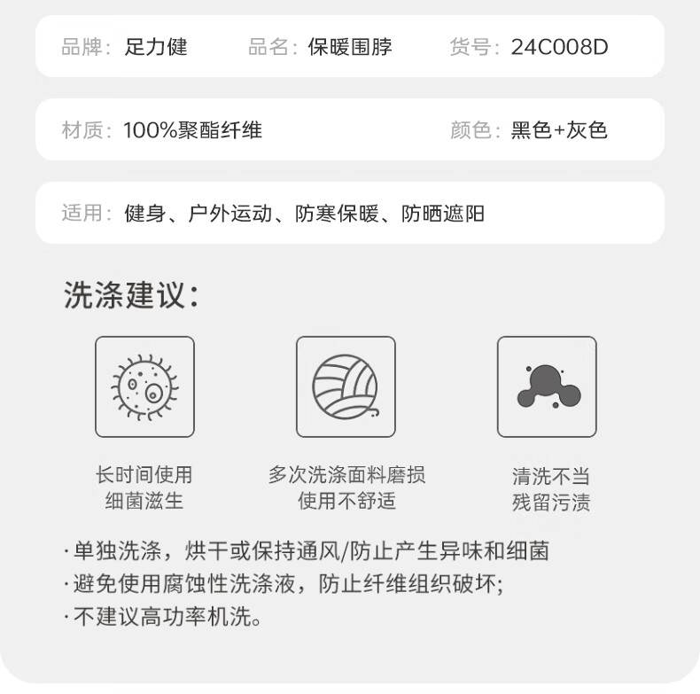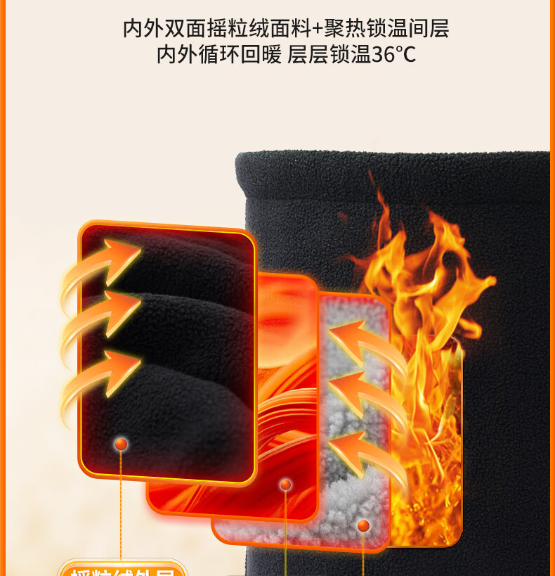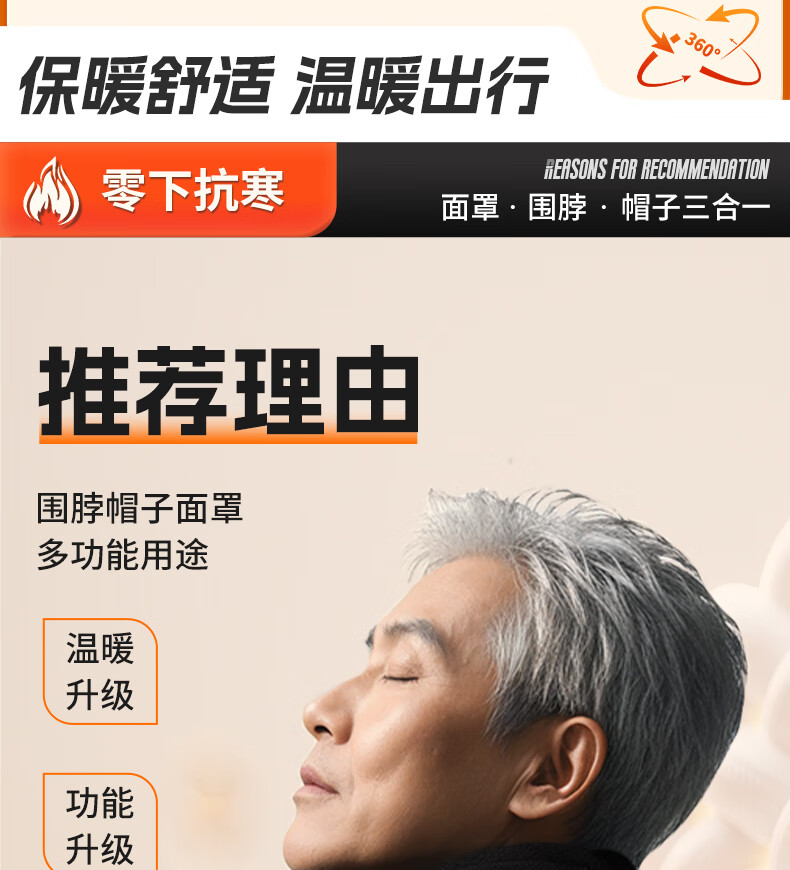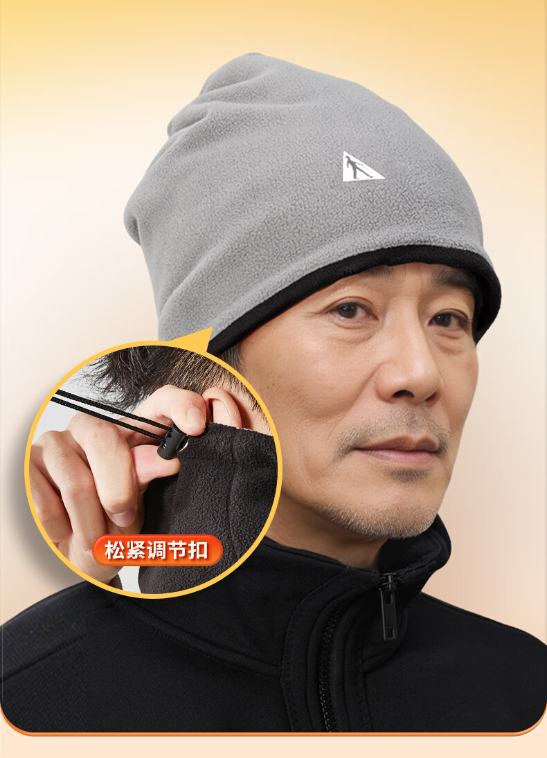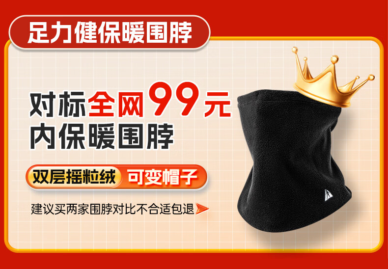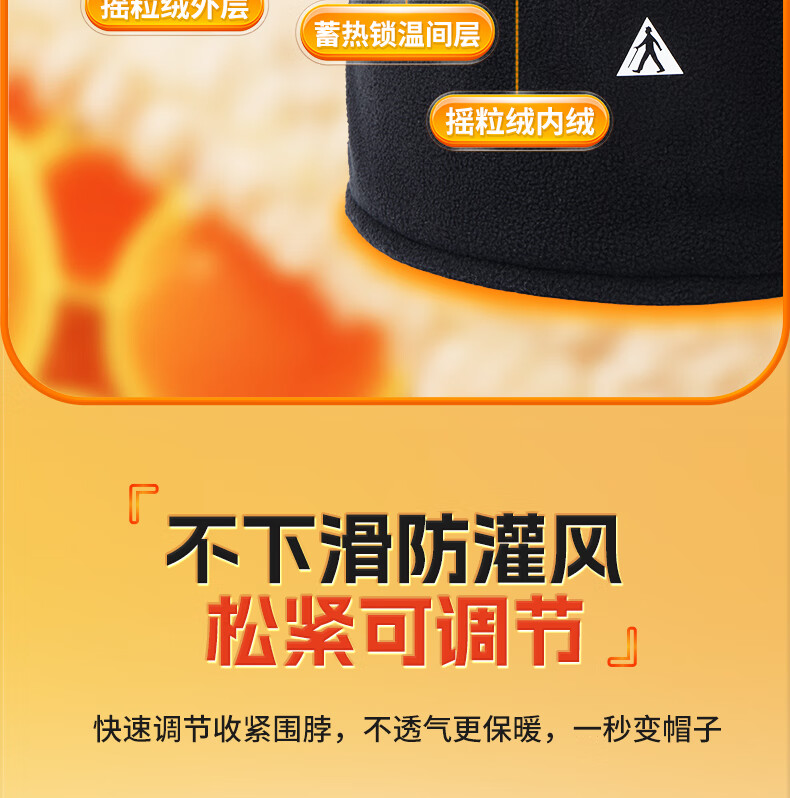 足力健围脖加绒男士秋冬保暖脖套中老年双面摇粒绒可变帽子面罩两用 黑灰【两面】 均码