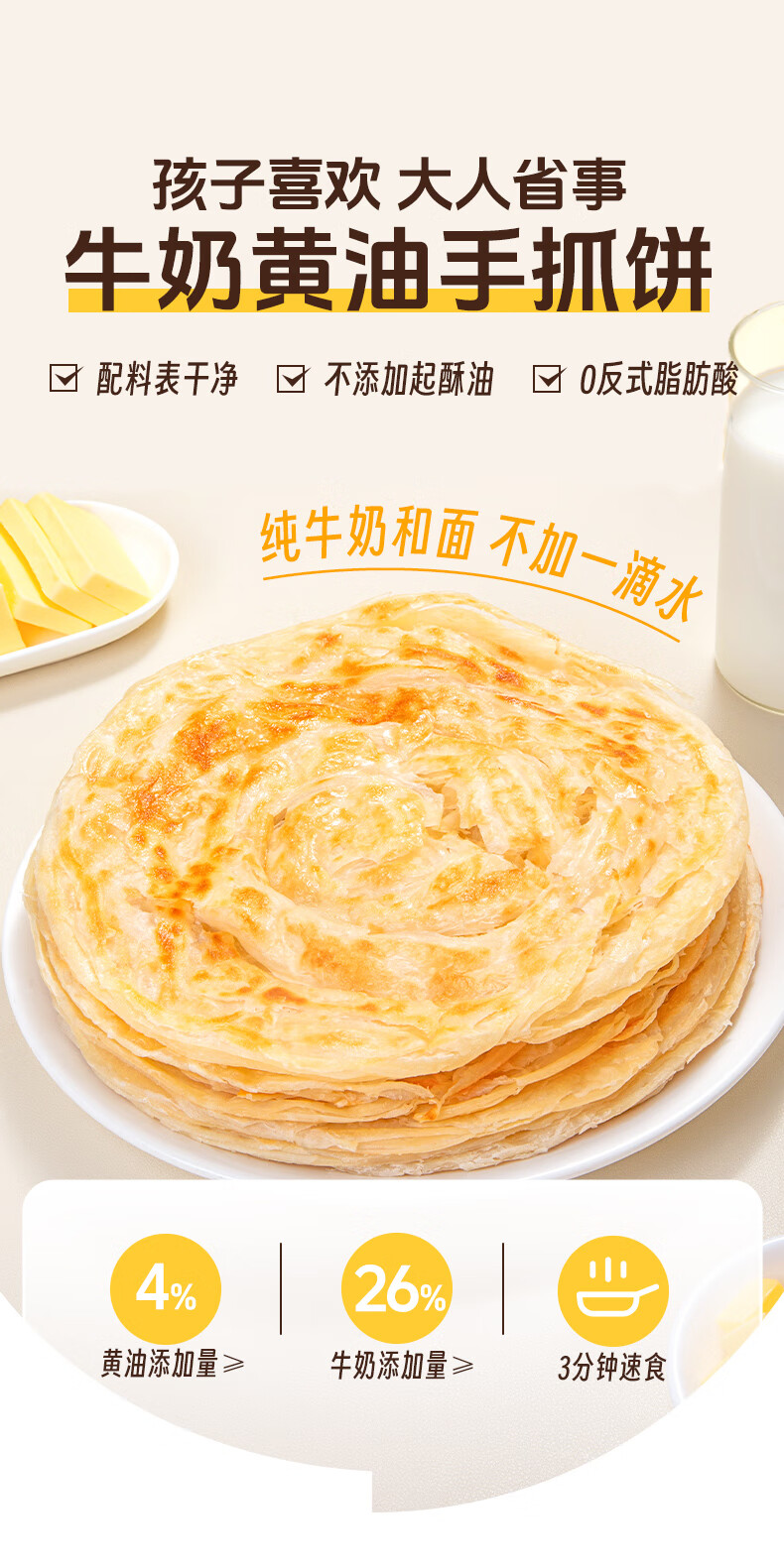 鹿有有牛奶黄油手抓饼500g*4袋(供20片)儿童健康早餐冷冻半成品速食