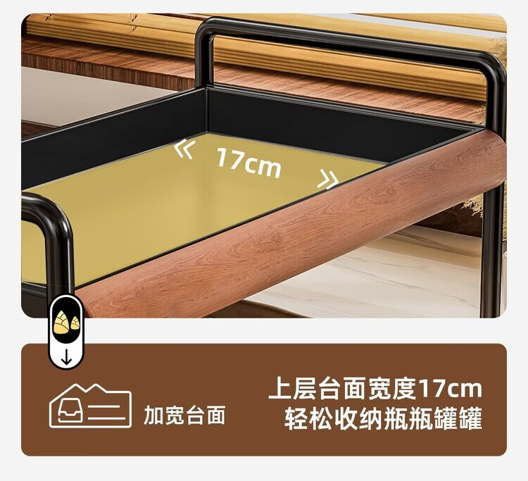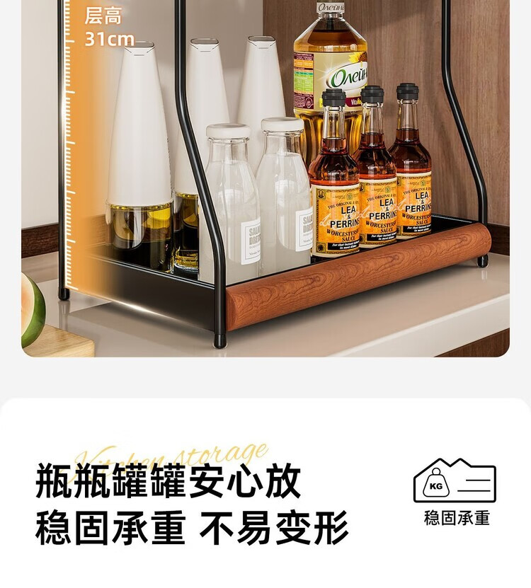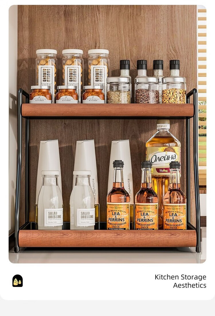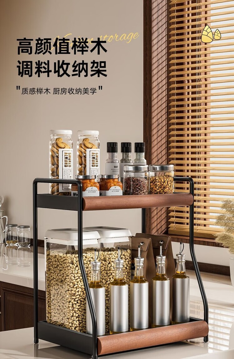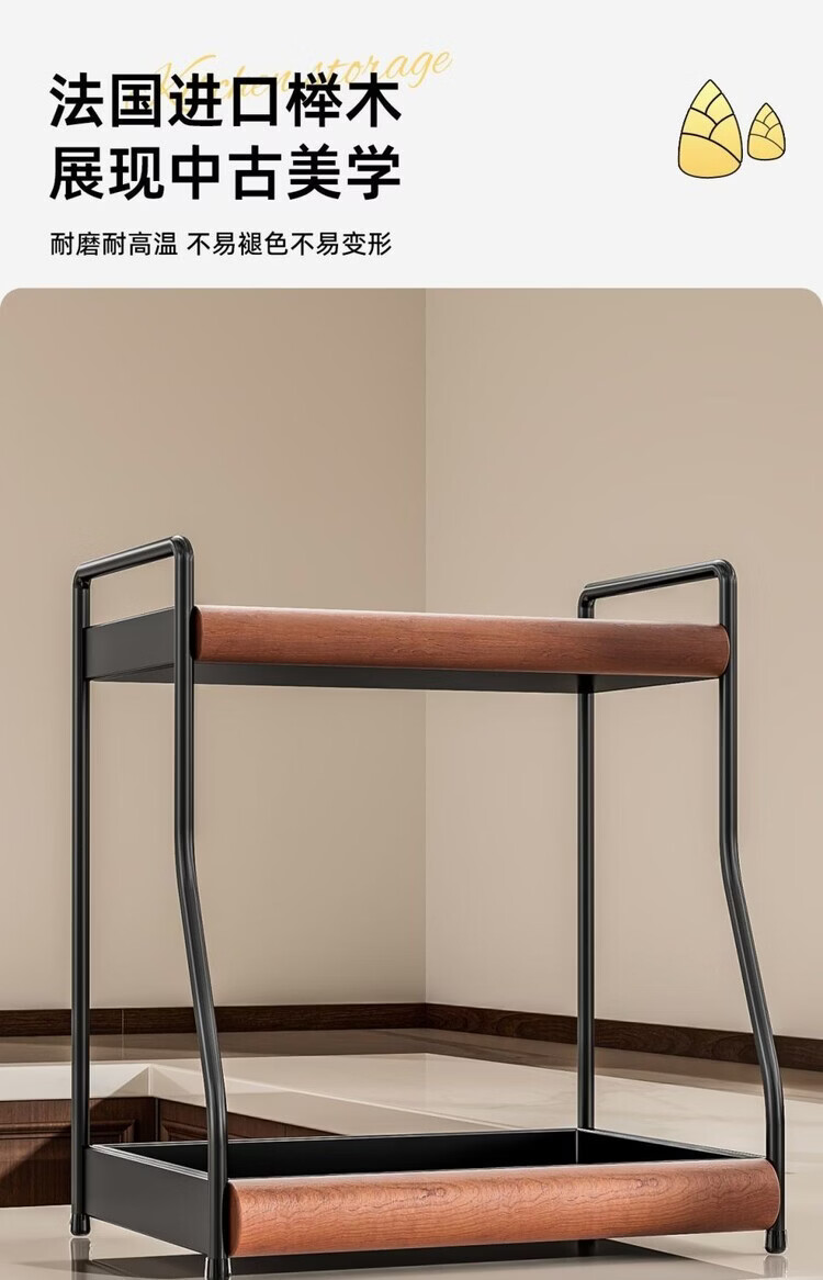 简漾中古风厨房调料品置物架家用台面双层多功能调味料油盐酱醋收纳架 中古风加厚碳钢进口榉木结合/高级有质感 32cm长