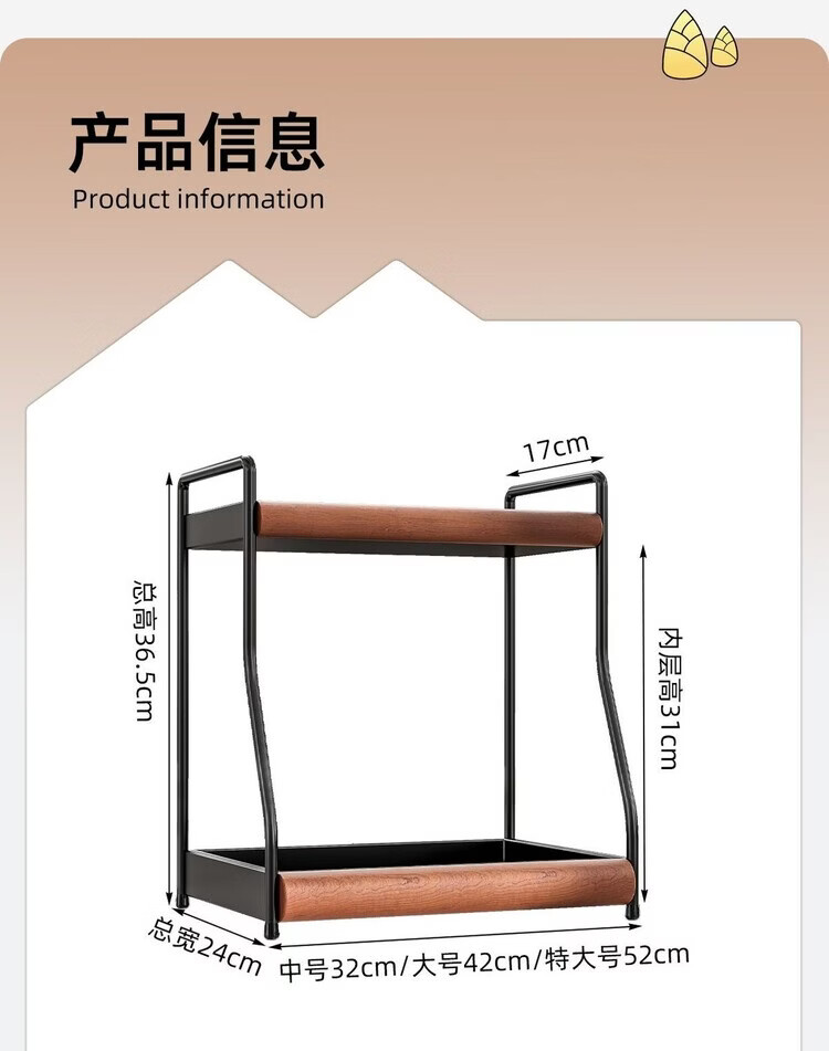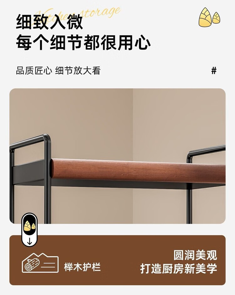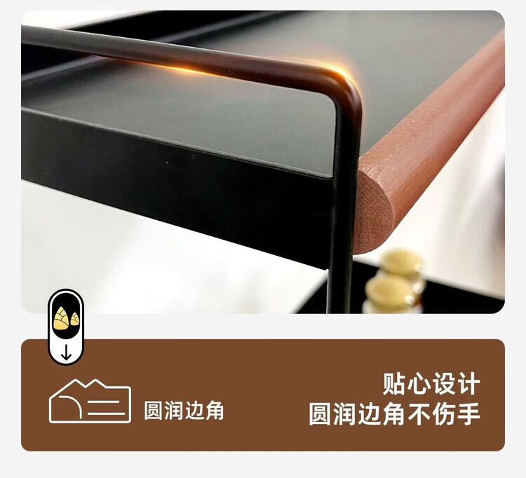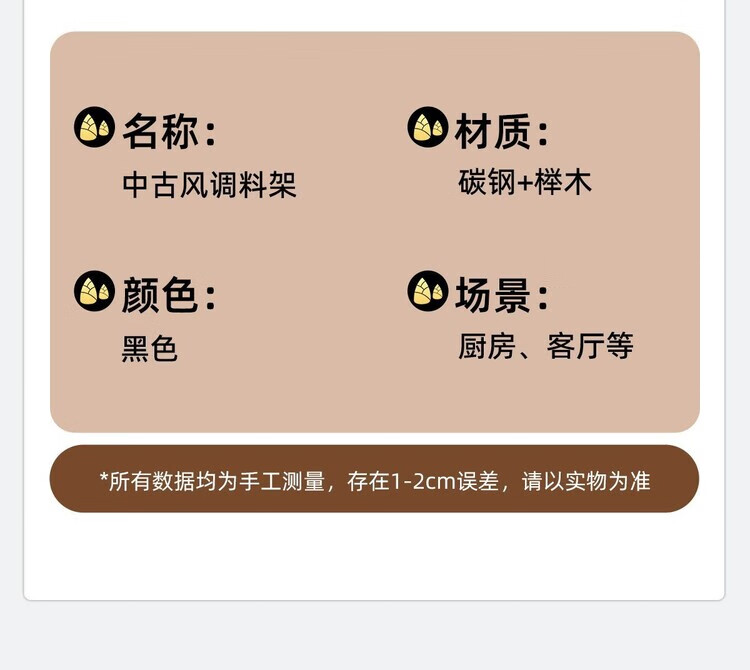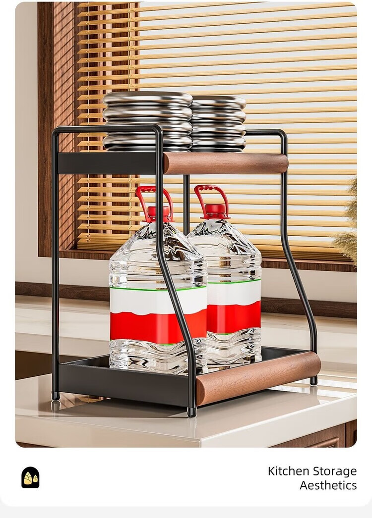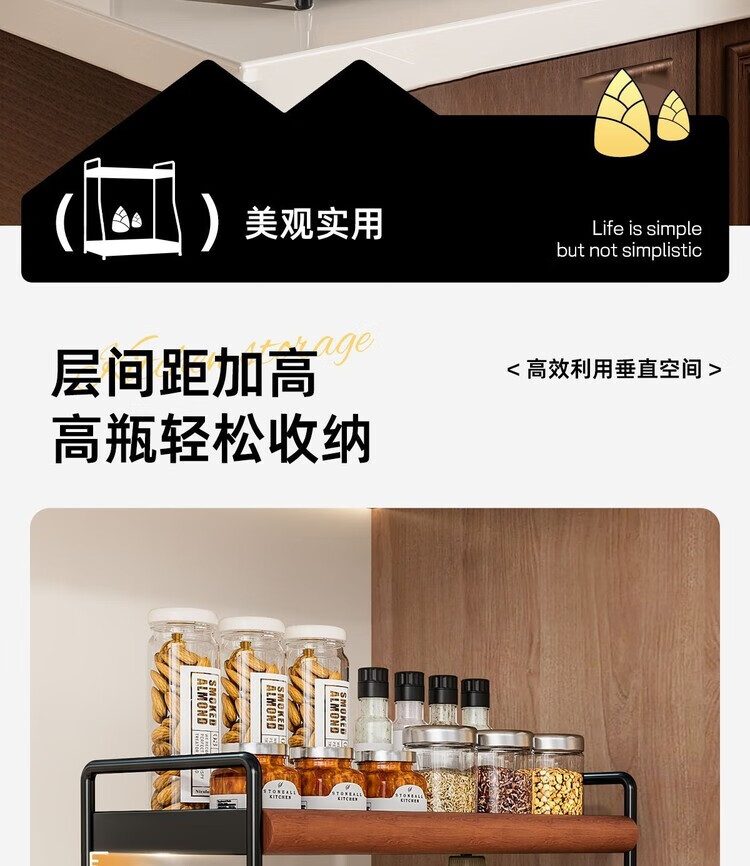 简漾中古风厨房调料品置物架家用台面双层多功能调味料油盐酱醋收纳架 中古风加厚碳钢进口榉木结合/高级有质感 32cm长