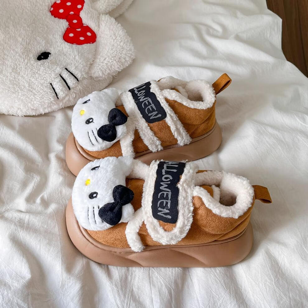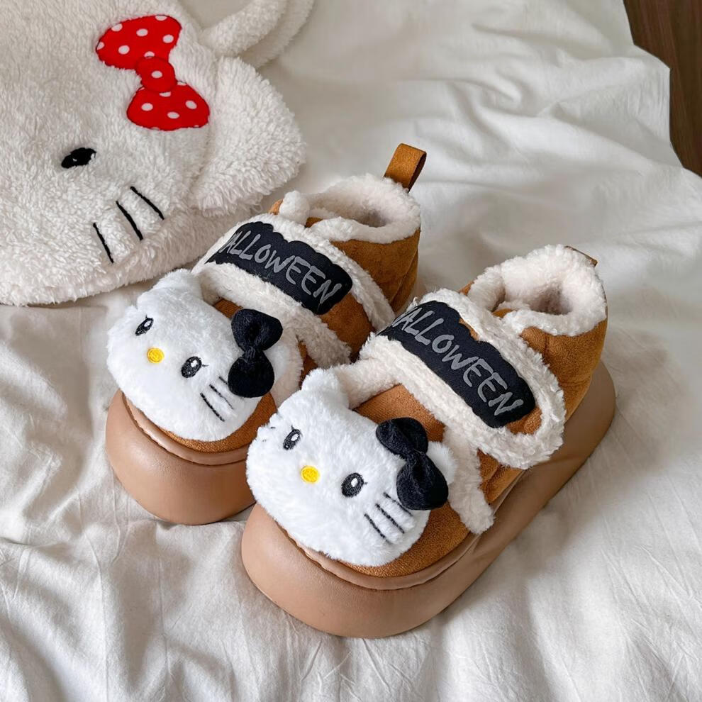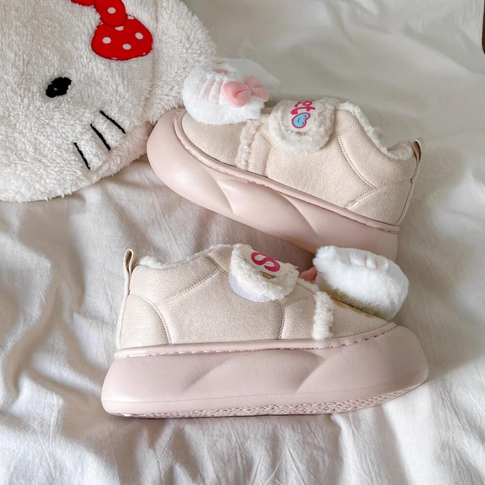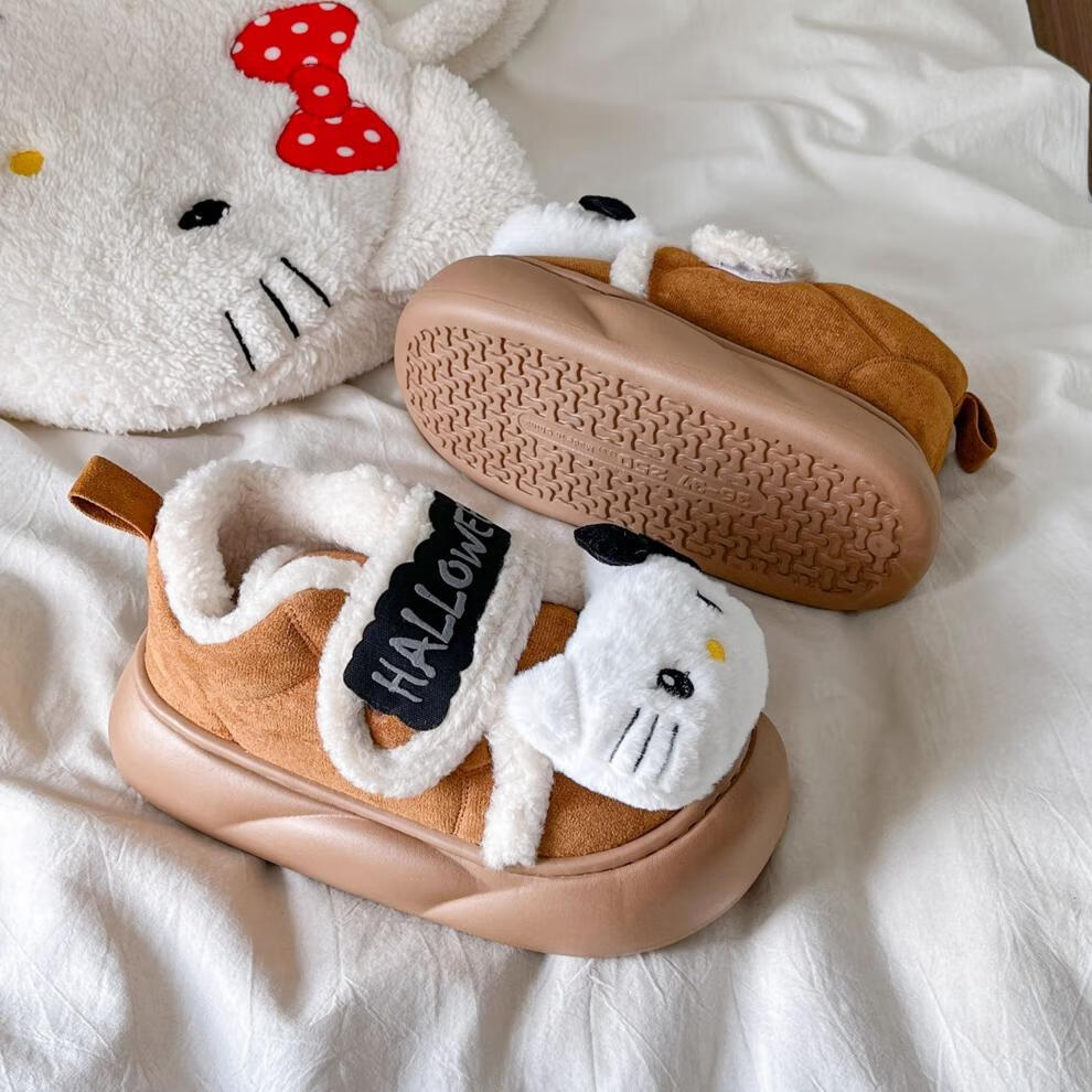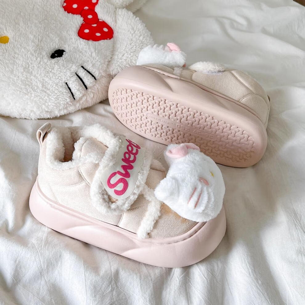 稻草人(MEXICAN)卡通可爱凯蒂猫保暖棉鞋女外穿2025新款秋冬厚底面包鞋毛毛雪地靴 粉色【升级版】更保暖更舒适 38 -39