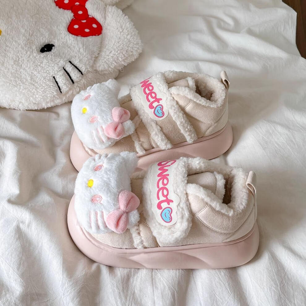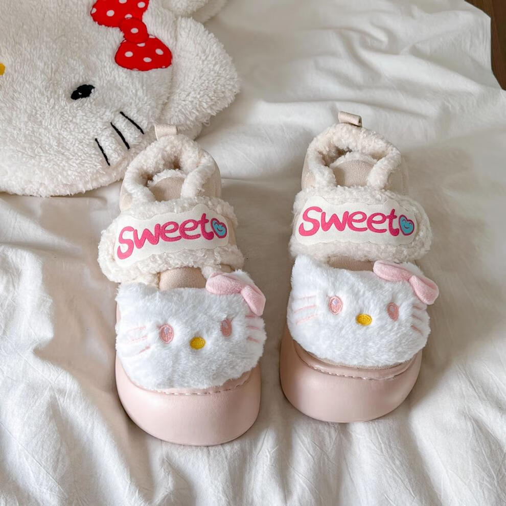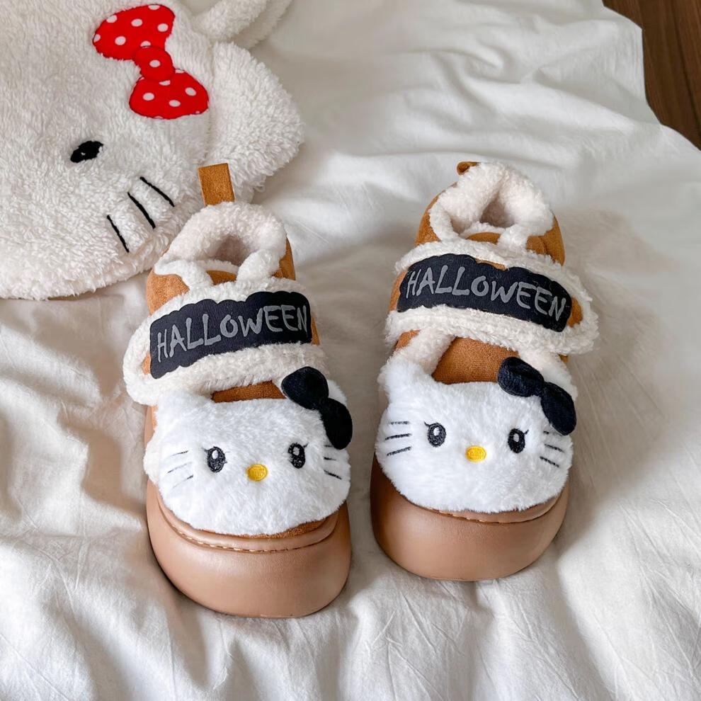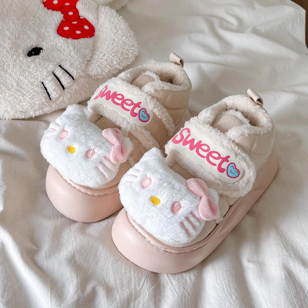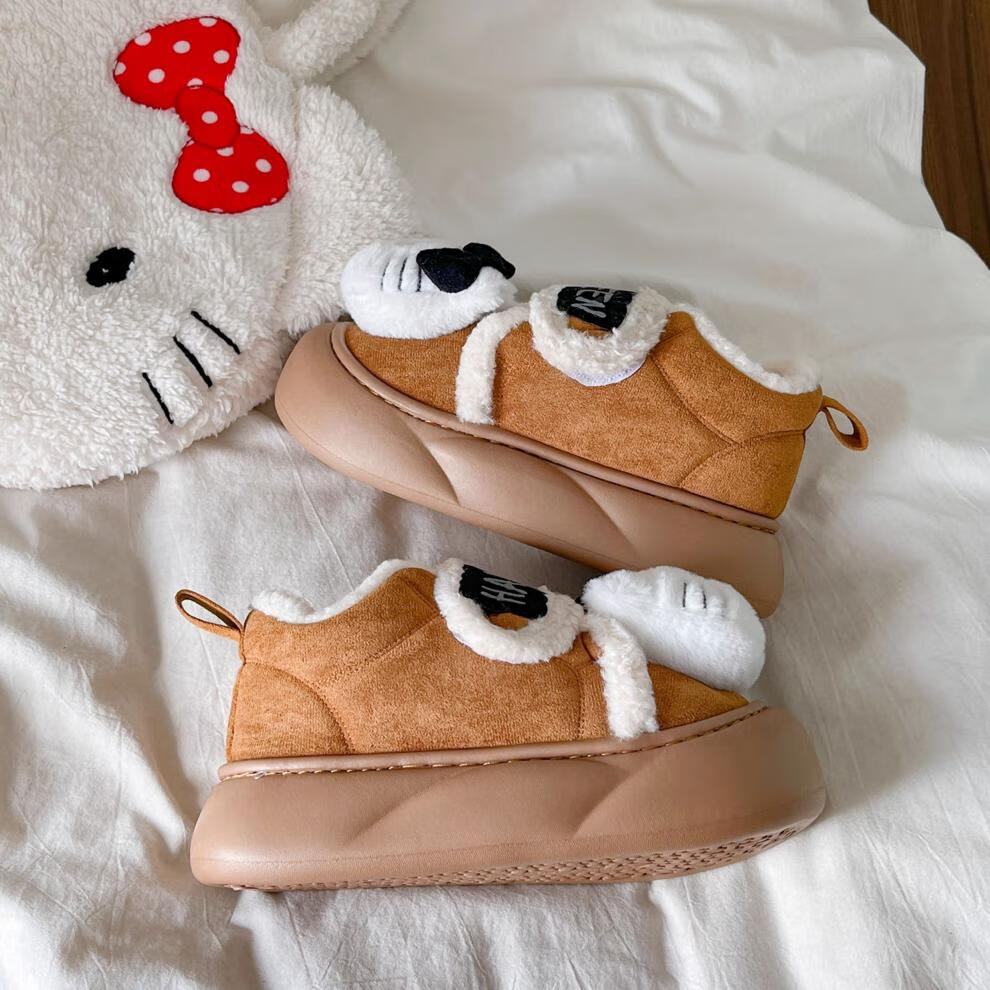 稻草人(MEXICAN)卡通可爱凯蒂猫保暖棉鞋女外穿2025新款秋冬厚底面包鞋毛毛雪地靴 粉色【升级版】更保暖更舒适 38 -39