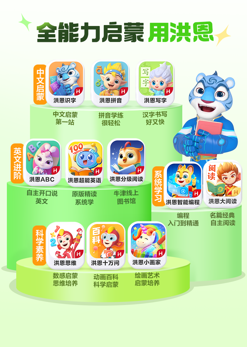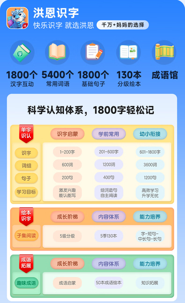 洪恩识字 早教启蒙第一套认知绘本 识字子集成语拼音数学英语启蒙