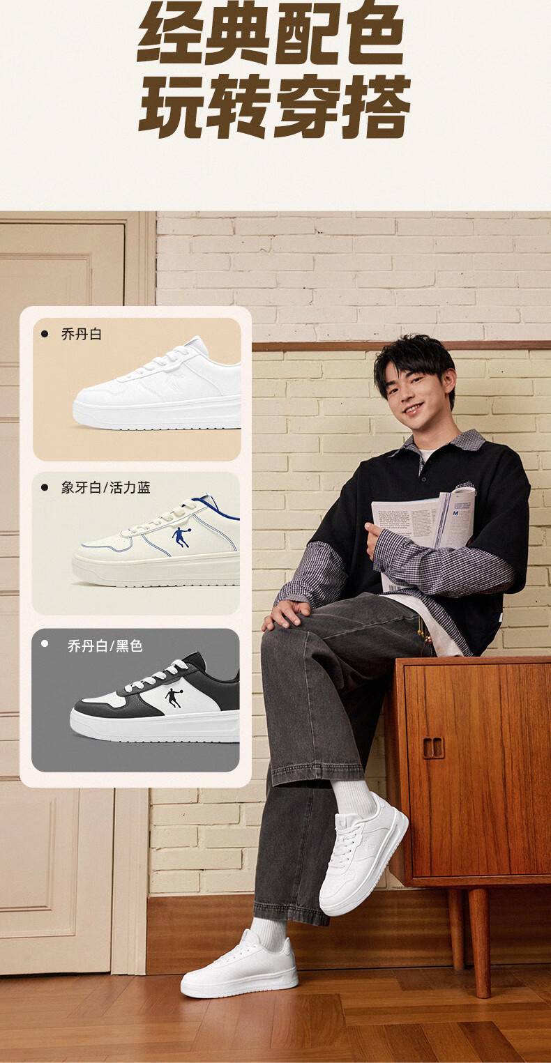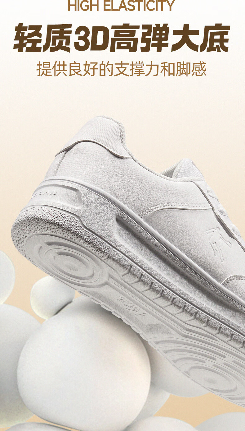乔丹小白龙男鞋板鞋小白鞋男皮革面厚底增高休闲鞋子男款运动鞋