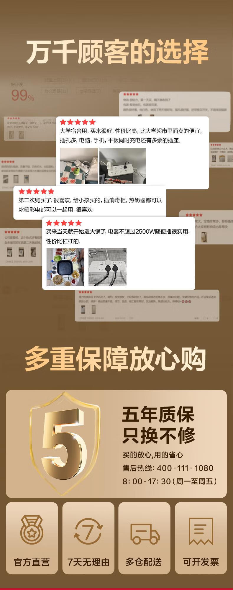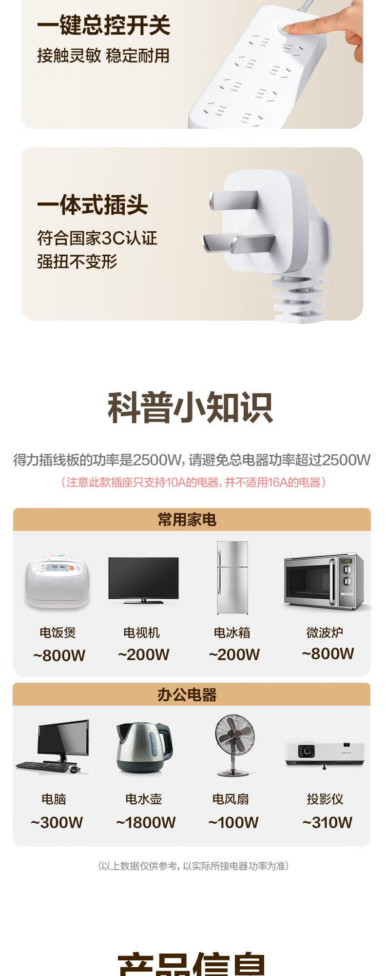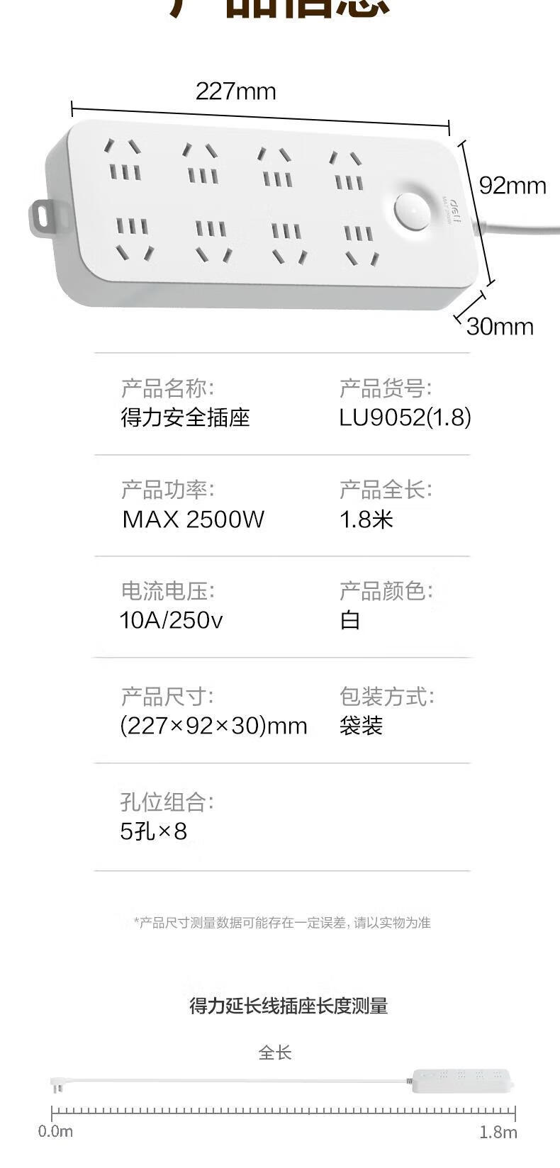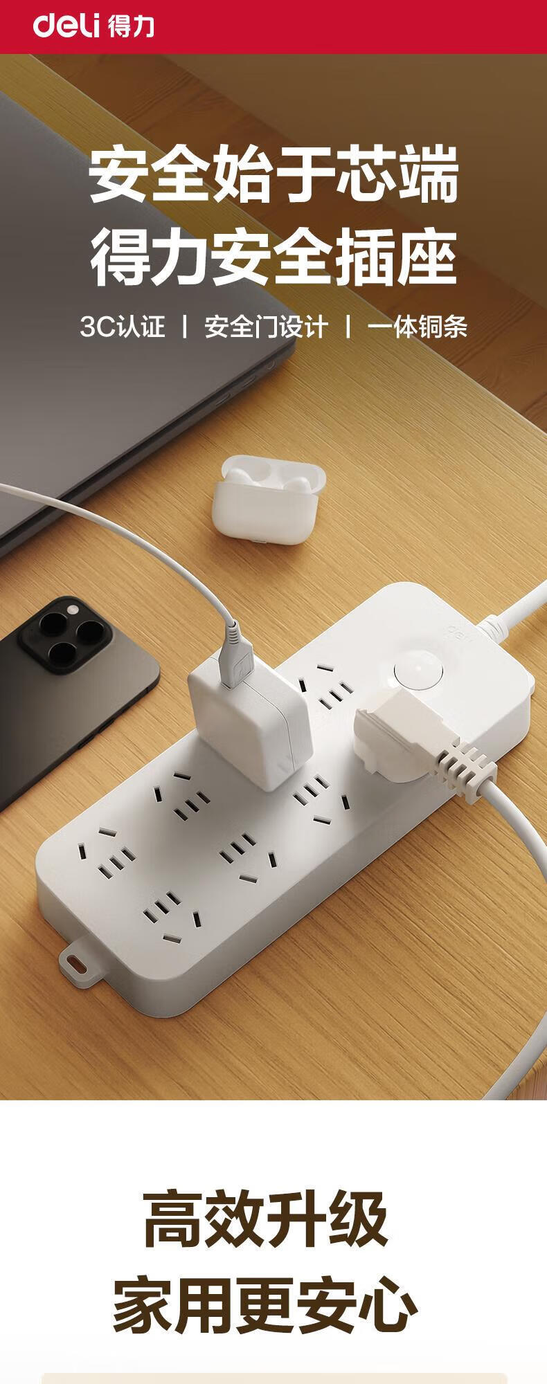 得力(deli)【5年质保/国标3C认证/儿童保护门/阻燃外壳】插排 电源 插座 插线板 排插 插板 拖线板 接线板 【4位5孔/全长1.8米】33919插排