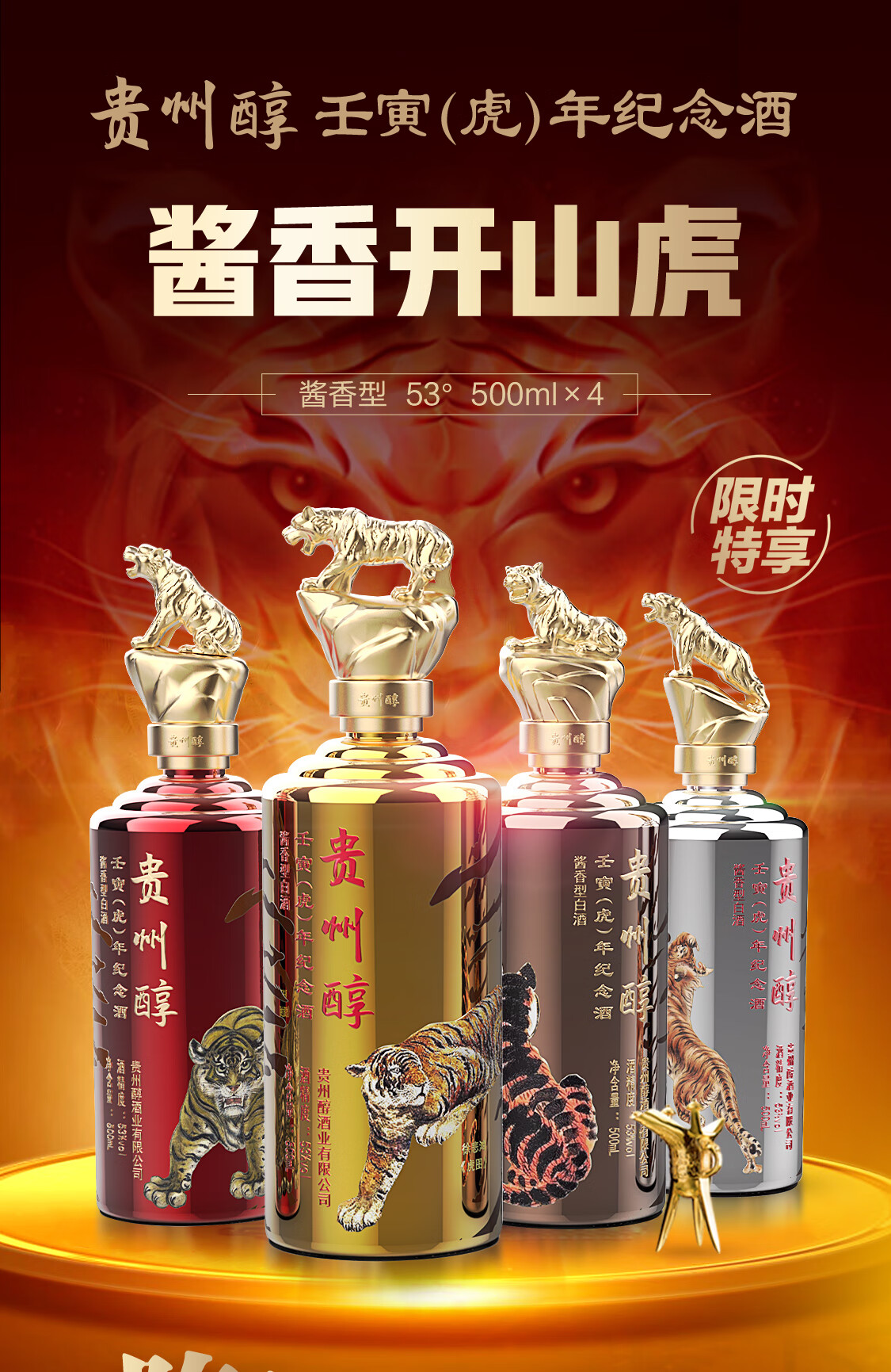 贵州醇贵州醇酱酒(壬寅虎年纪念酒) 500ml*4 四瓶装 53度 500mL 4瓶 1箱4瓶