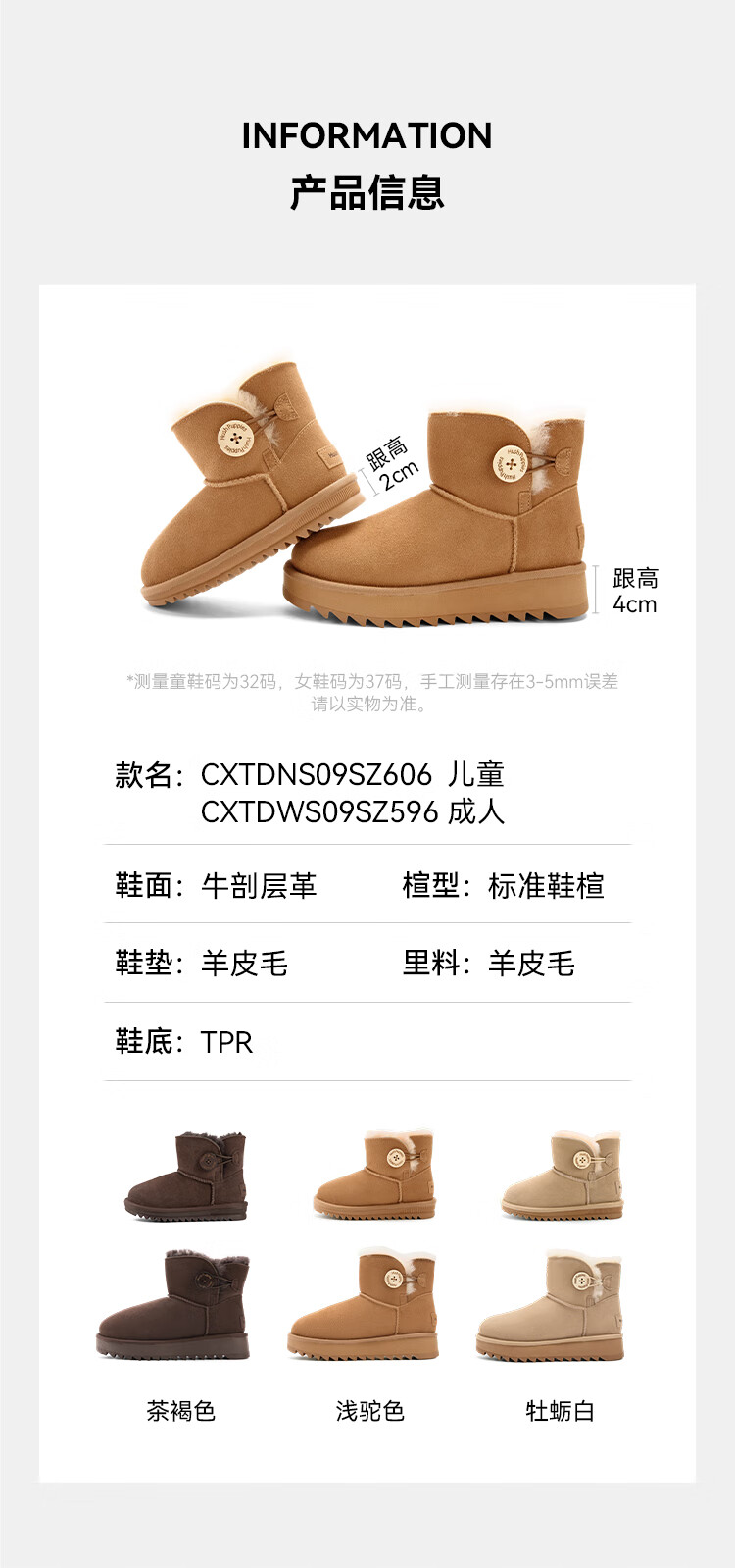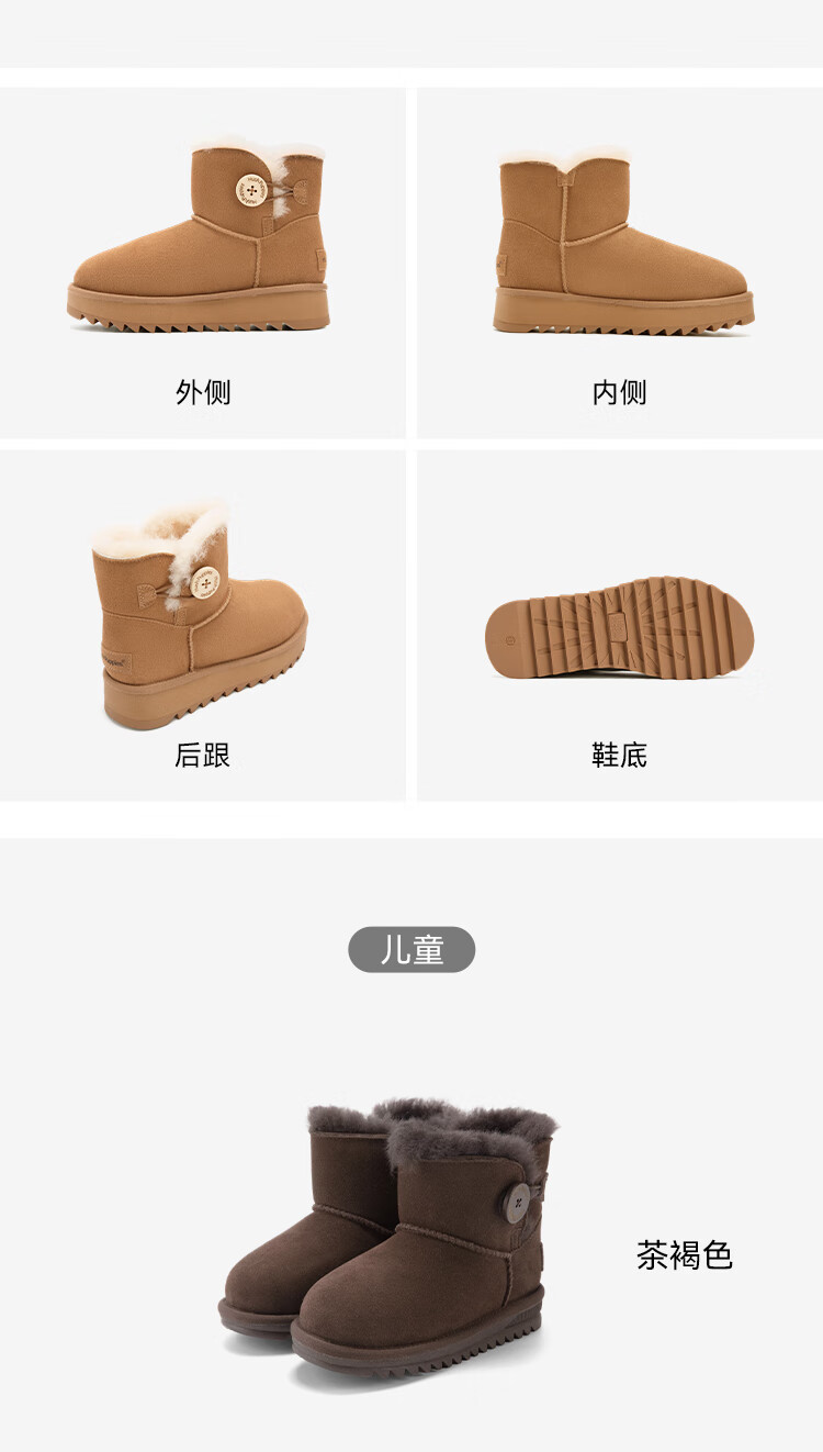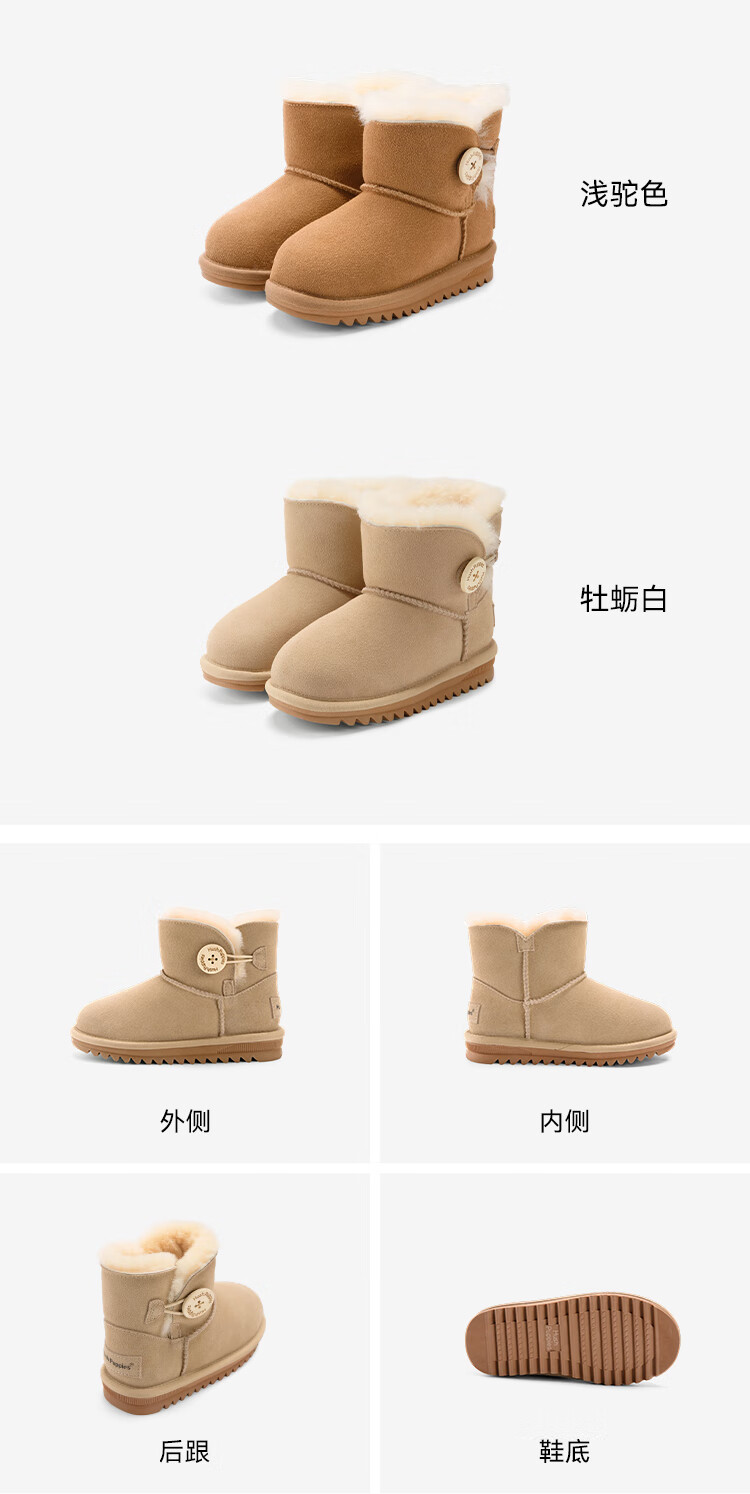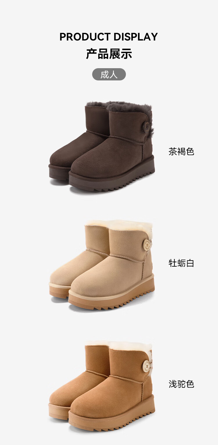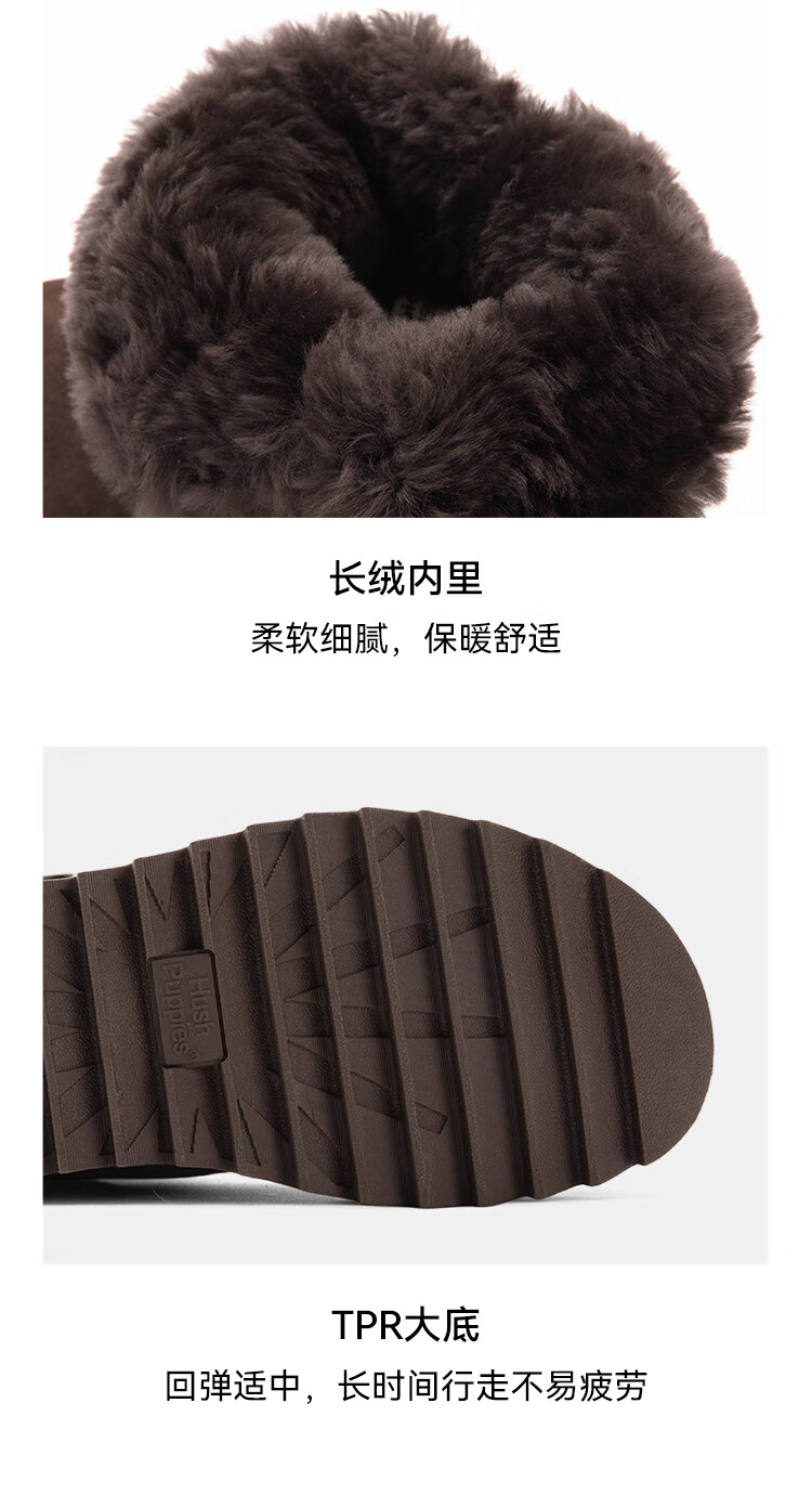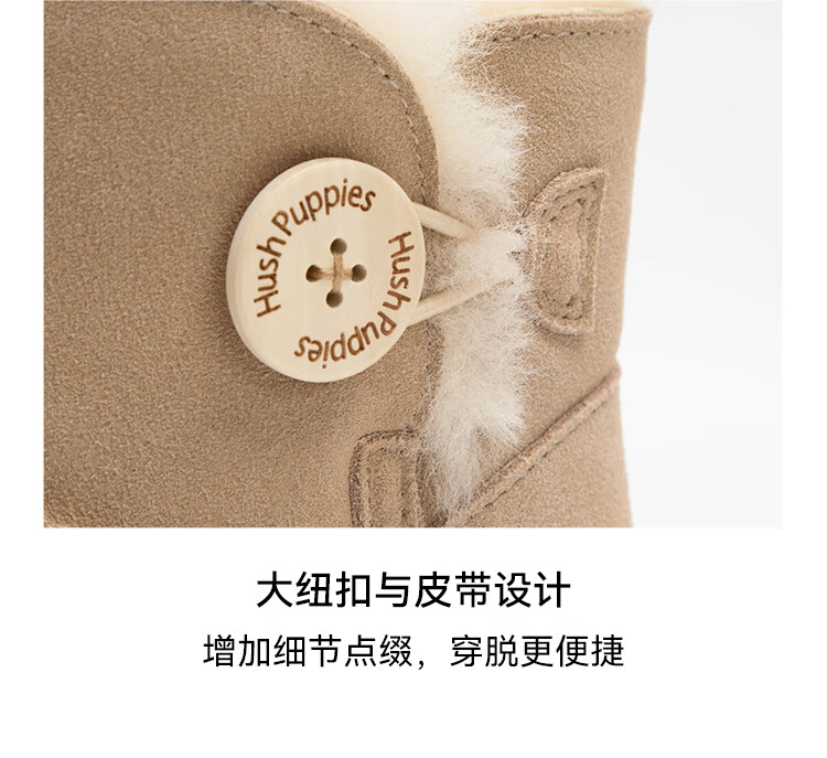 暇步士(Hush Puppies)【亲子款】2025冬季新款厚底雪地靴毛绒保暖低筒靴加绒加厚棉鞋 浅驼色(成人款) 38