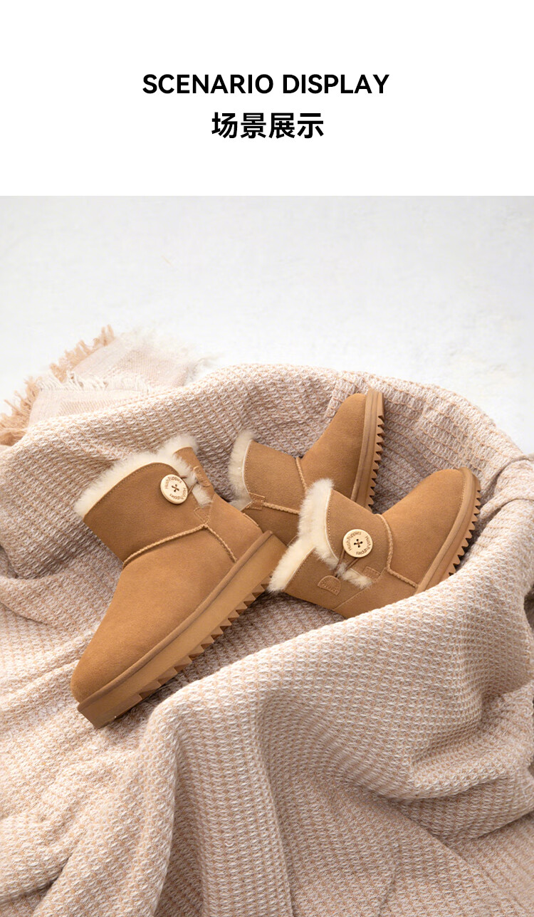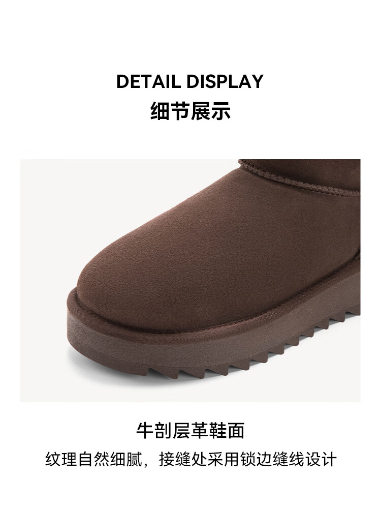 达芙妮真皮雪地靴女鞋冬季2025新款加厚加绒鞋厚底短靴保暖棉鞋女 驼色 38