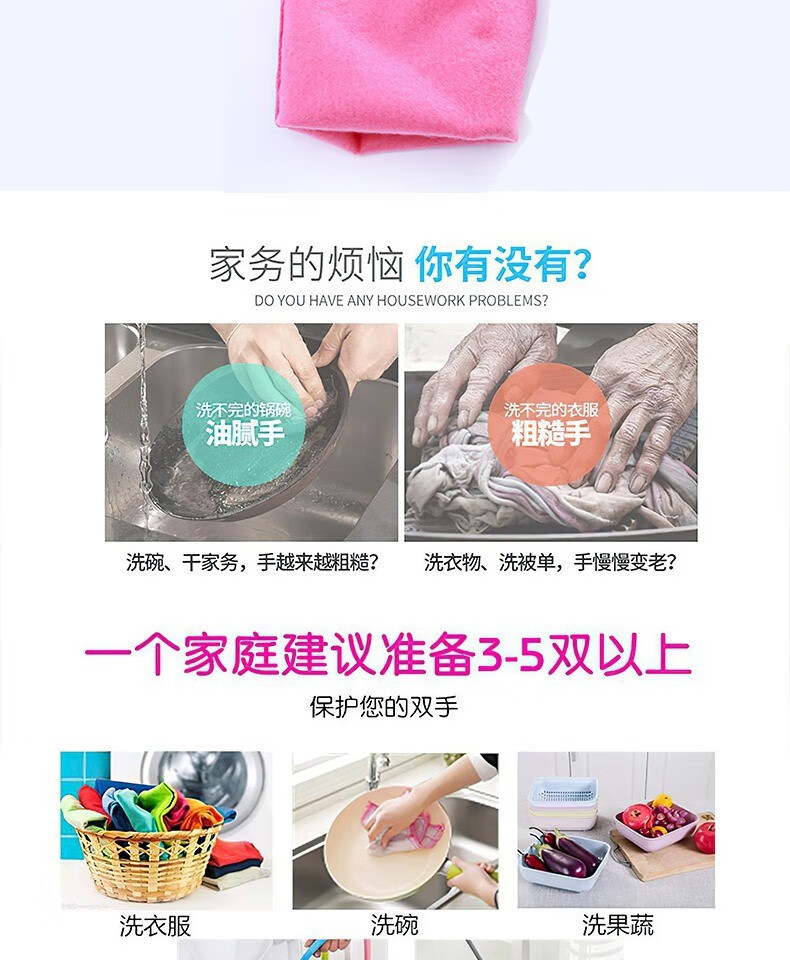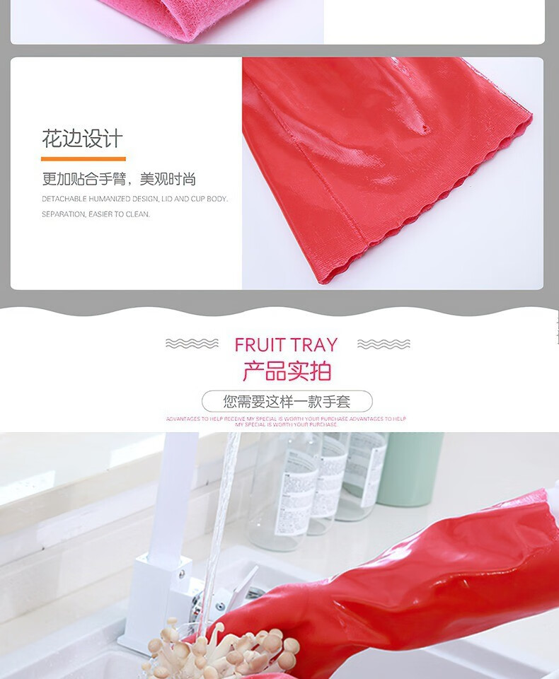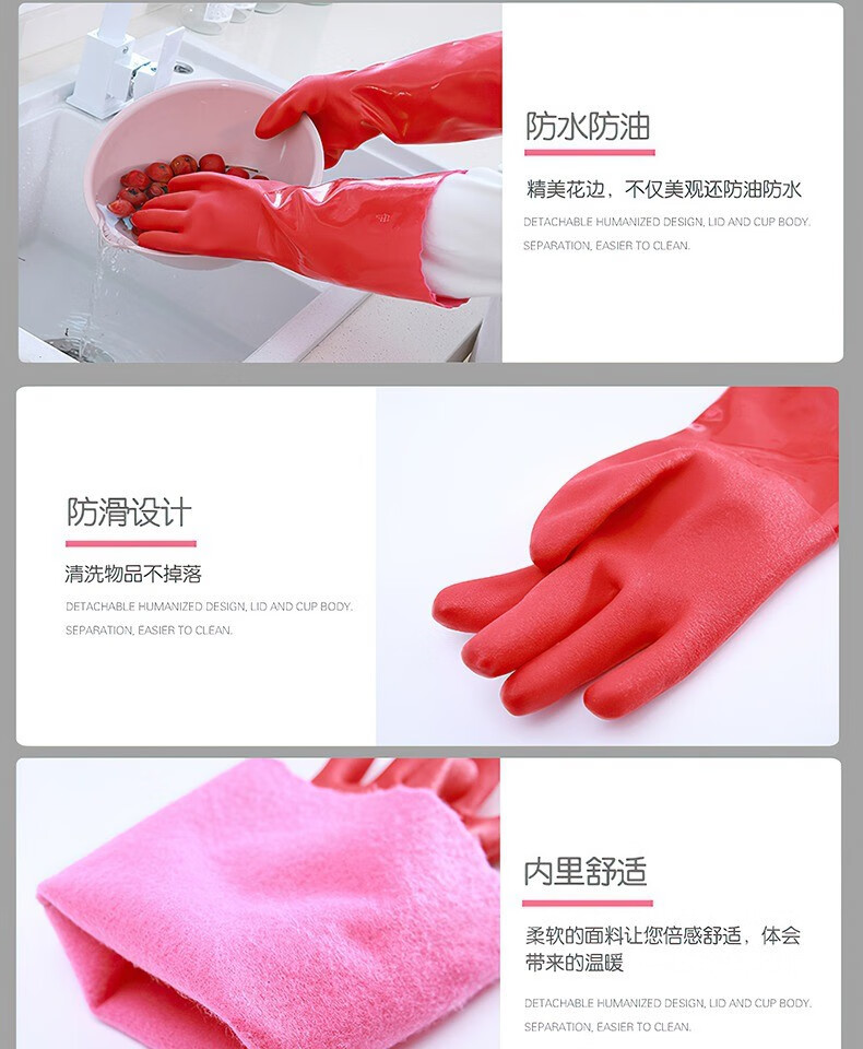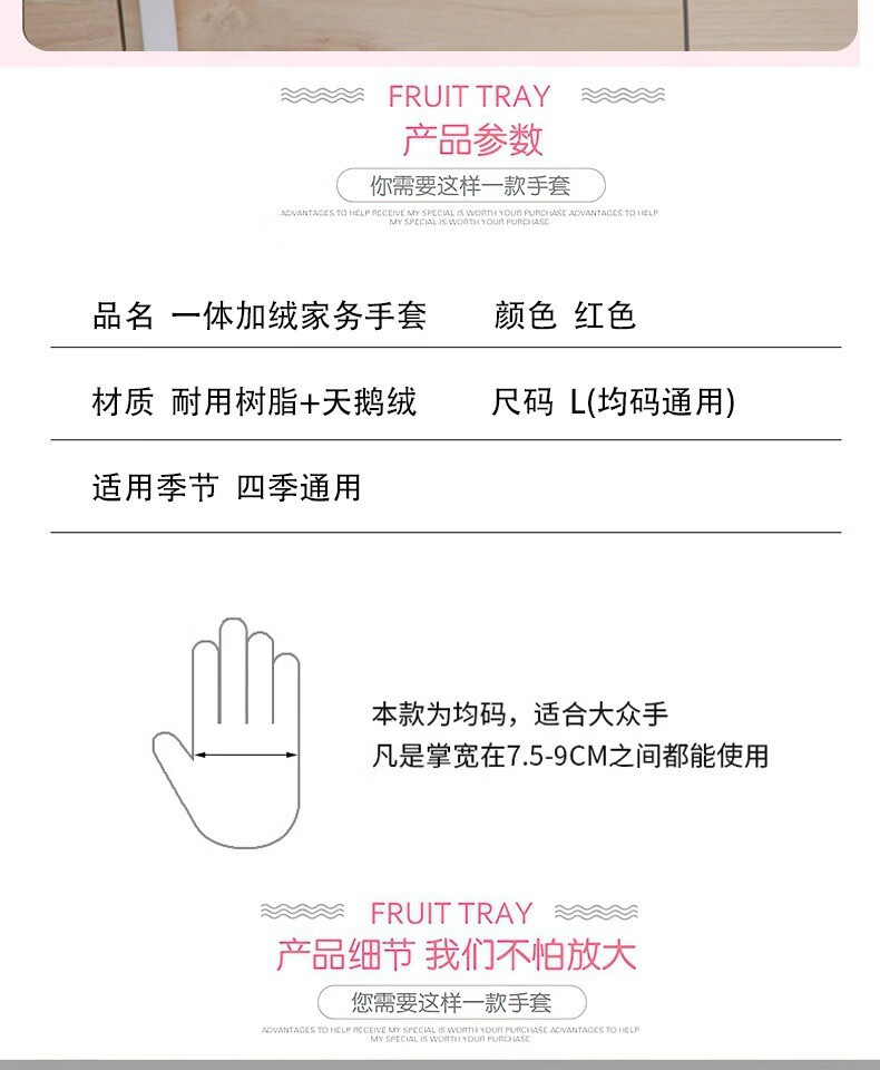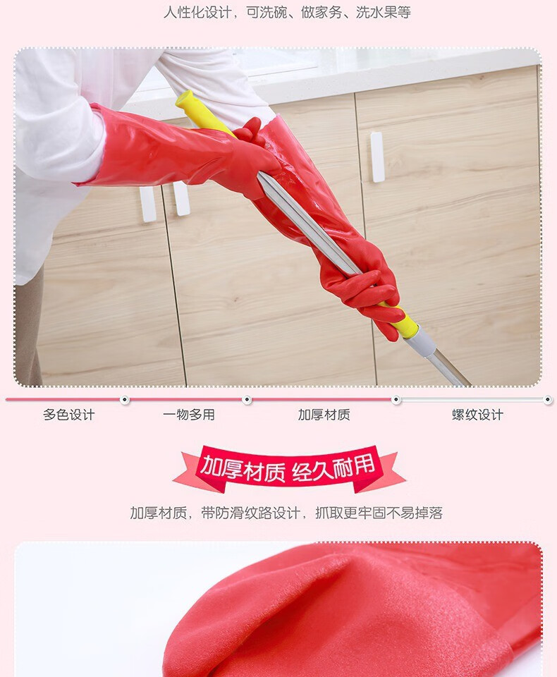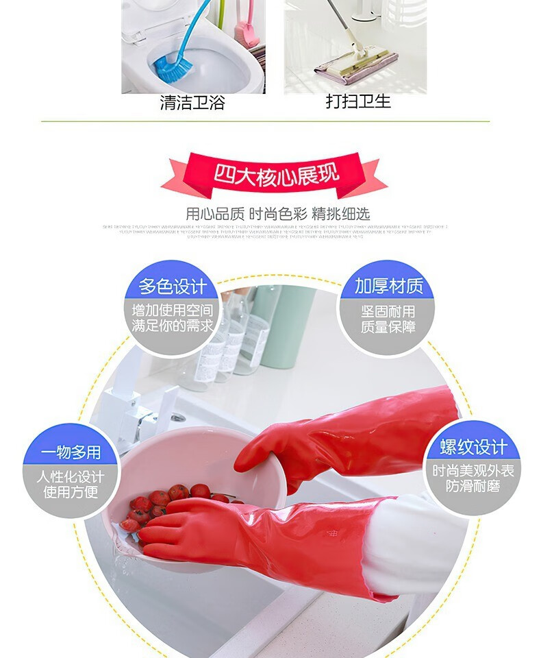 欧格达冬季加绒加长厨房清洁家务保暖手套洗碗防水劳保橡胶皮加棉手套女 红色35CM(两双装)