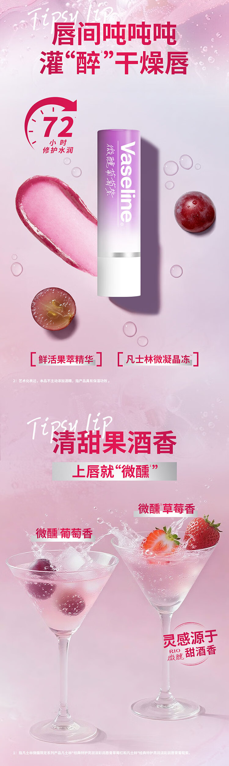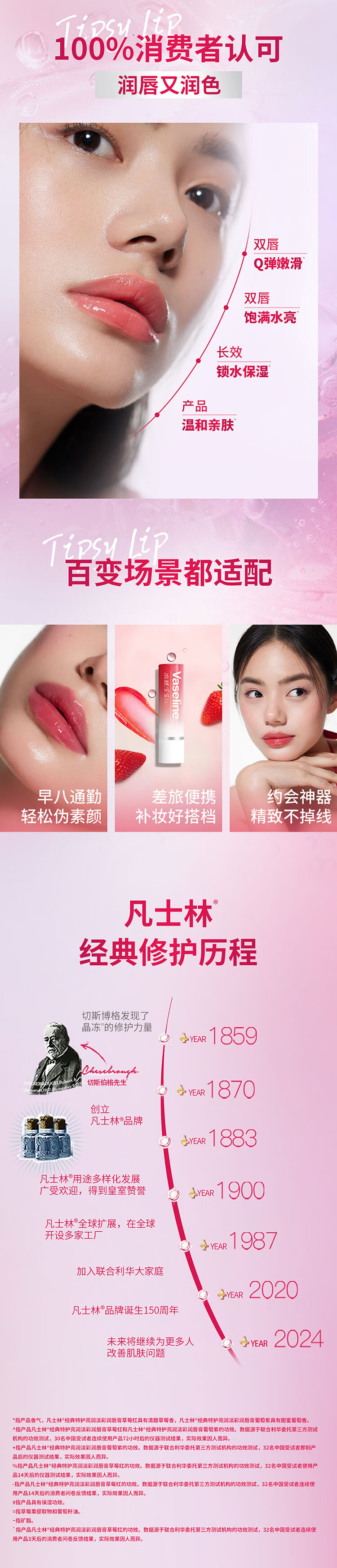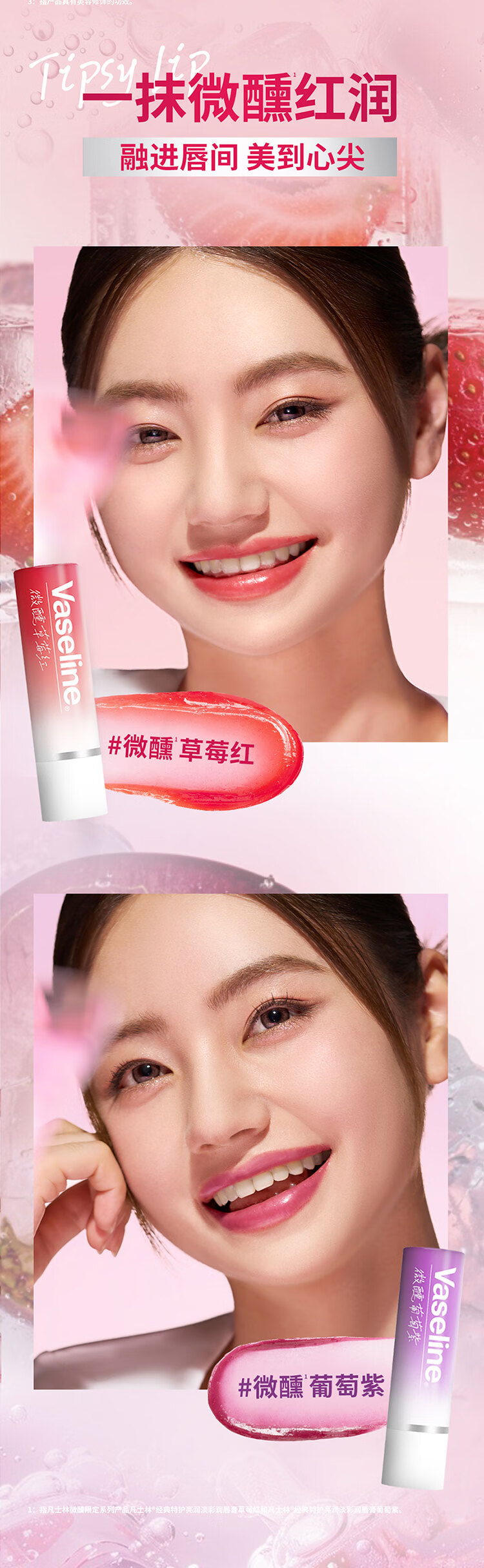 凡士林【RIO联名】微醺润唇膏特护亮润淡彩唇膏草莓红3.5g变色唇膏礼物