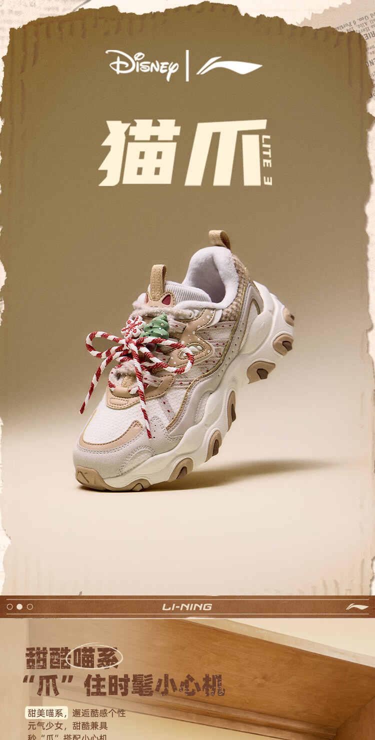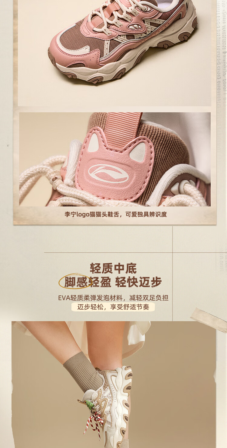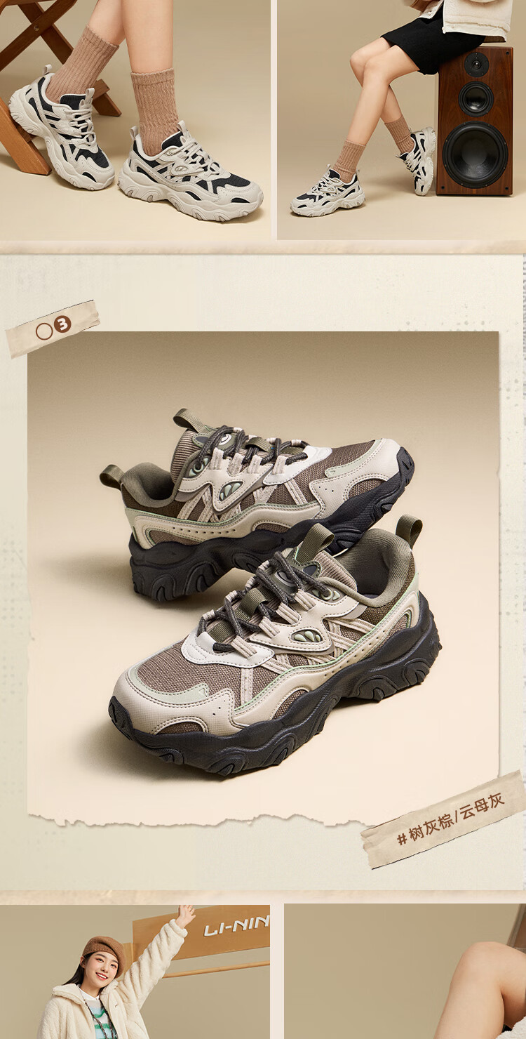 李宁猫爪LITE 3丨老爹鞋女鞋2025秋冬新款经典潮流休闲运动鞋AGCV390