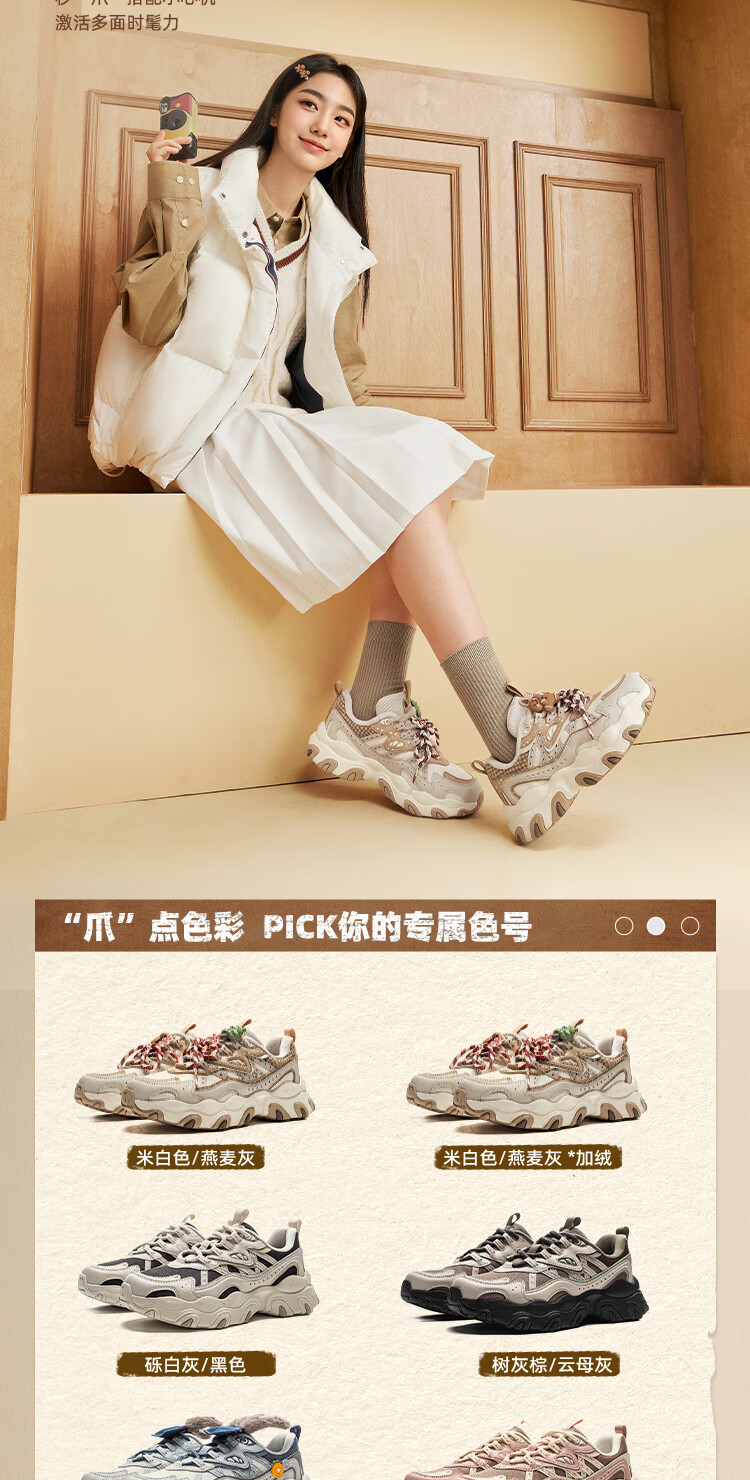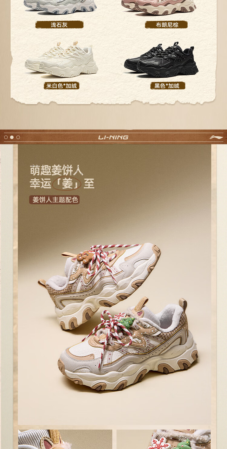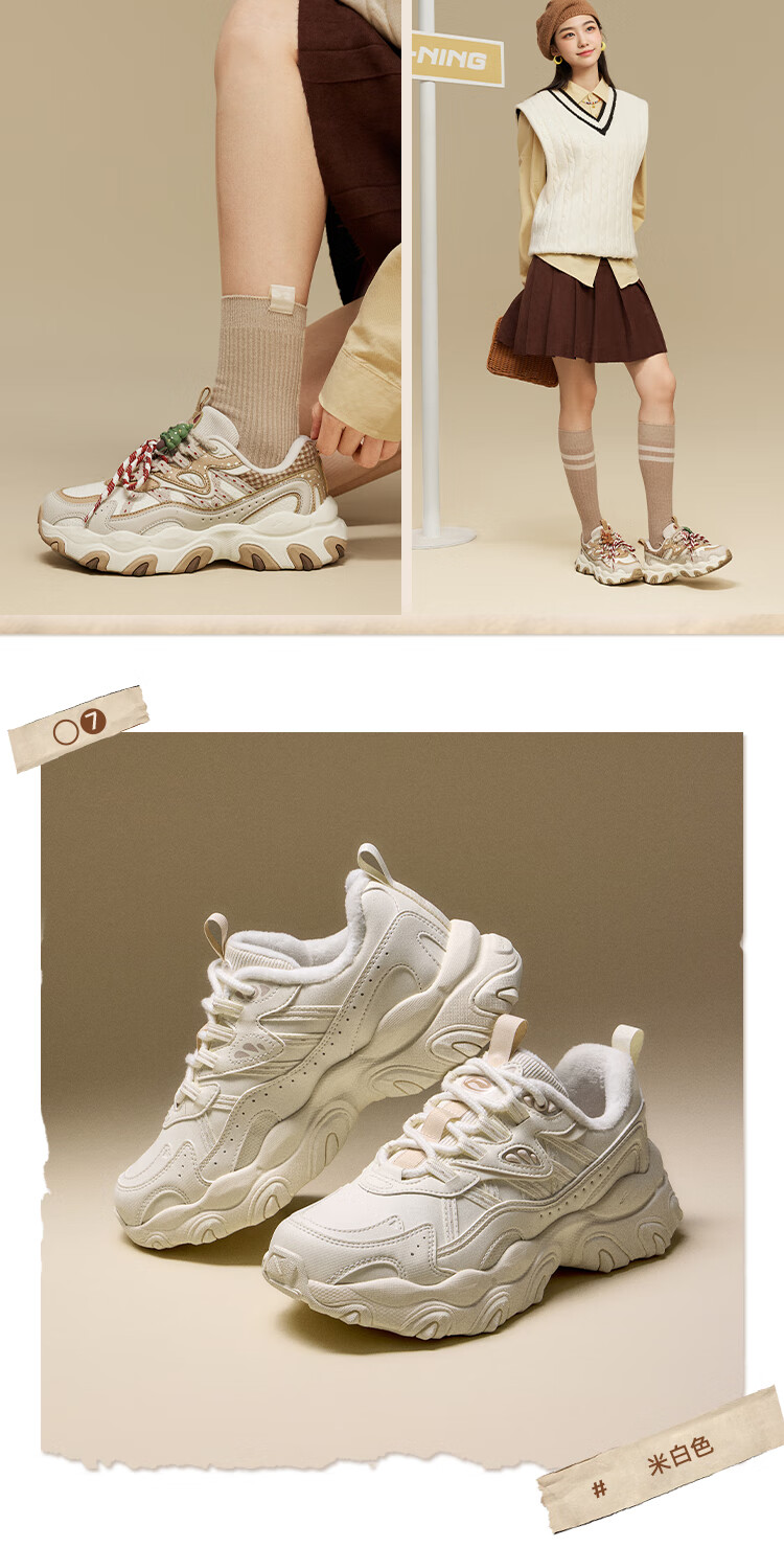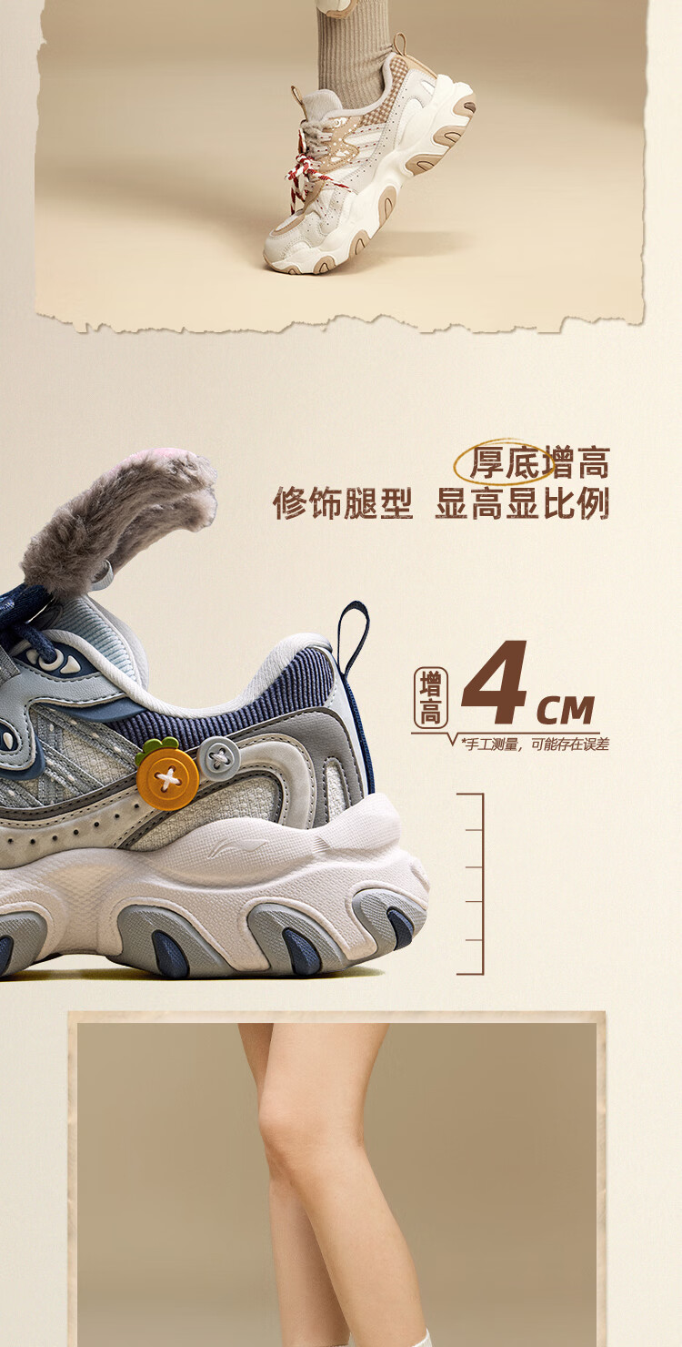 李宁猫爪LITE 3丨老爹鞋女鞋2025秋冬新款经典潮流休闲运动鞋AGCV390