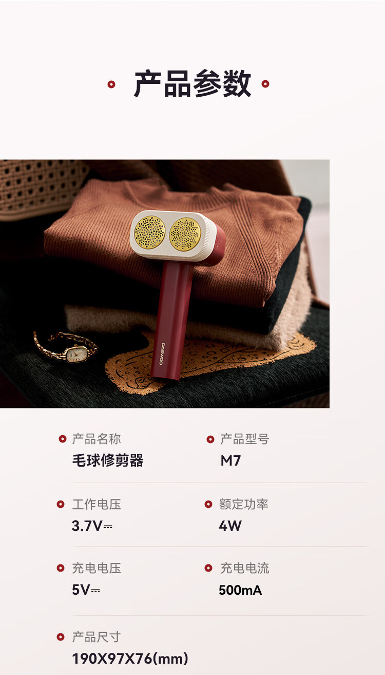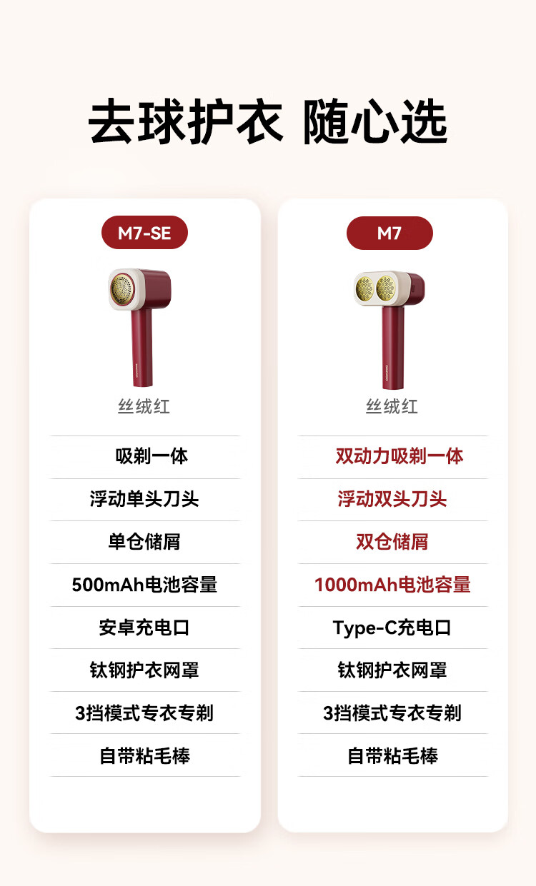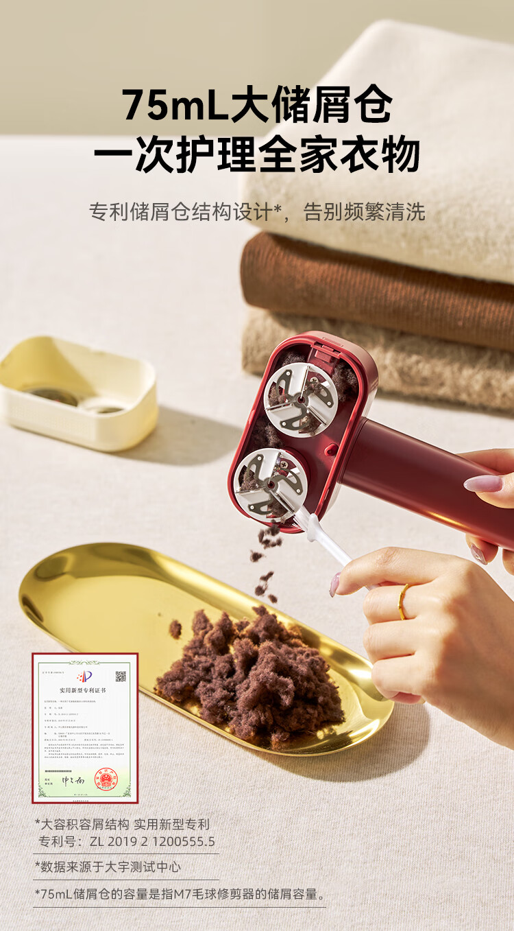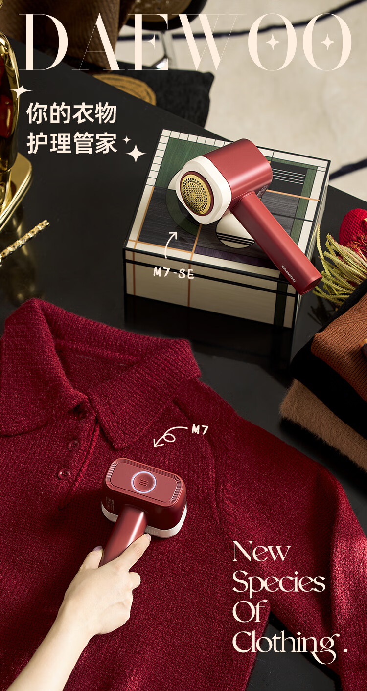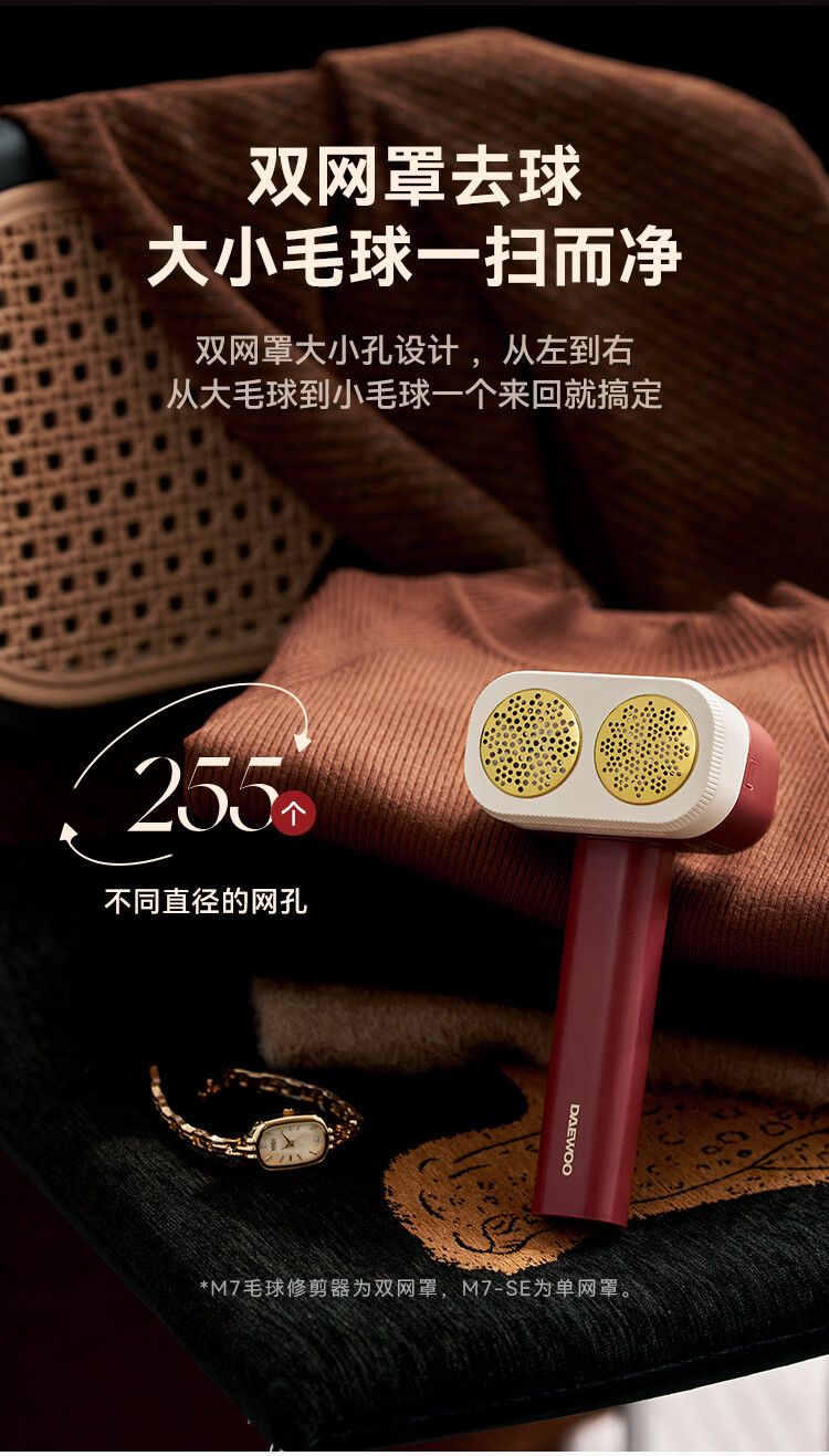大宇(DAEWOO)毛球修剪器家用剃毛器衣服除毛球神器剃毛球粘毛球机双核双头大容量去毛球器吸毛剪毛器M7 【双网孔双刀头】丝绒红 2刀头