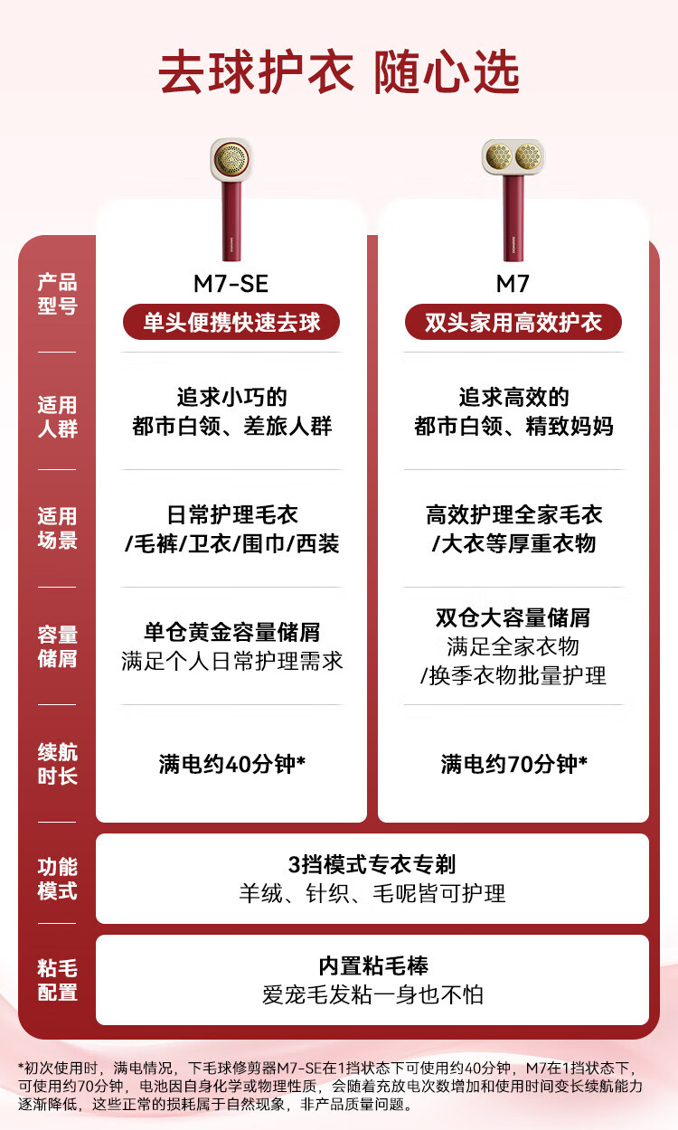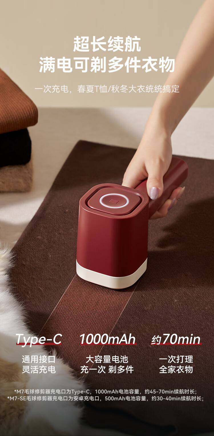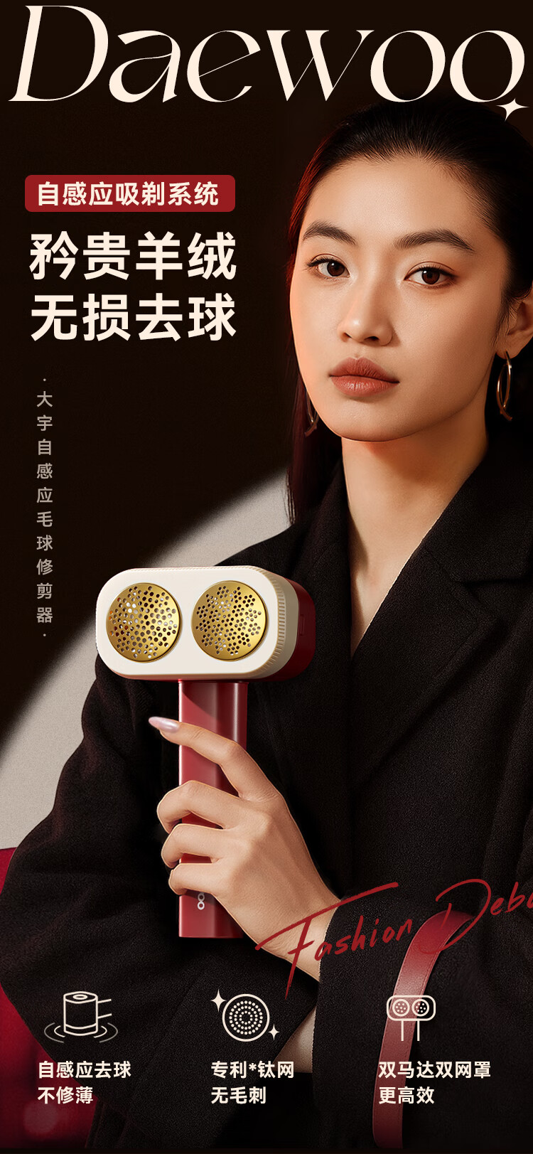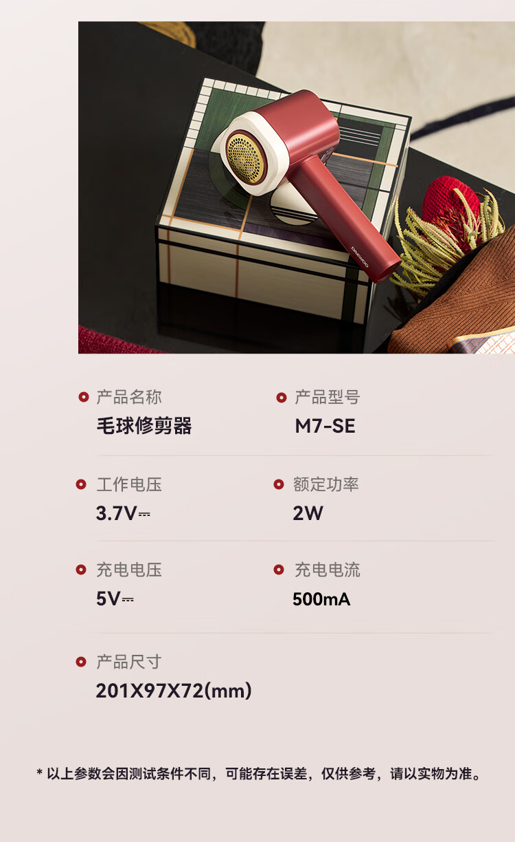 大宇(DAEWOO)毛球修剪器家用剃毛器衣服除毛球神器剃毛球粘毛球机双核双头大容量去毛球器吸毛剪毛器M7 【双网孔双刀头】丝绒红 2刀头
