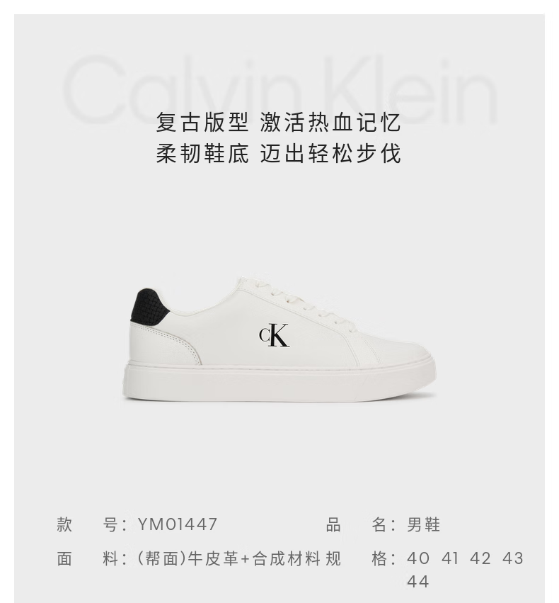 Calvin KleinJeans【圣诞礼物】25秋冬男士复古潮流ck字母休闲运动小白鞋板鞋 01W-白色/黑色 41