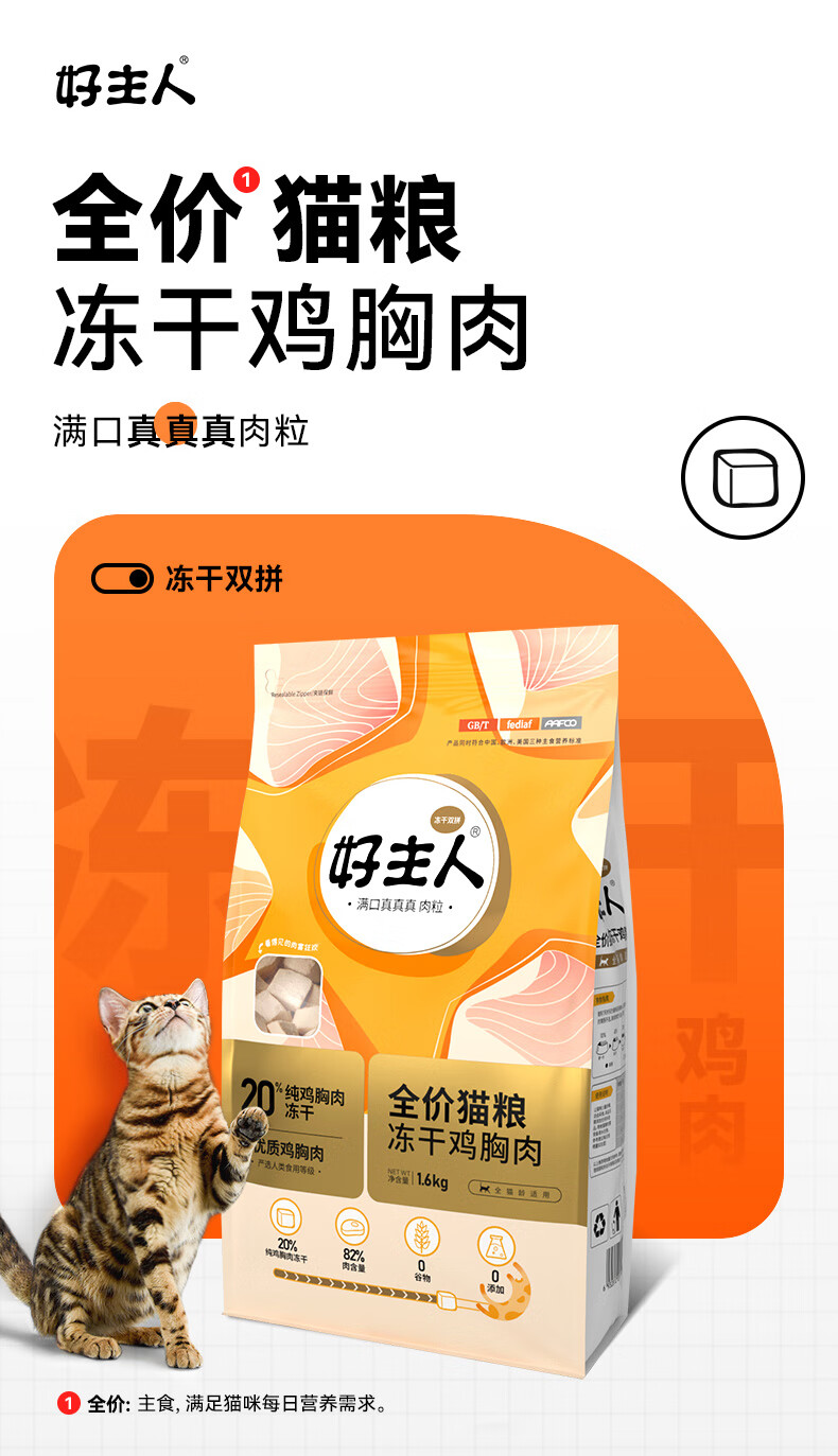 好主人金装好主人猫粮2.0 成猫幼猫蓝猫英短通用全价无谷冻干 【拍1到手14件】金装成猫粮20斤