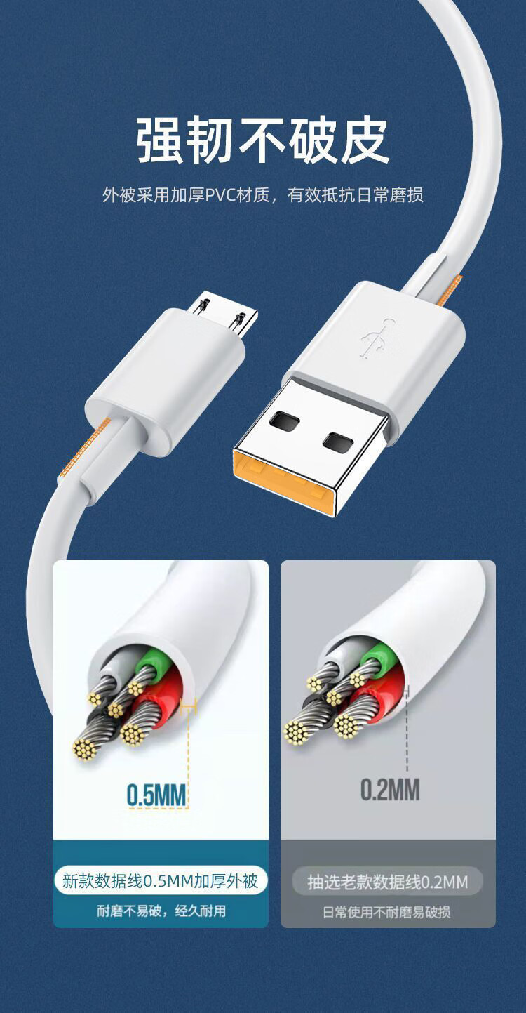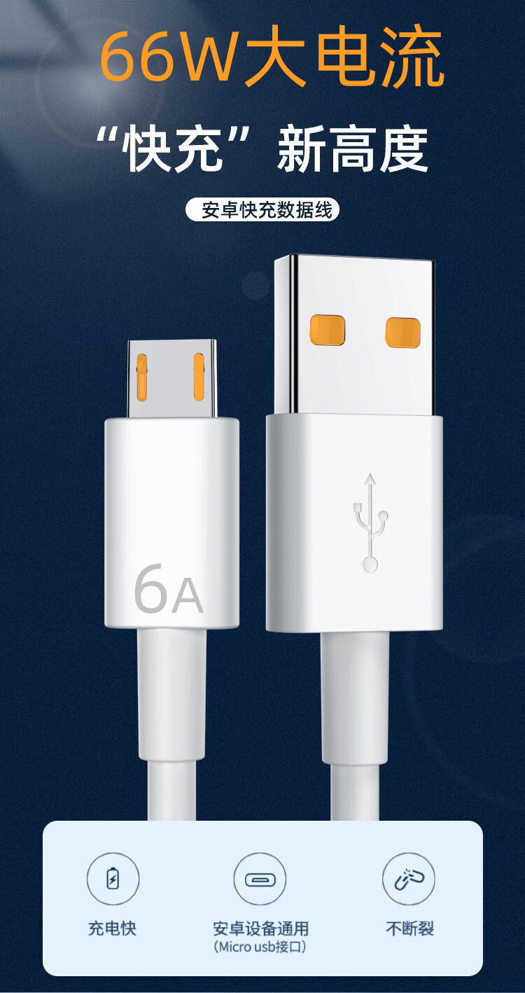 安卓microUSB数据线6A快充适用华为小米vivooppo音箱闪充手机闪充电线120w加长2米通用梯形口 6A安卓快充线【1条装】 1.5米